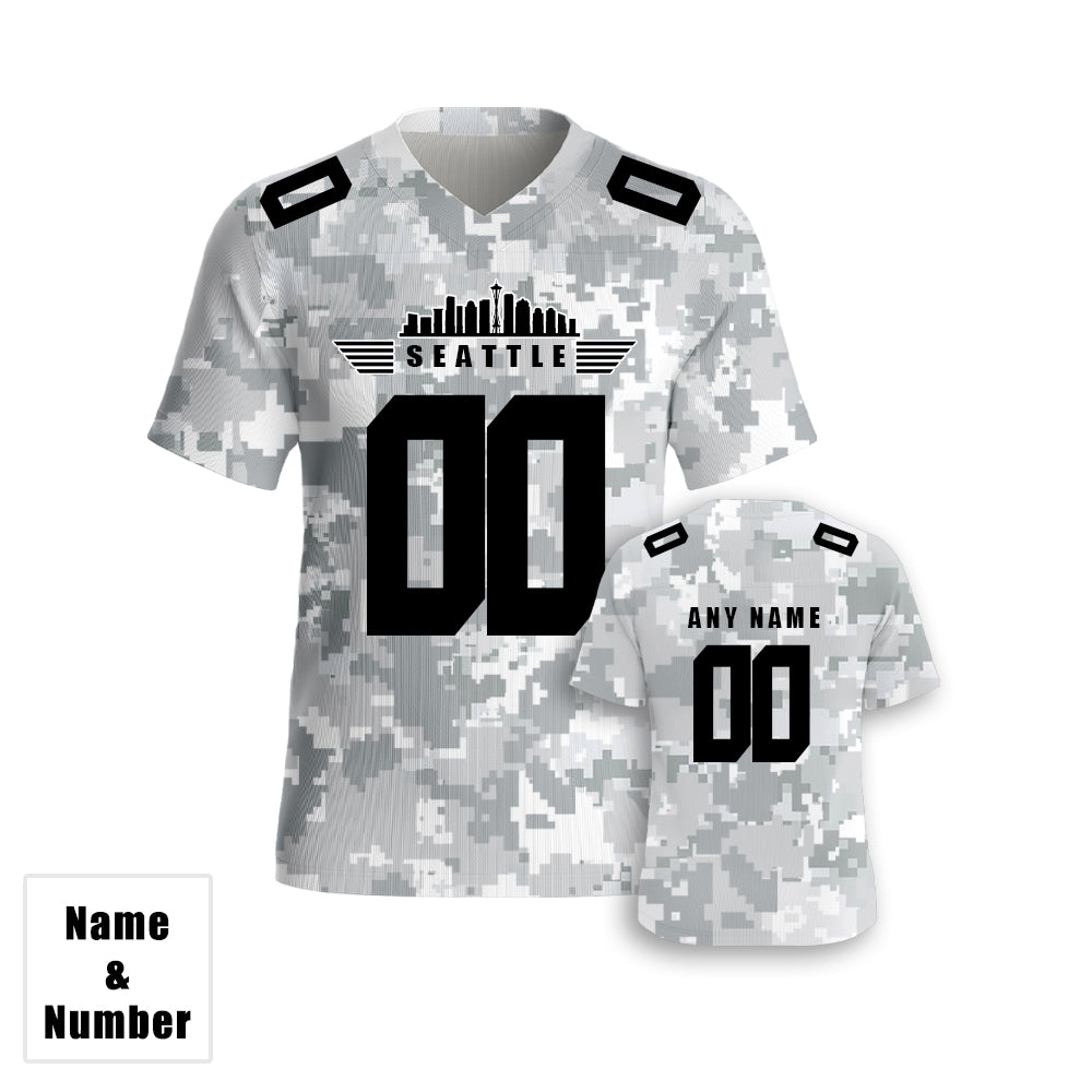 Salute To Seattle Seahawks Men's Custom Game American Football Arctic Camo Jersey for Fans Gift Quick Dry Breathable