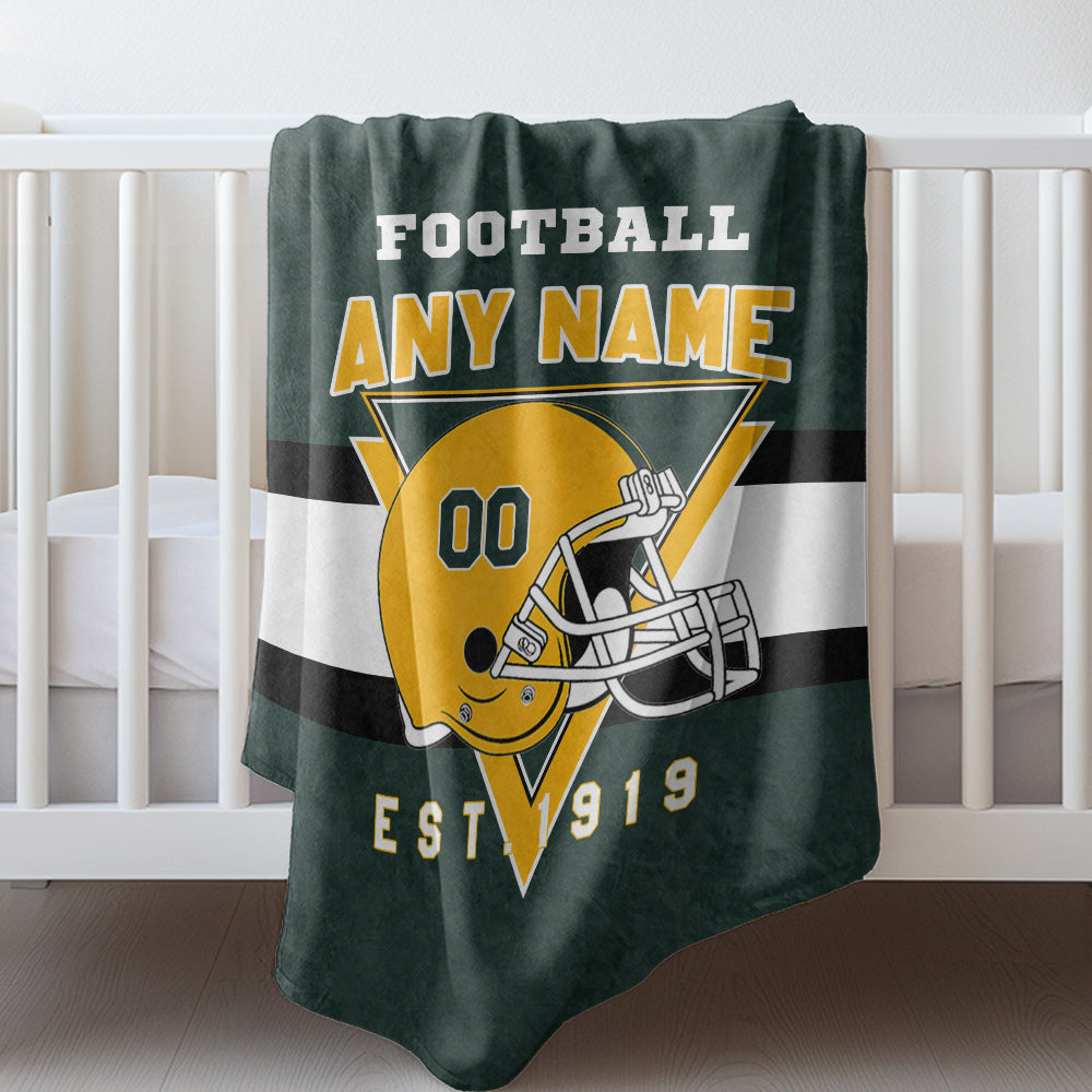 4FunGift Green-Bay American football Helmet Custom Number&Name Blanket