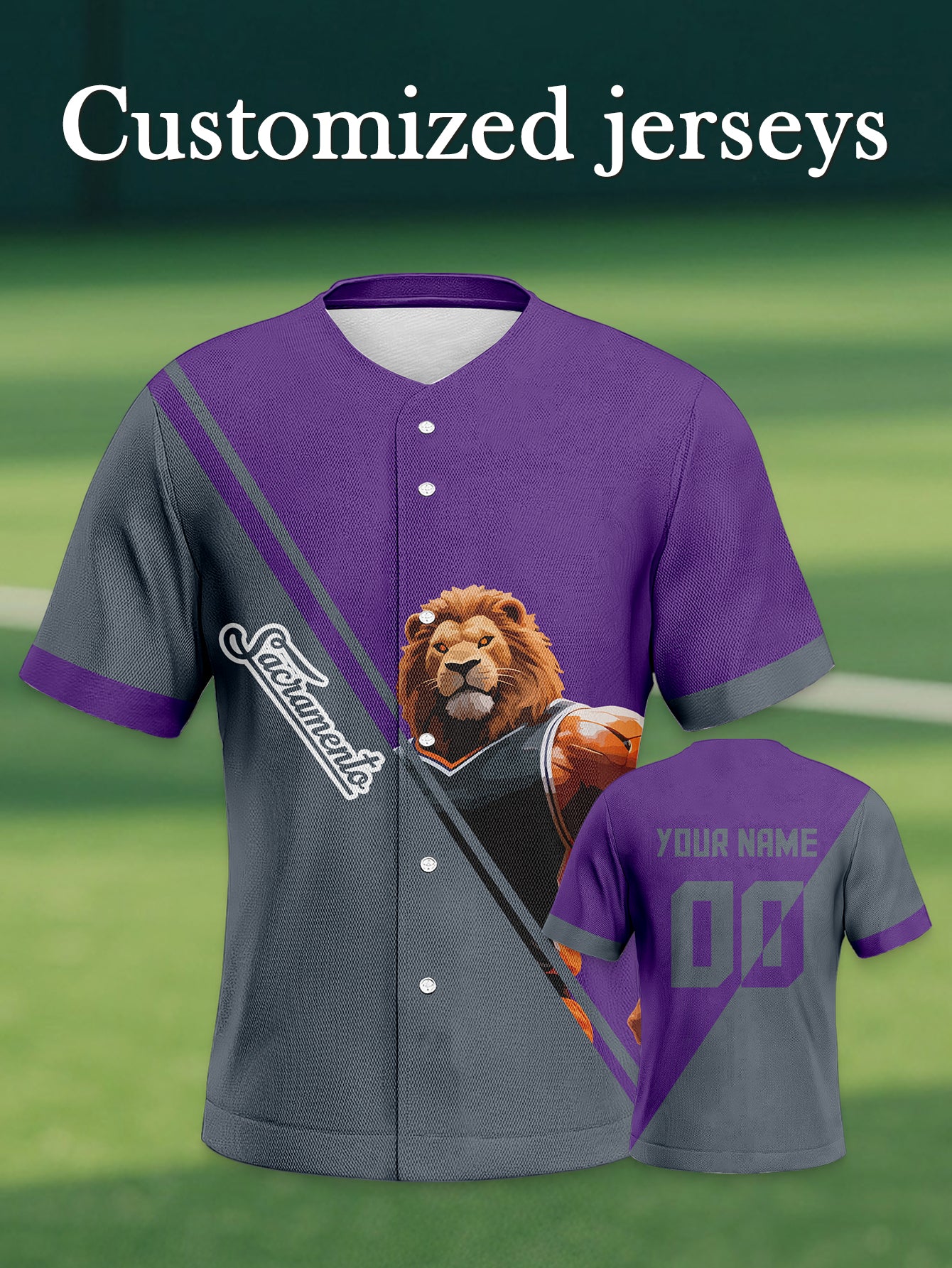 Sacramento Kings Slamson the Lion Baseball Shirt - Personalized Name & Number