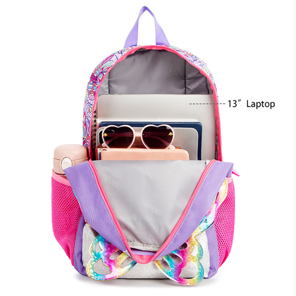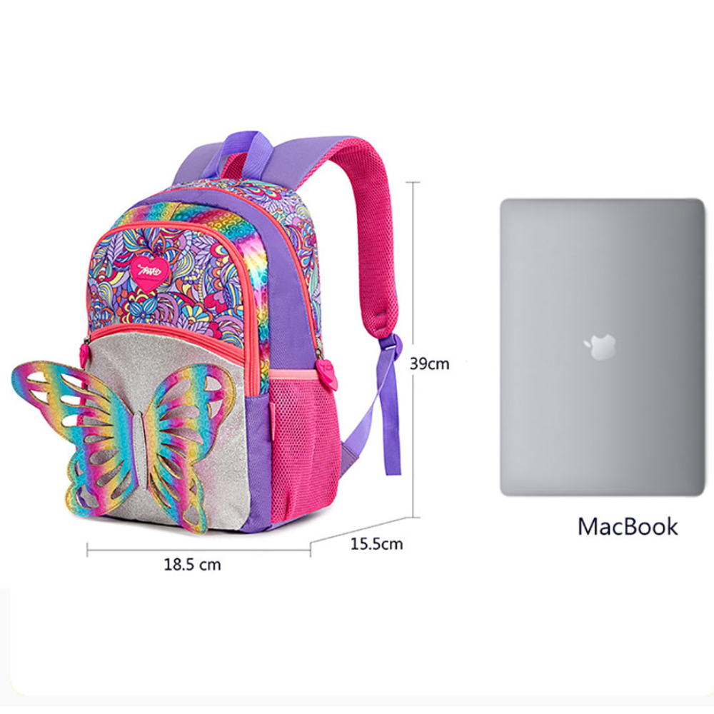 3D-Regenbogen-Schmetterlings-Kinderrucksack, süßer bunter Grundschulmädchen-Rucksack