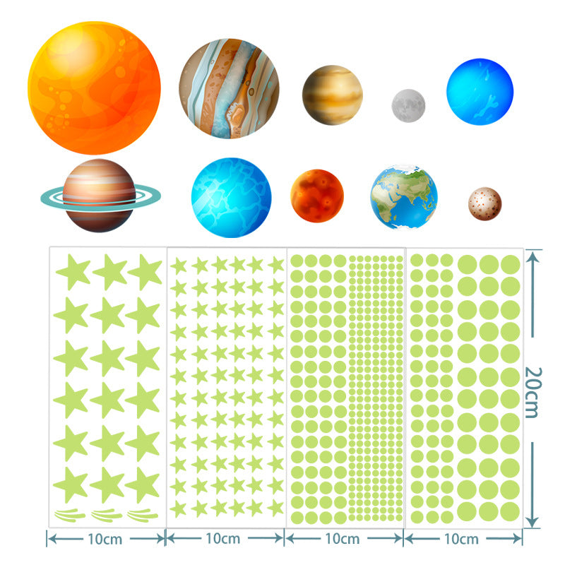 Im Dunkeln leuchtende Sterne: Im Dunkeln leuchtende Aufkleber, darunter 435 Sterne und Punkte sowie 9 Planeten des Sonnensystems. Diese Aufkleber reichen aus, um die gesamte Decke Ihres Kinderzimmers zu bedecken. Im Dunkeln verwandelt sich der Raum in ein sternenklares Schlafzimmer.