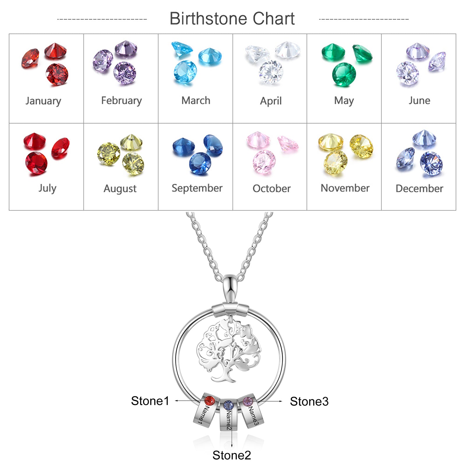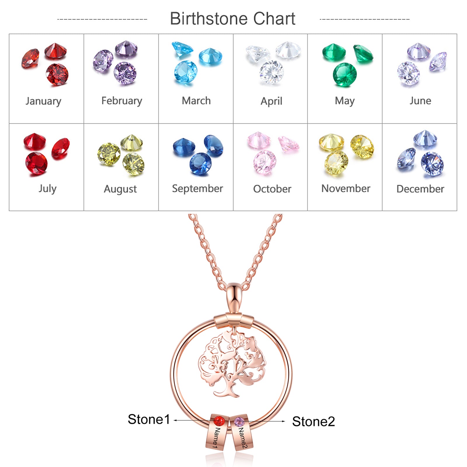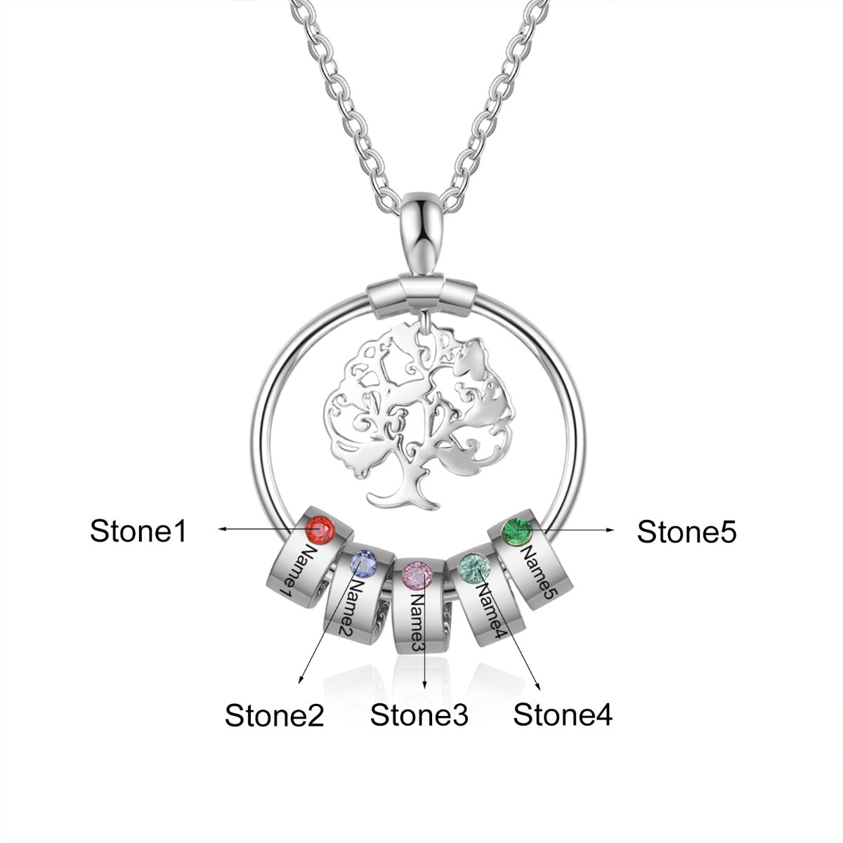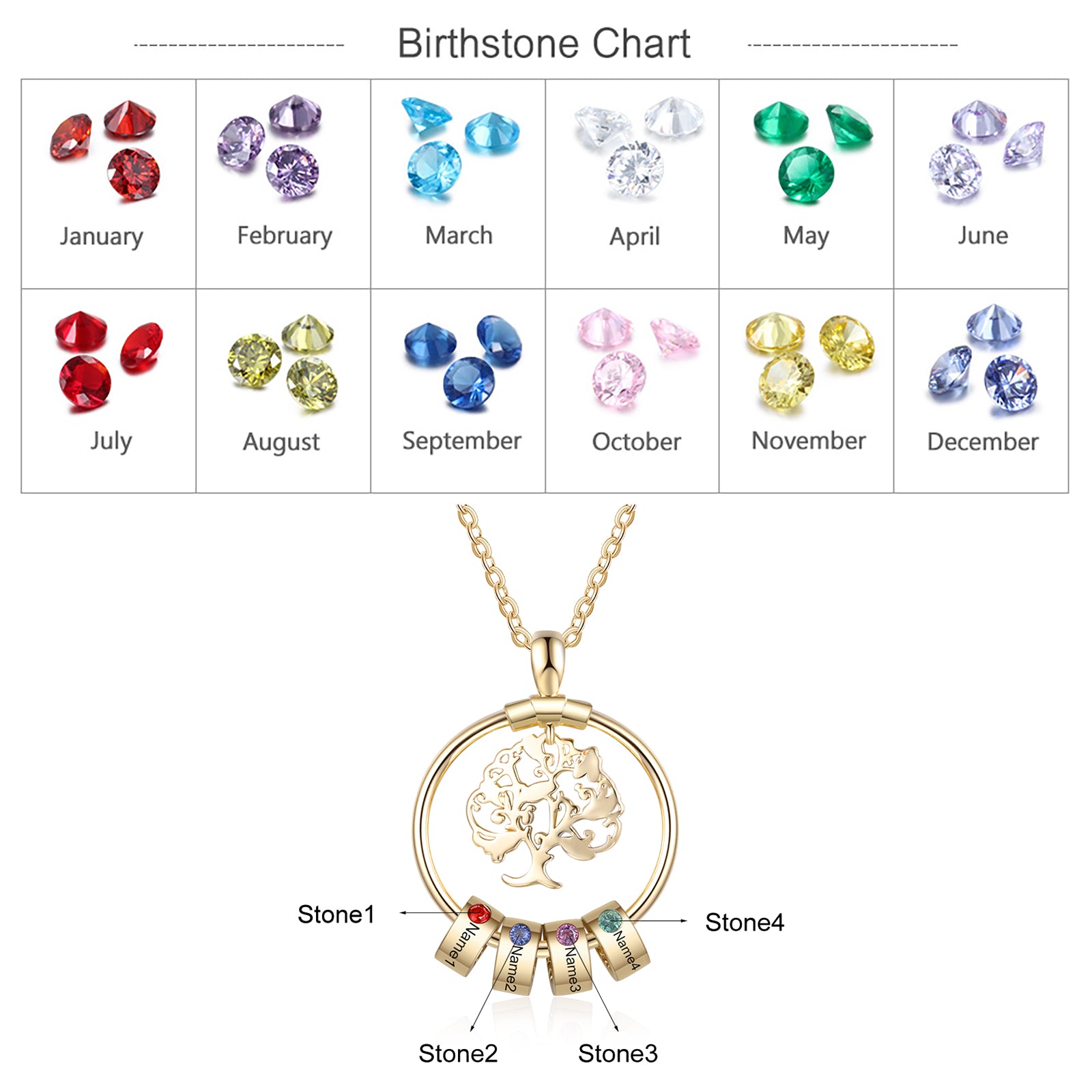 4FunGift® 1-5 Name-Personalized Family Tree Necklace With 1 Birthstone Engraved Names Gift For Her