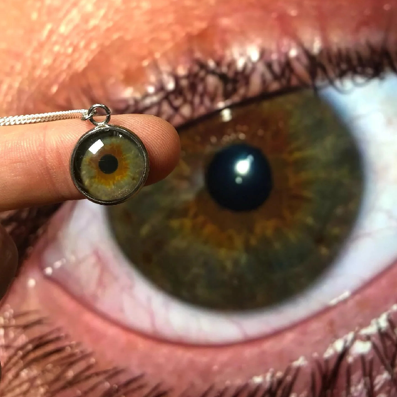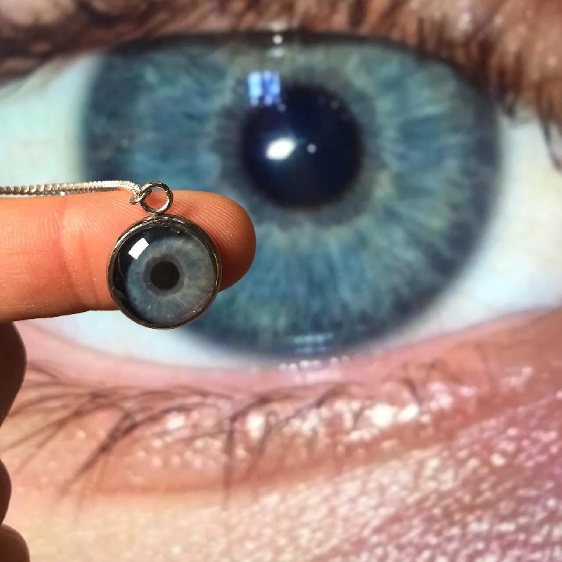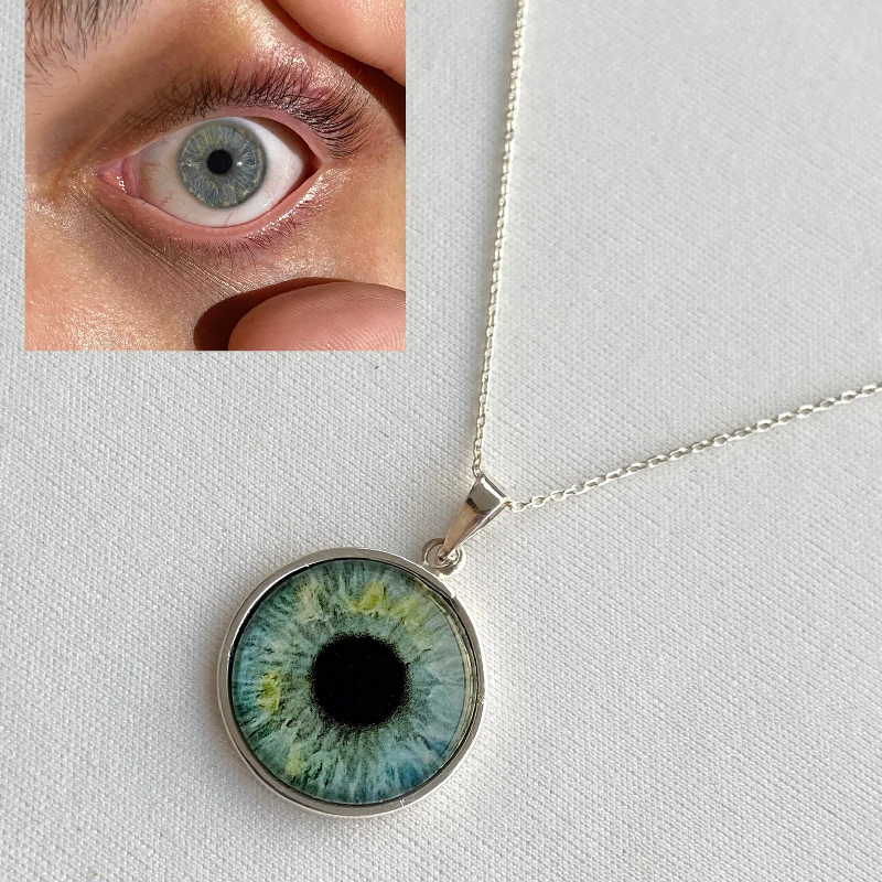 Every person's eyes are the window to the personality and soul. We offer you a personal work of art: this unique necklace that bears the reflection of your loved ones' or your own eyes. This necklace, which carries the expression of the eyes, offers much more than a memory. With every glance, it opens a window into the world of your loved ones, and every detail tells a story.