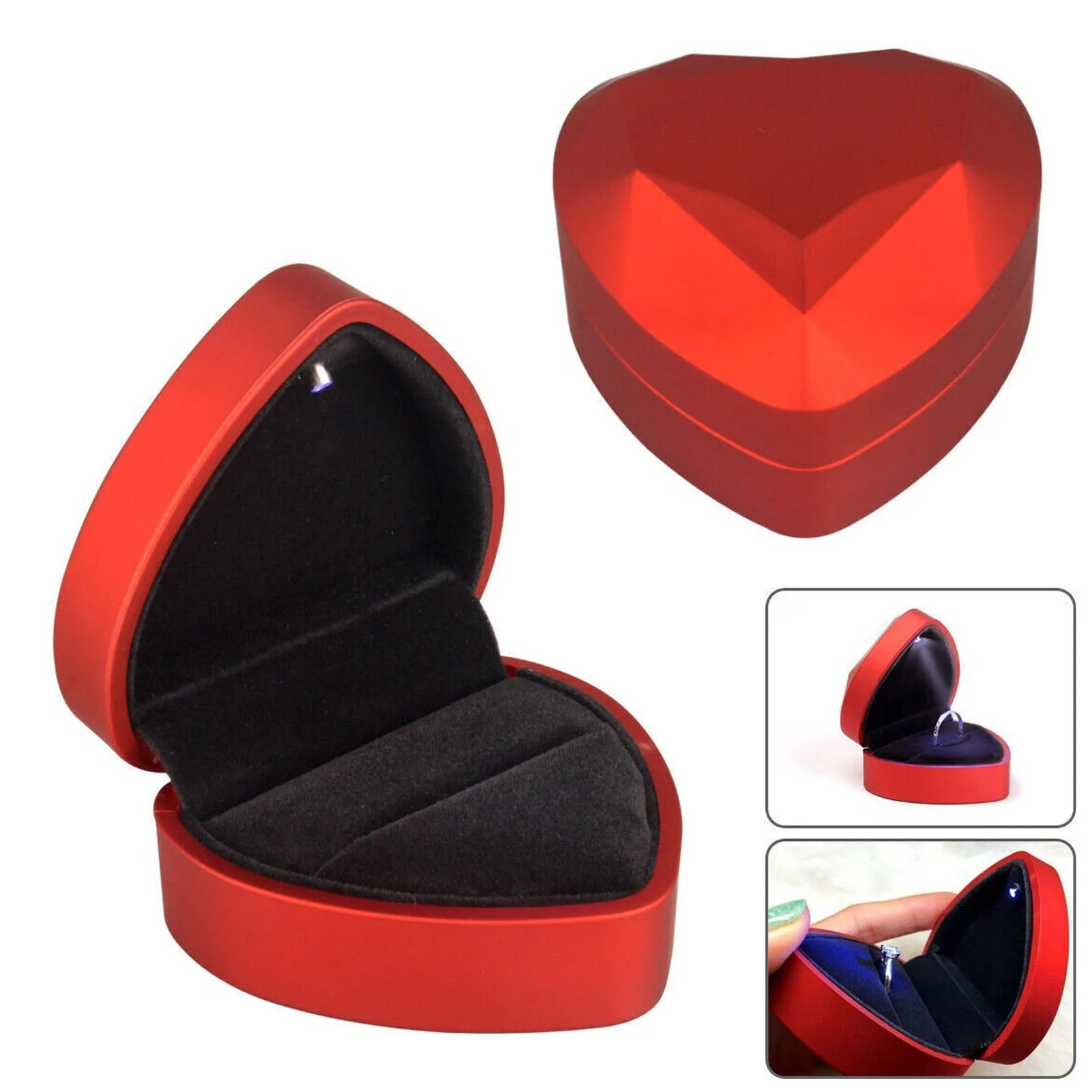 4FunGift® Heart Shaped Ring Gift Box With LED Light Soft Velvet Jewelry Display Case For Wedding Engagement Birthday Anniversary