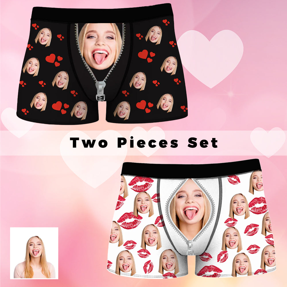 4FunGift® Two Pieces Set Custom Men's Face Underwear Zipper Boxer Briefs Gifts for Him