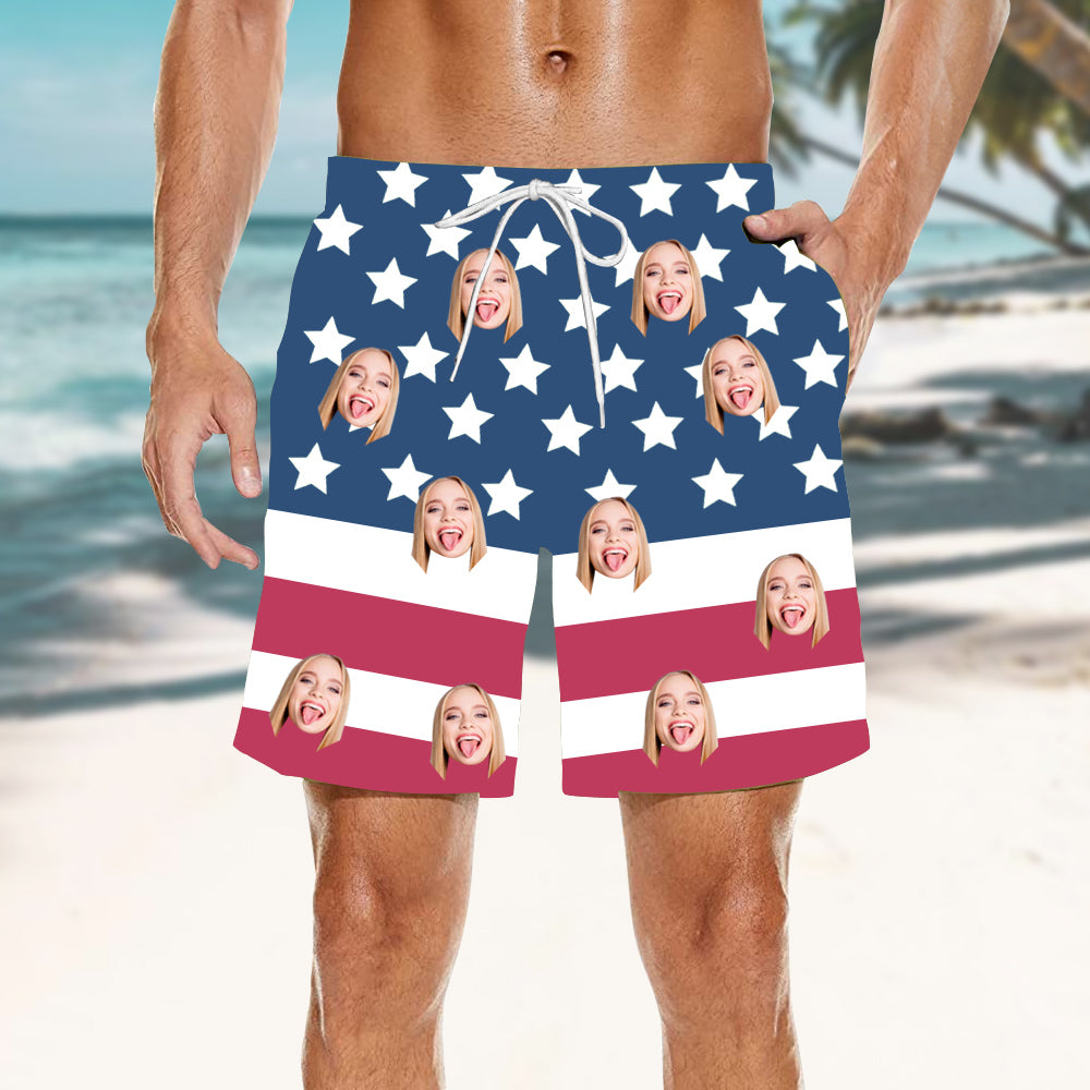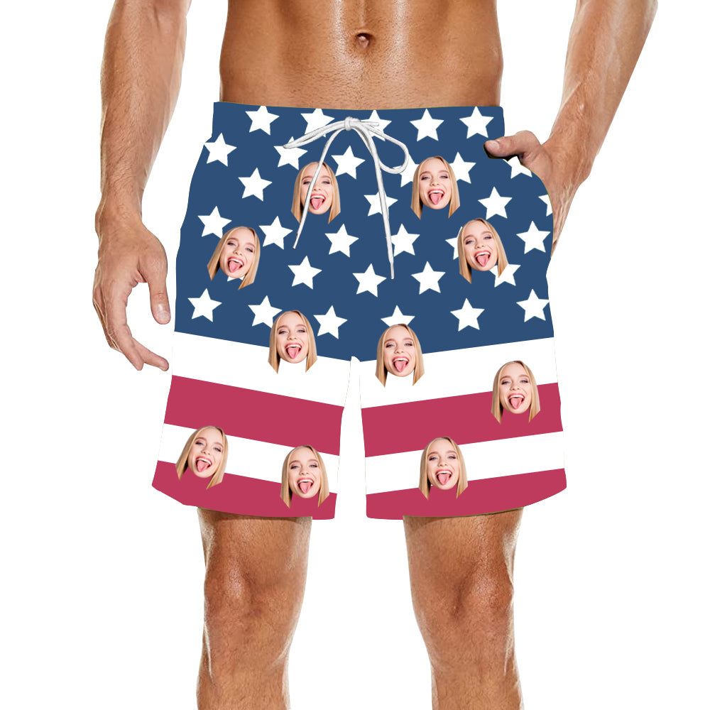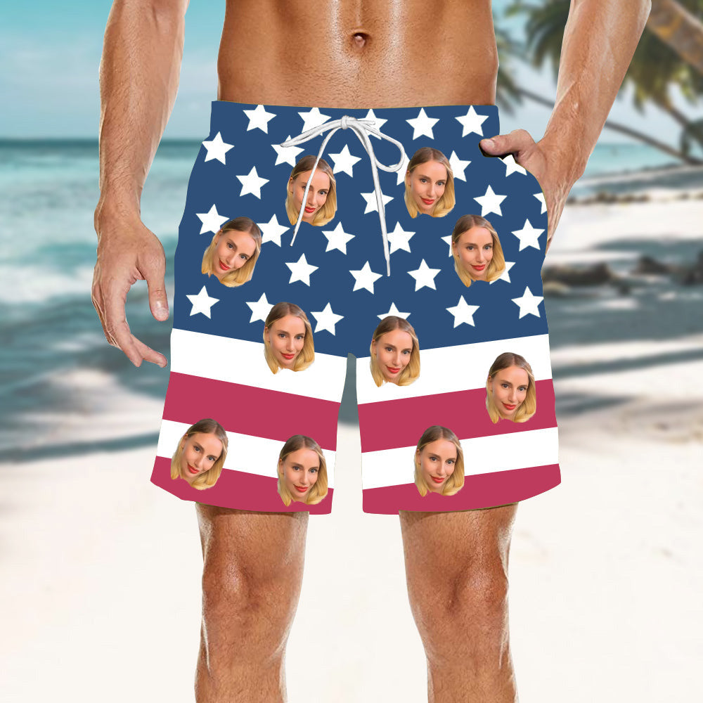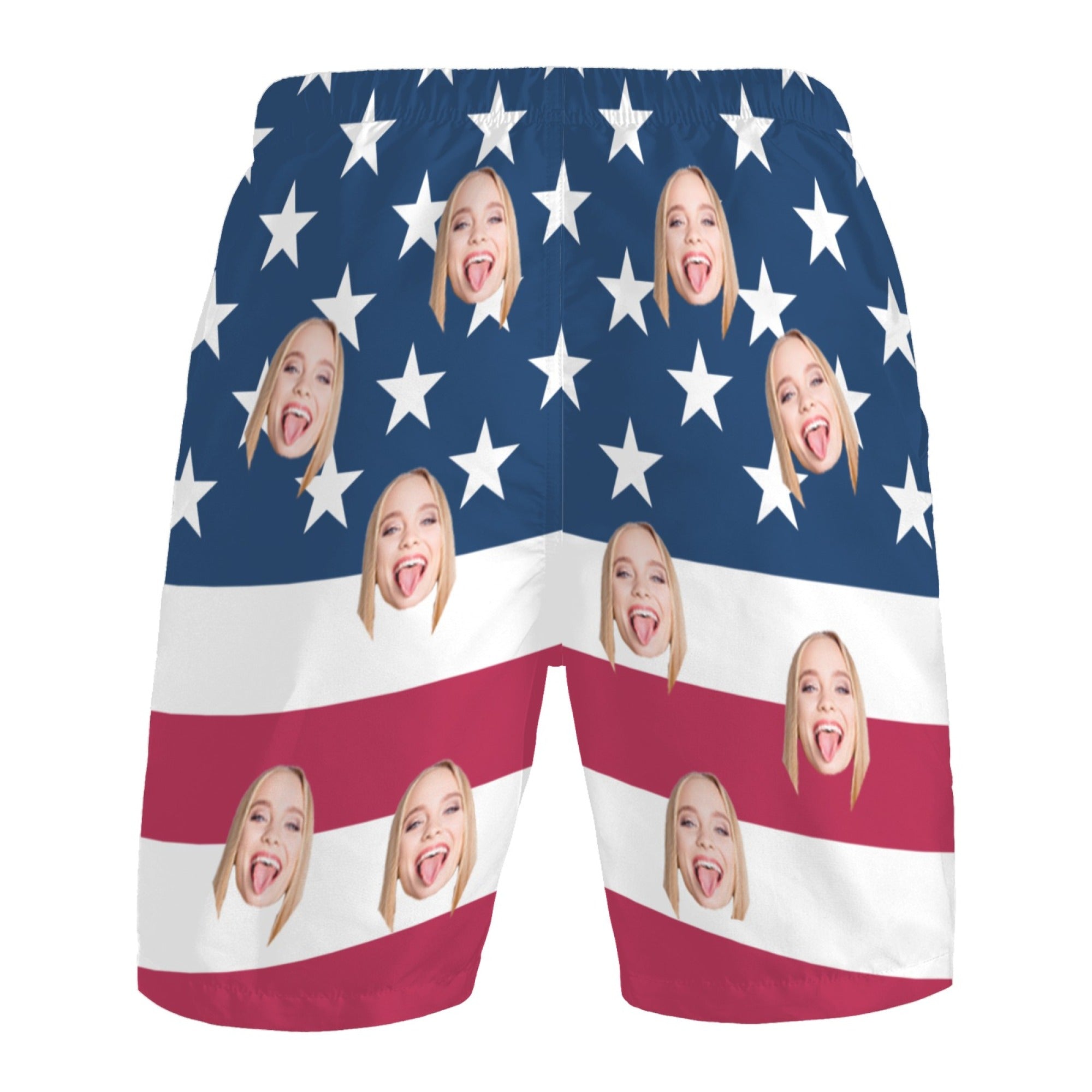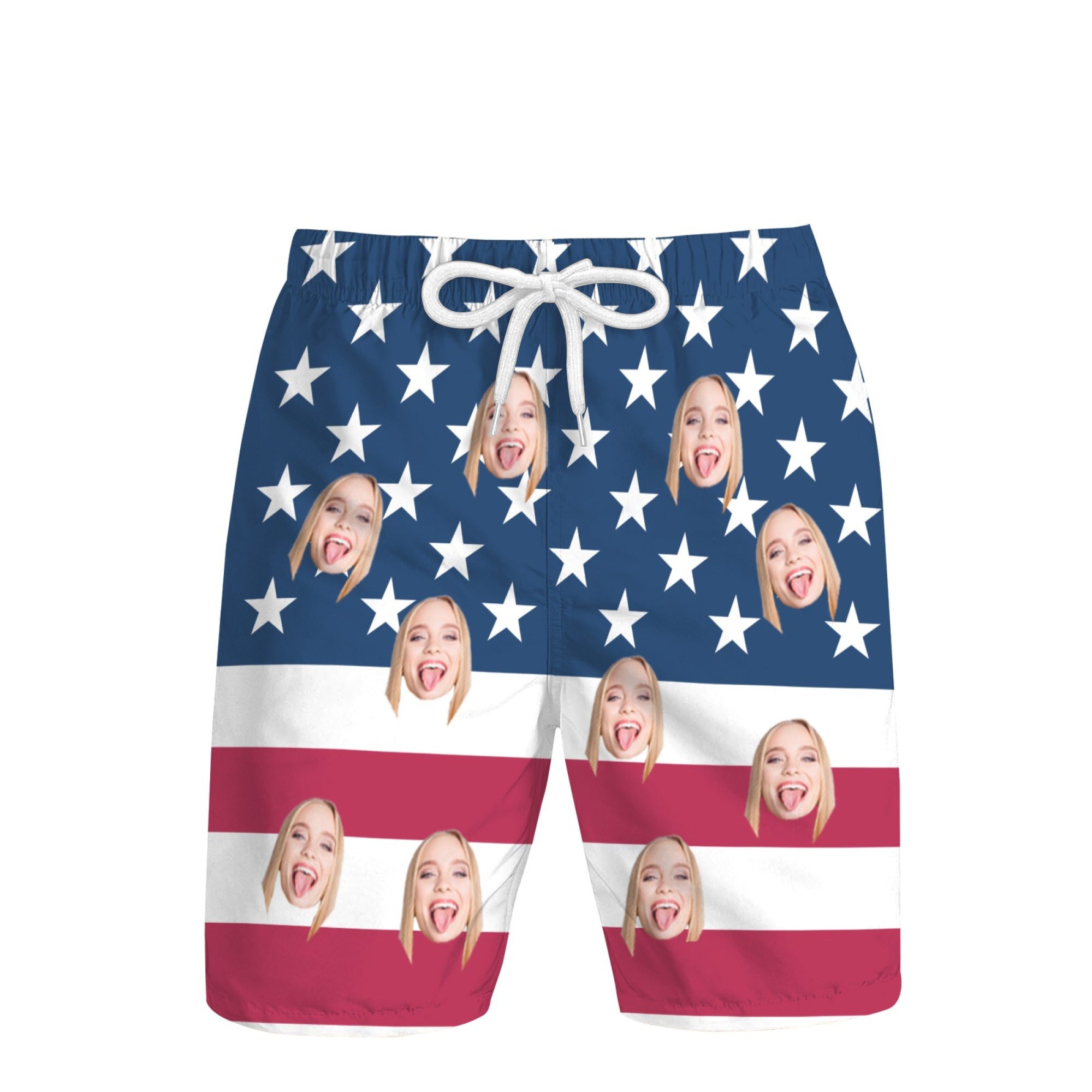 American Flag Print Men's Summer Beach Shorts Upload Photo for Customization