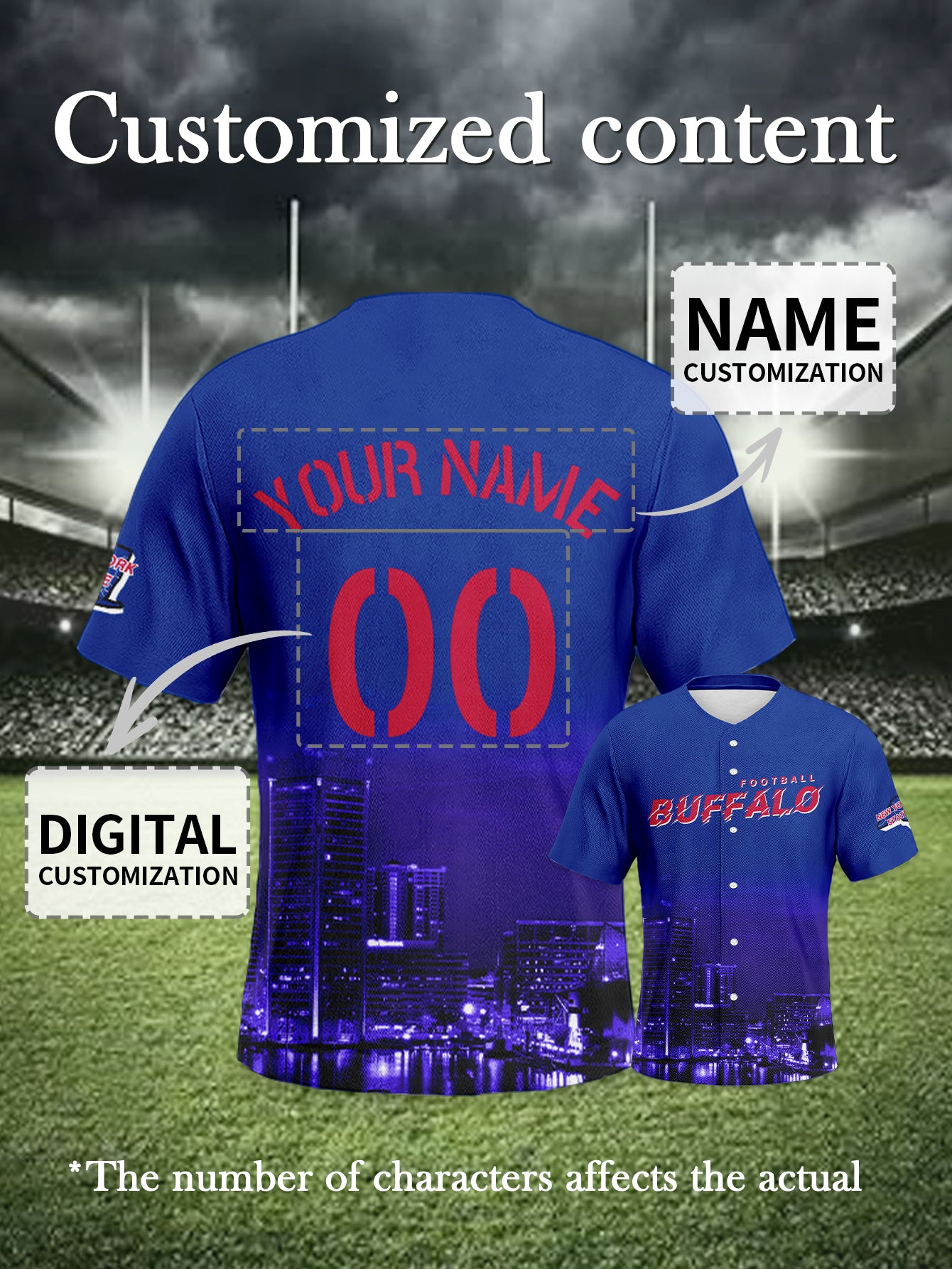 Buffalo Bills Royal Blue Baseball Top - Custom Player Jersey