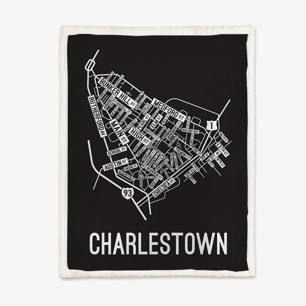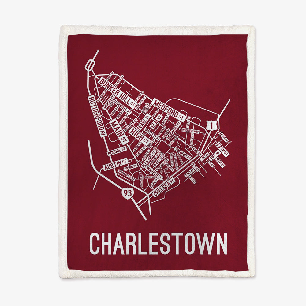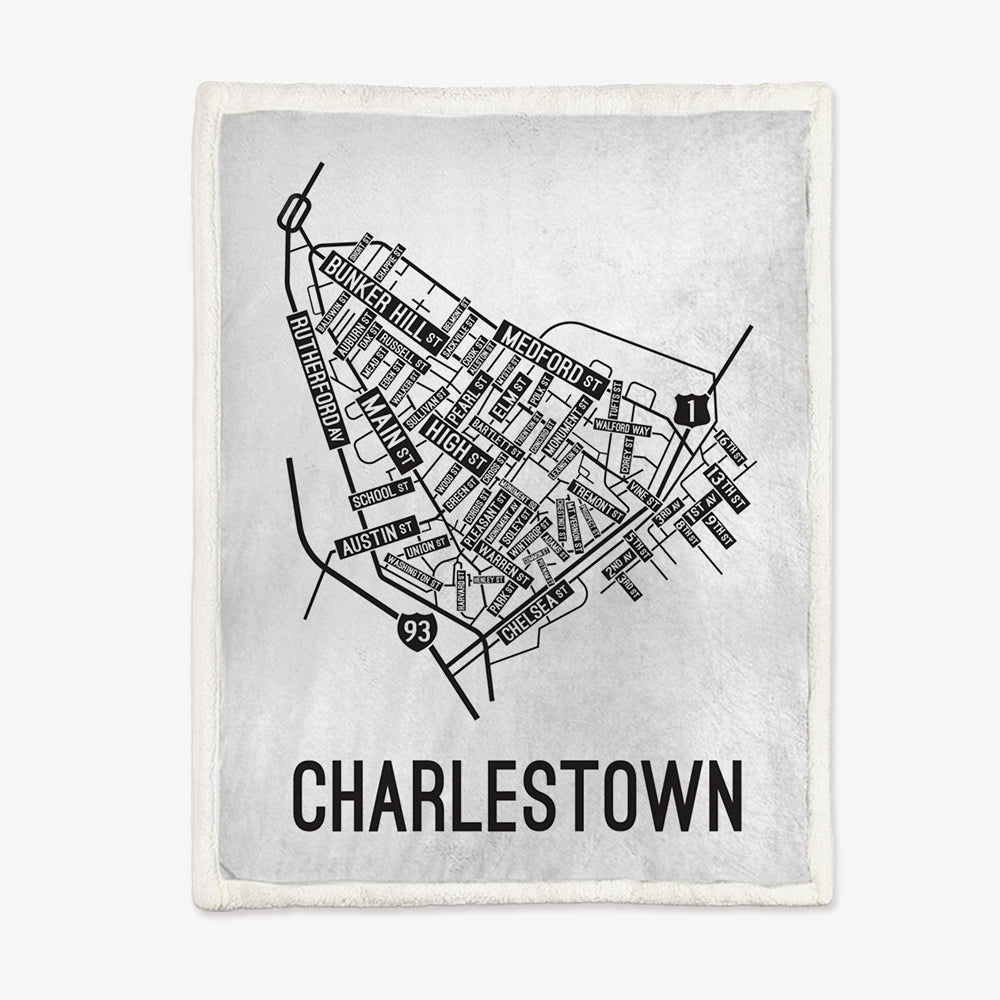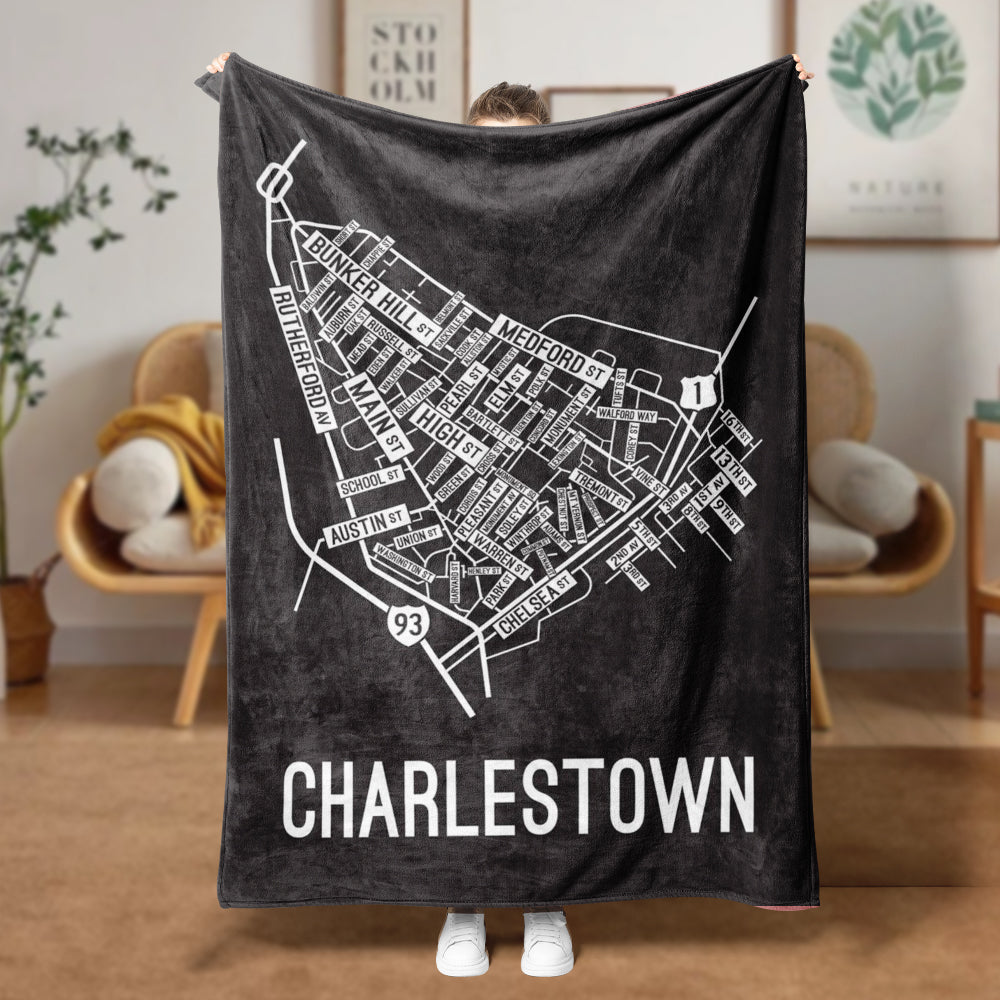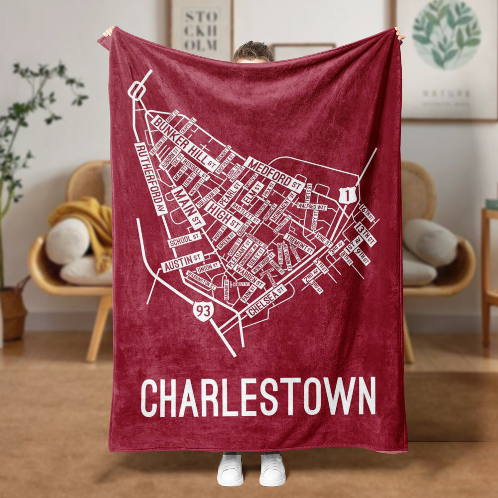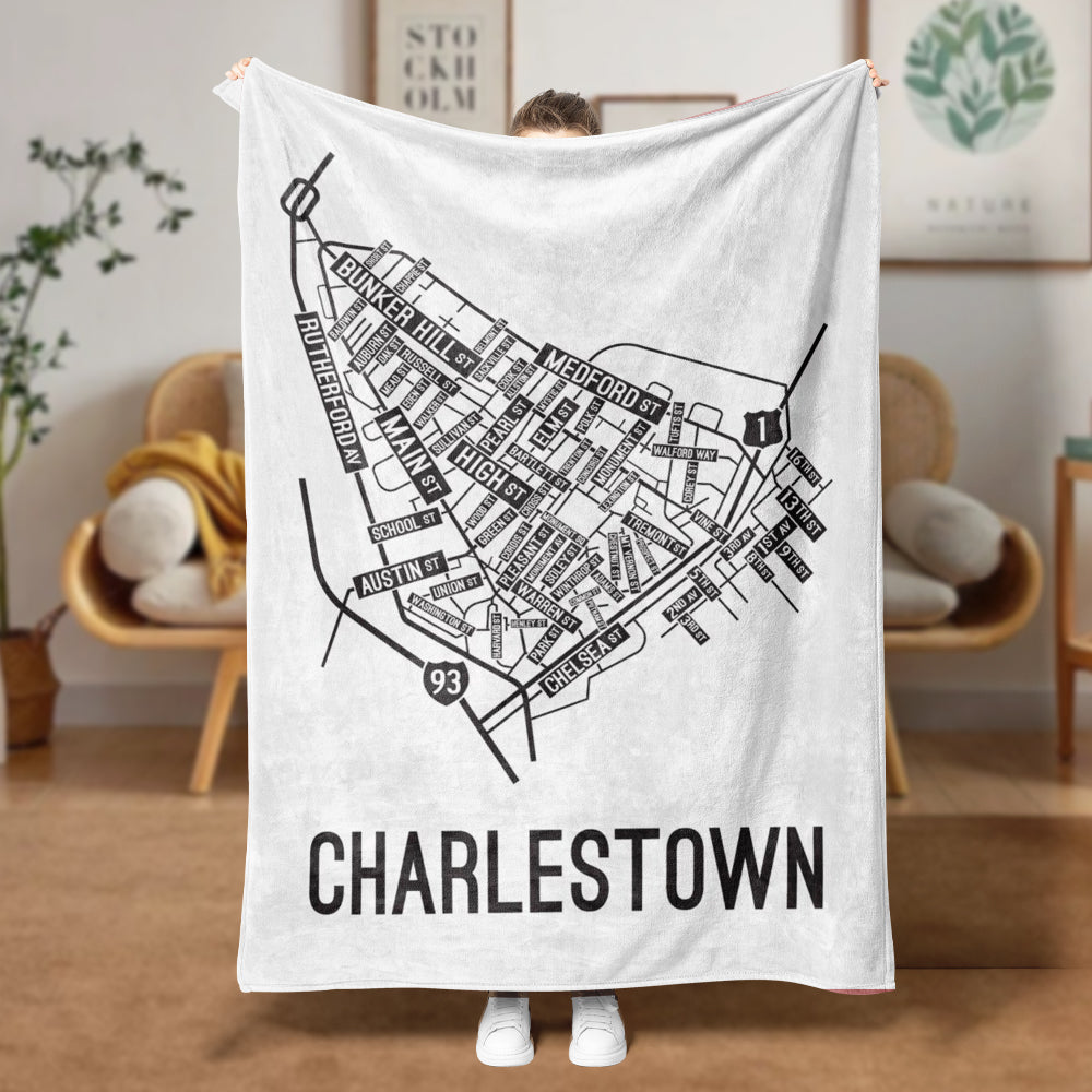 Charlestown, Boston Massachusetts Street Map Blanket Freshmen/Graduates Memorial Gifts