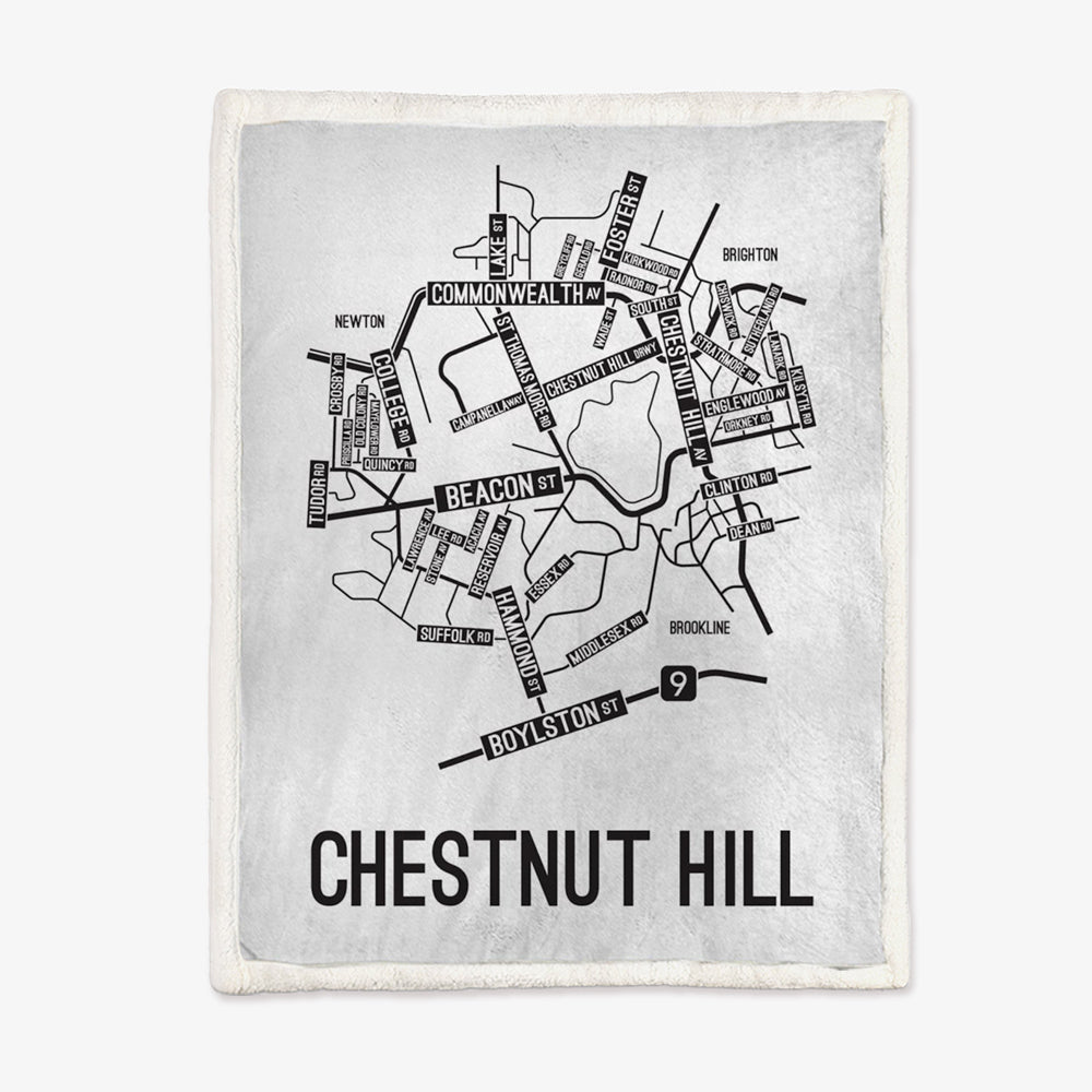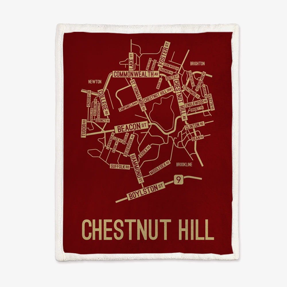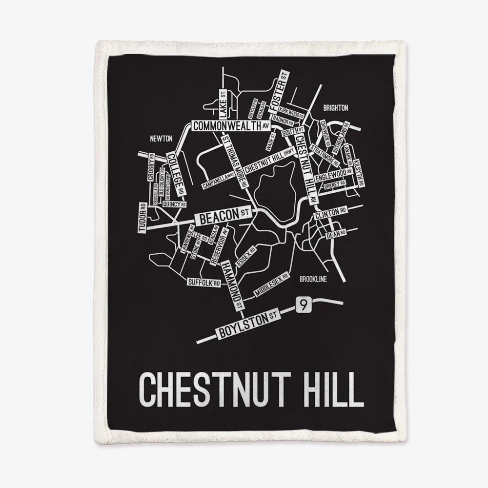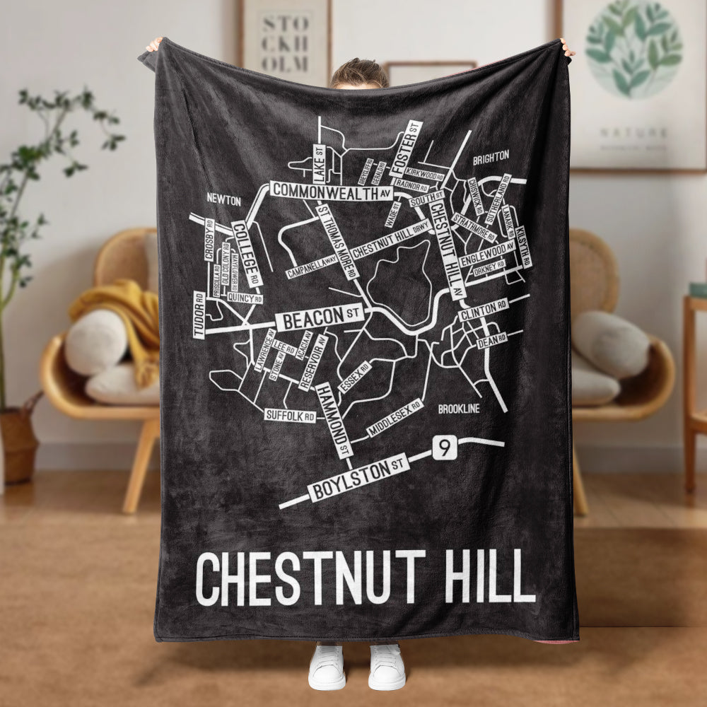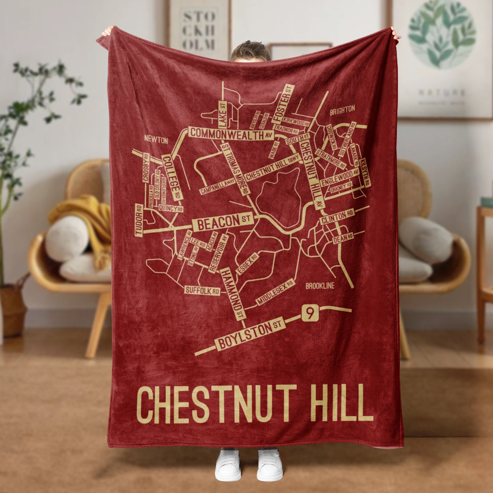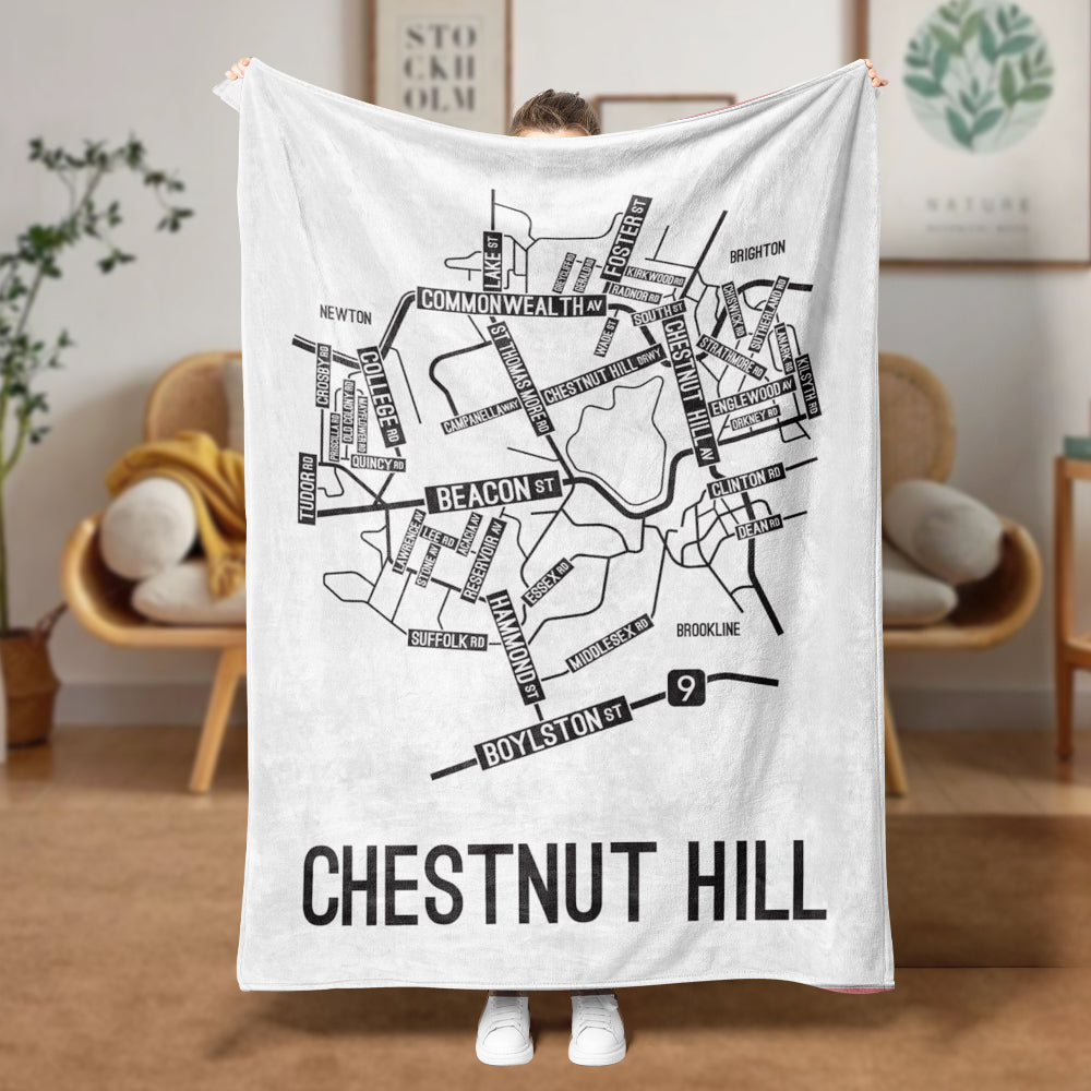 Chestnut Hill, Massachusetts Street Map Blanket Freshmen/Graduates Memorial Gifts