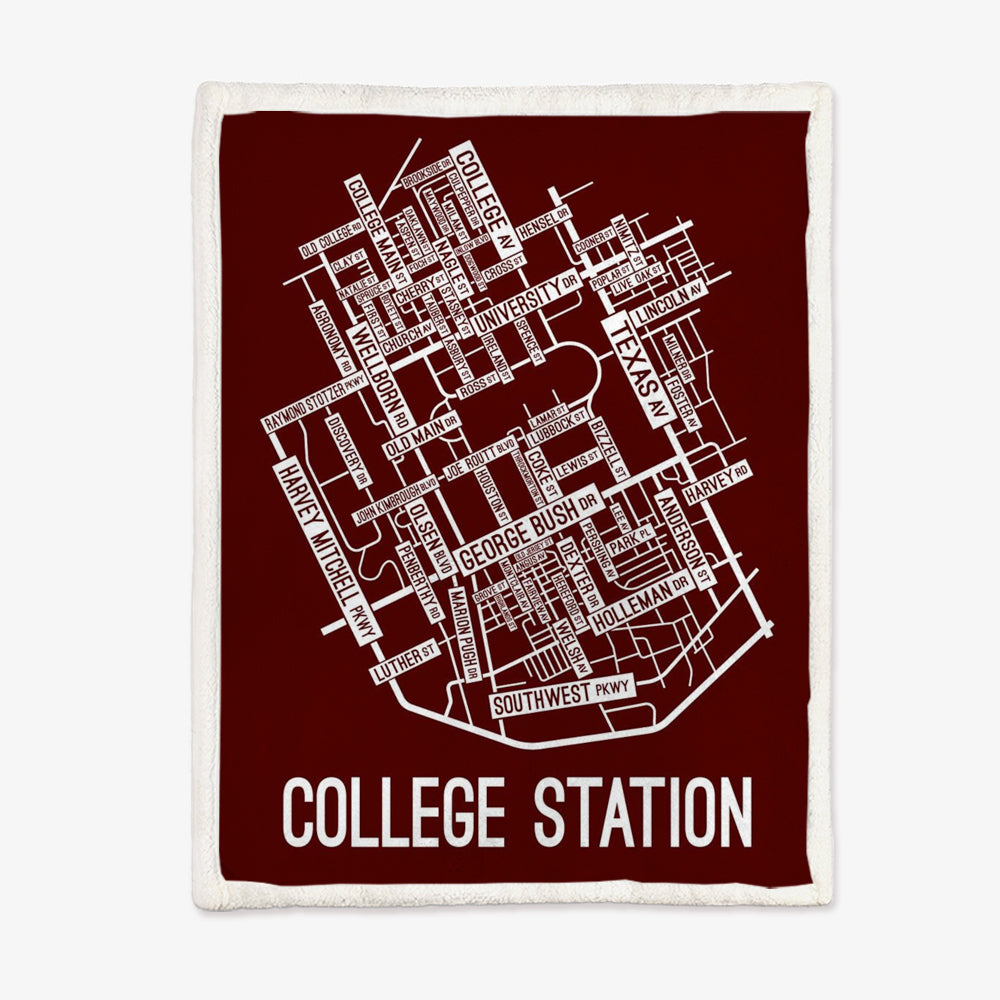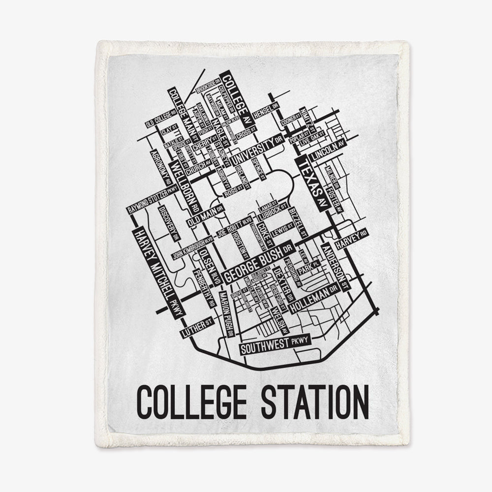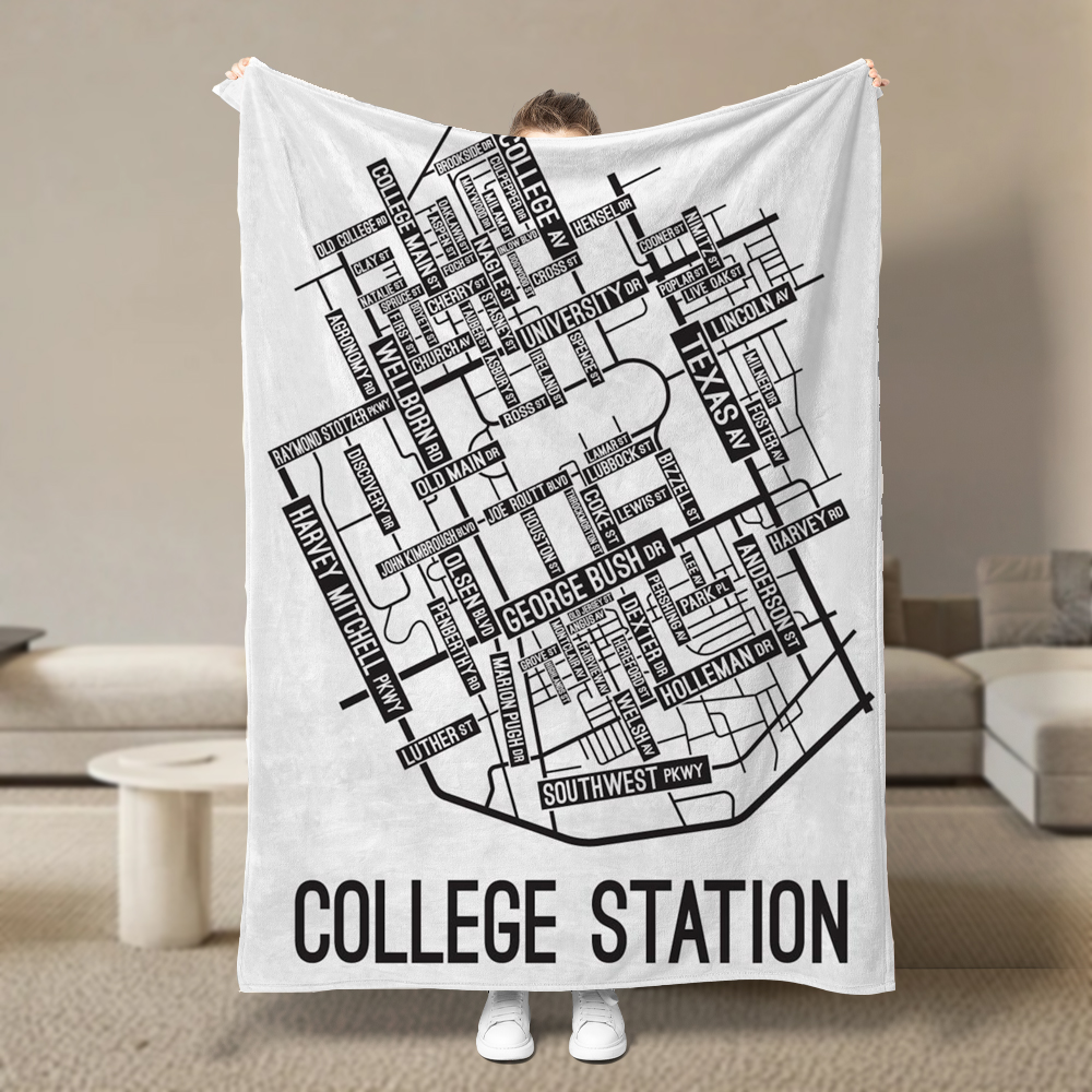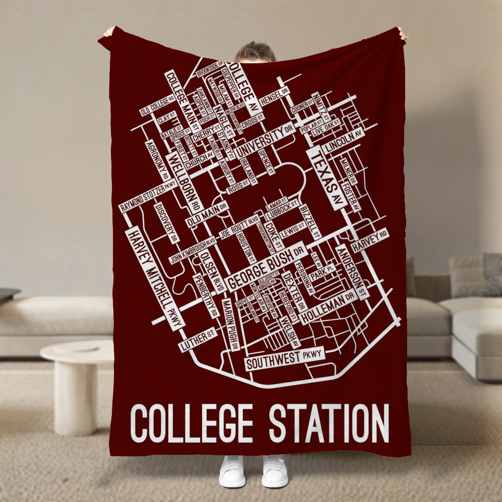 College Station, Texas Street Map Blanket Freshmen/Graduates Memorial Gifts