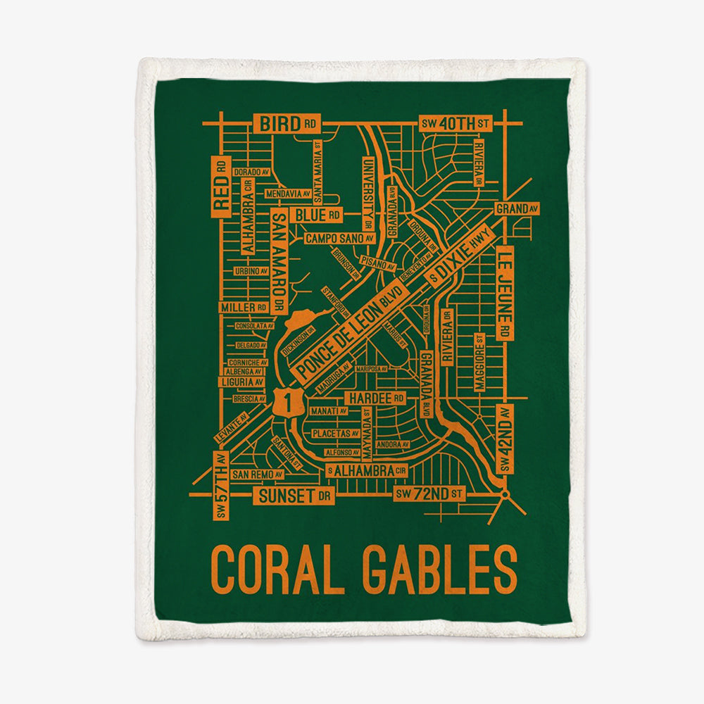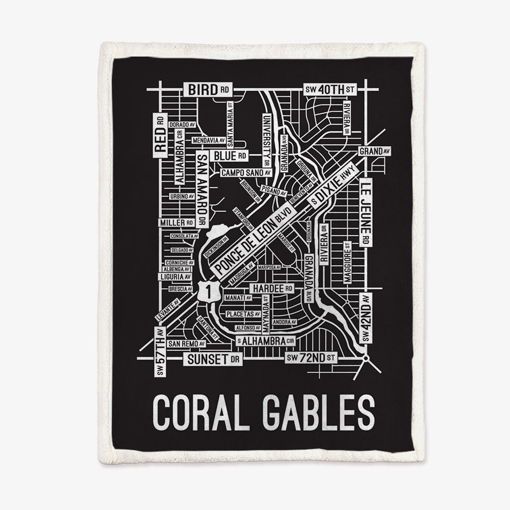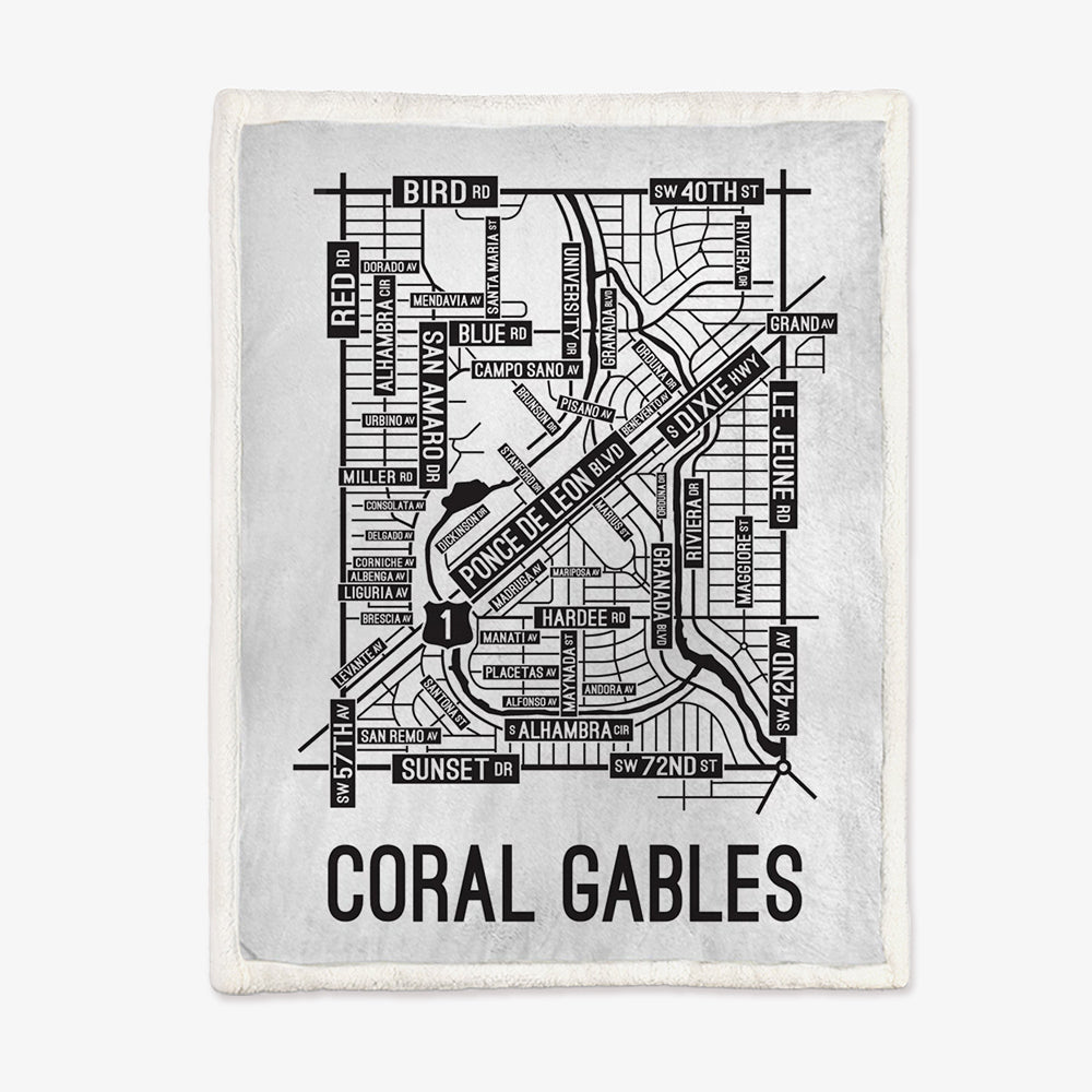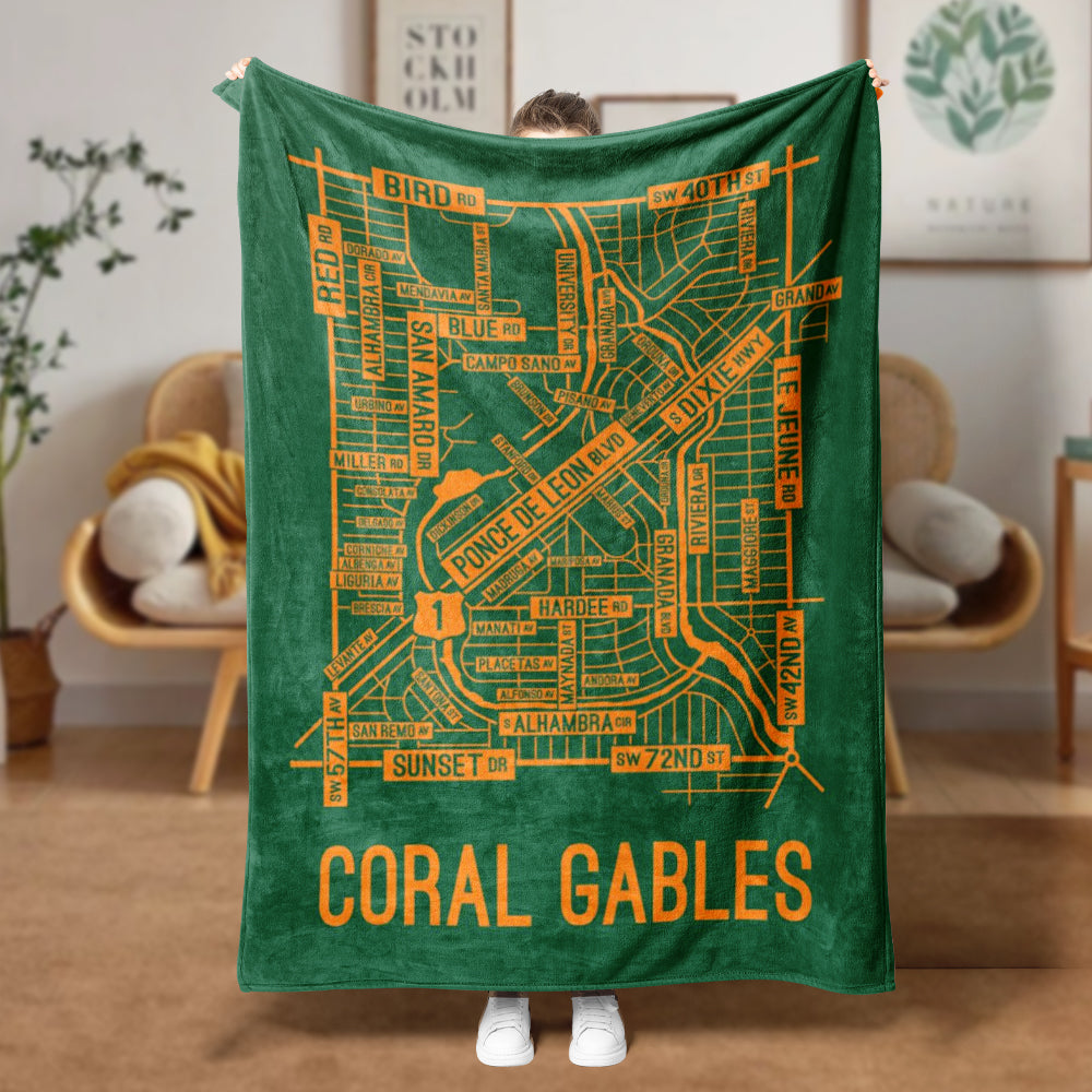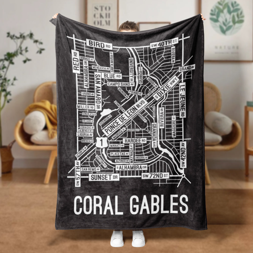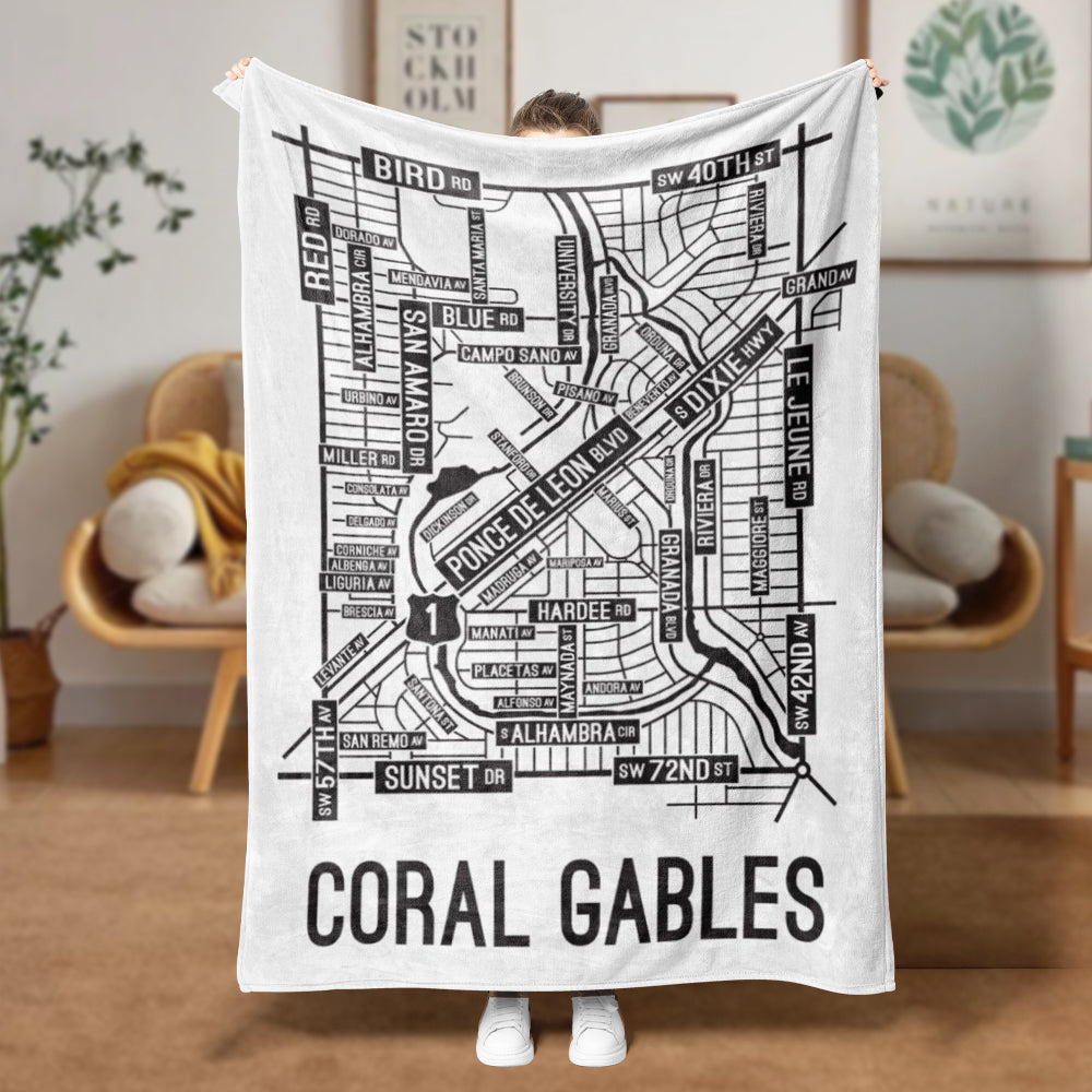 Coral Gables, Miami, Florida Street Map Blanket Freshmen/Graduates Memorial Gifts