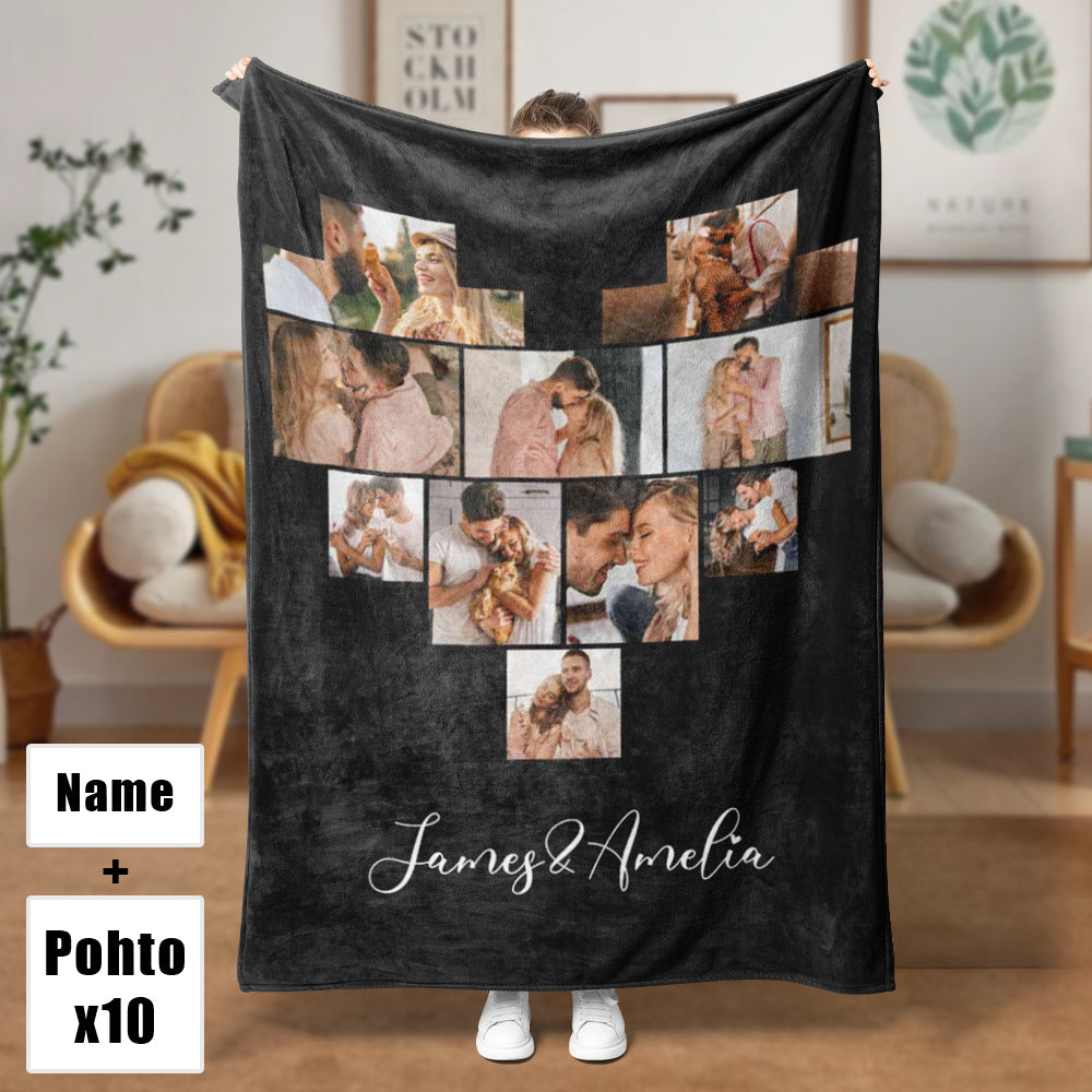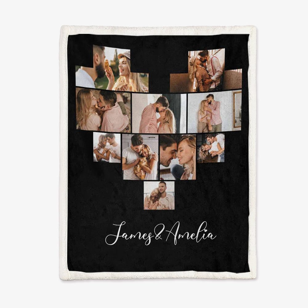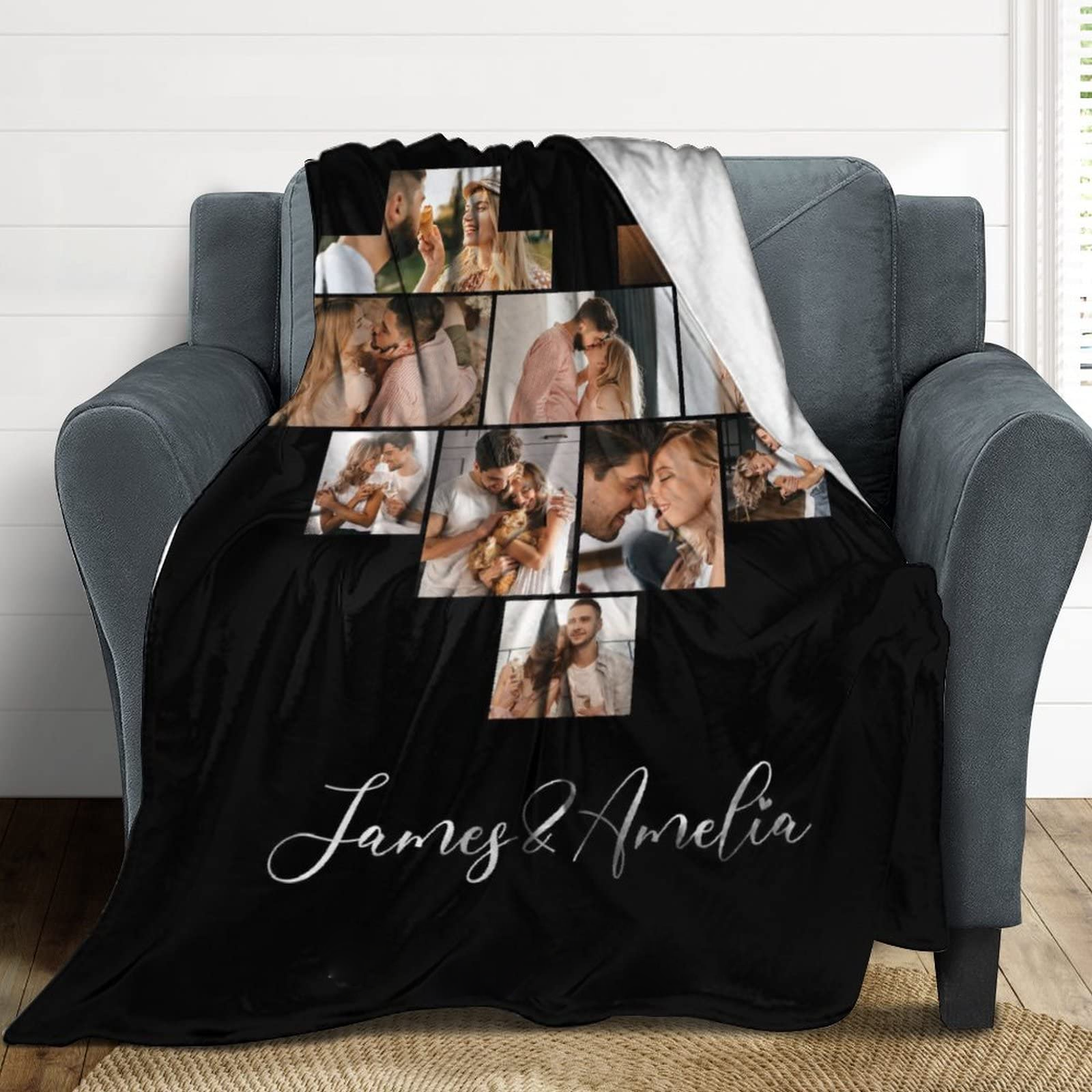 Benutzerdefinierte 10 Fotos Fleecedecken Namen Decke für Paare