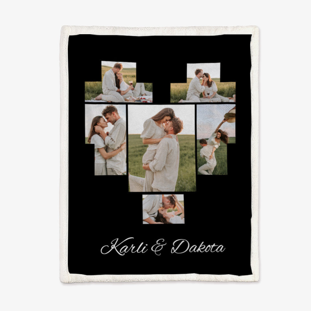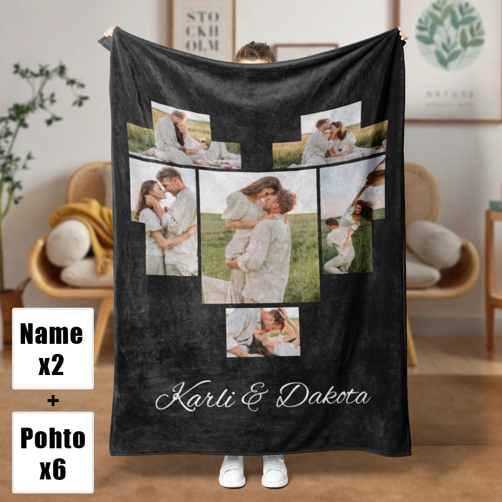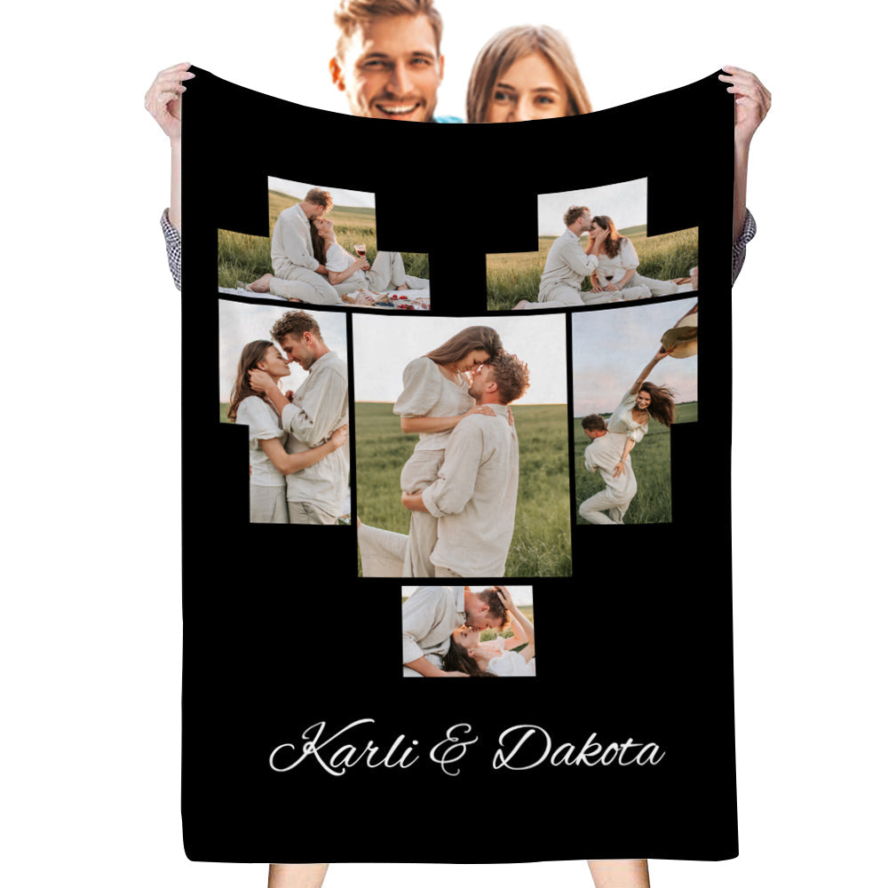 Custom 6 Photos Fleece Blankets Names Blanket for Couple