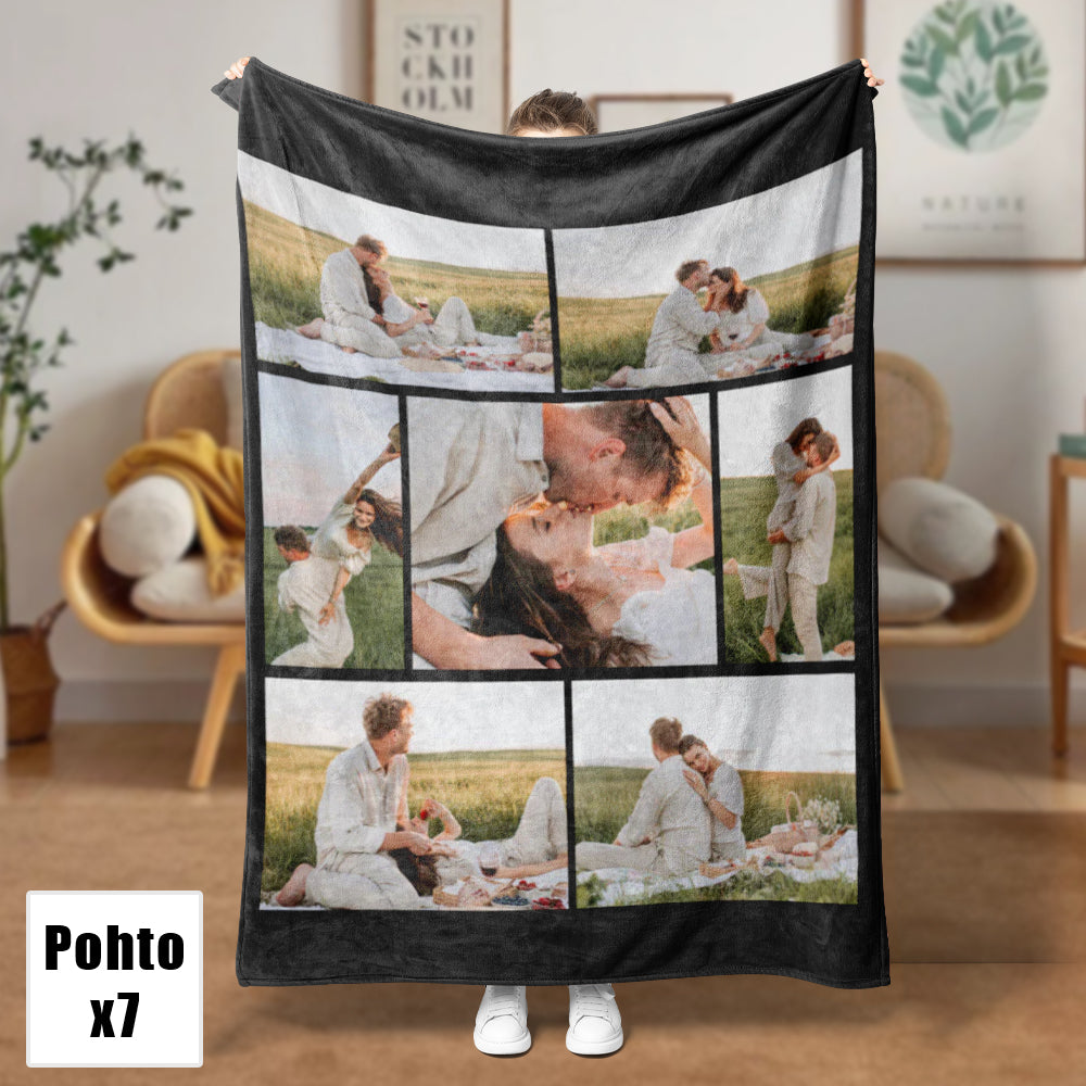 4FunGift® Custom 7 Photos Blanket Fleece Blanket For Him/Her
