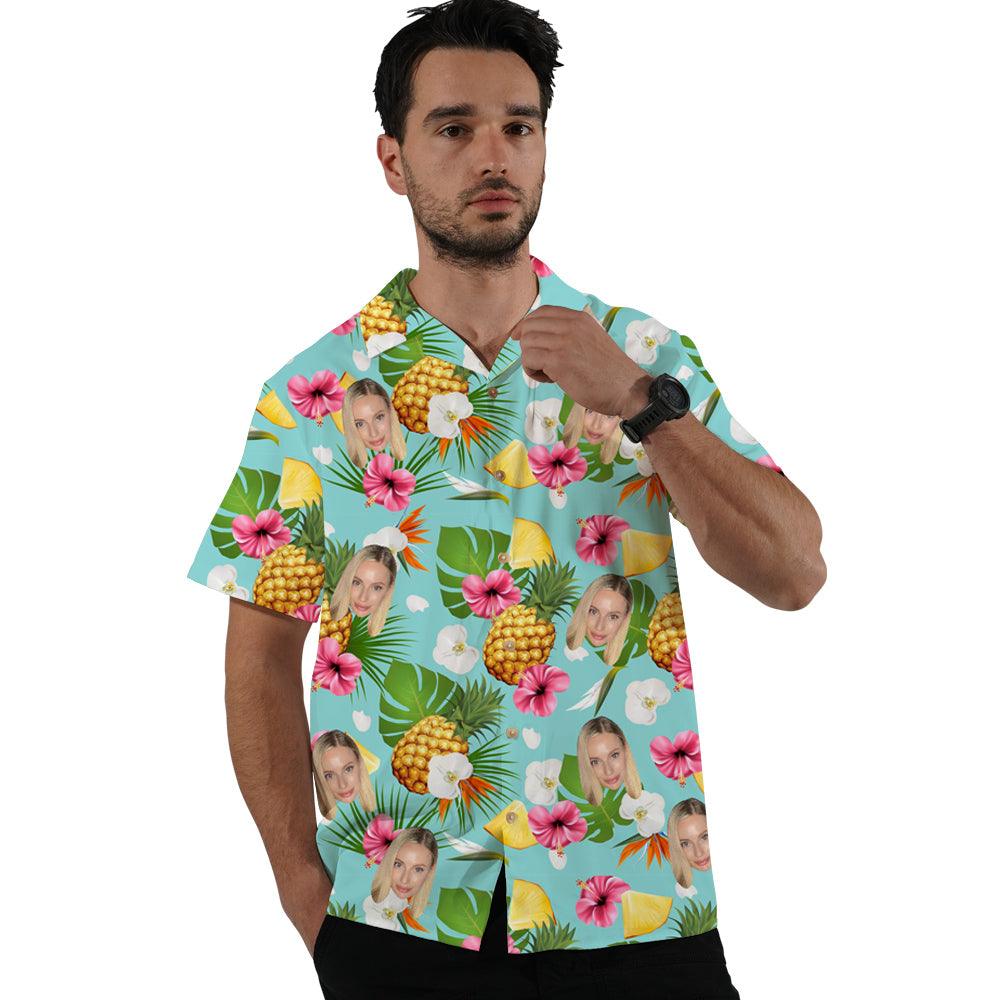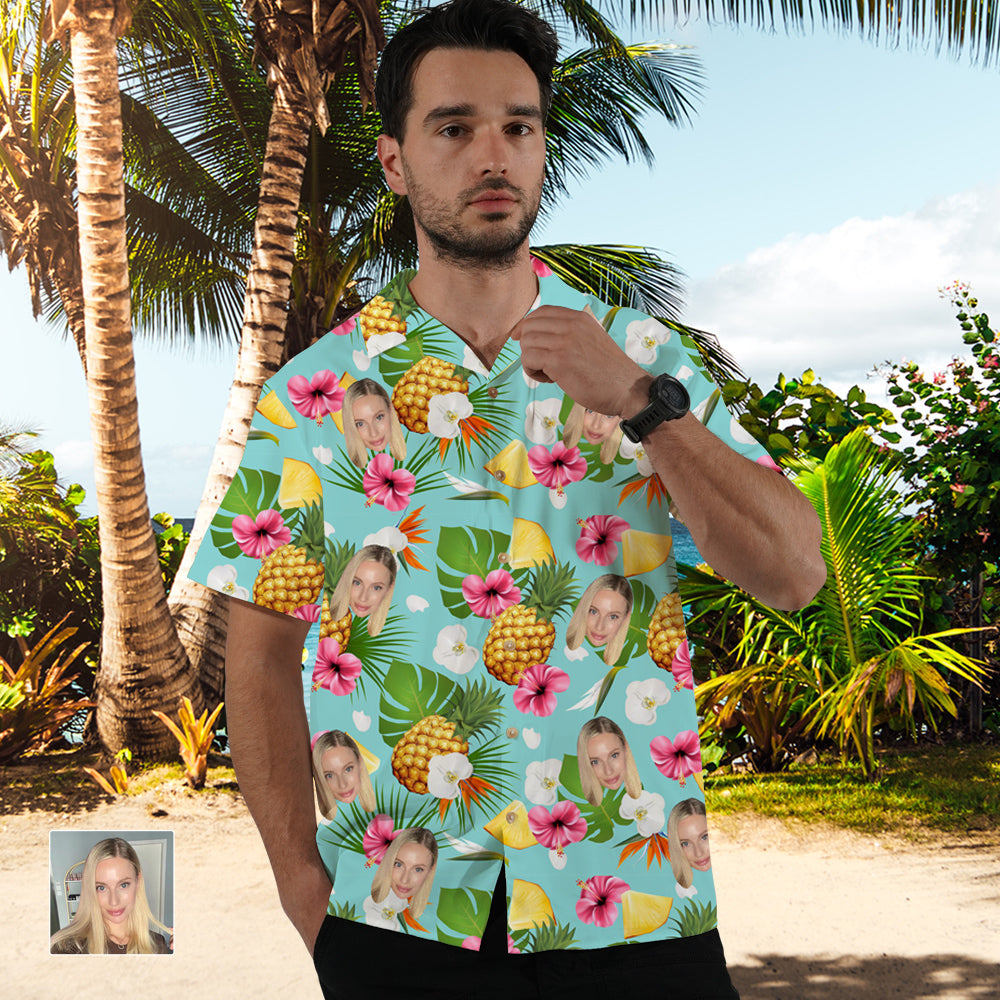 Benutzerdefiniertes Gesichts-Hawaii-Hemd, Ananas-Tropen-Aloha-Hemd