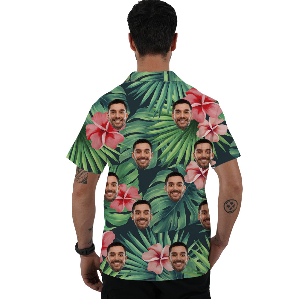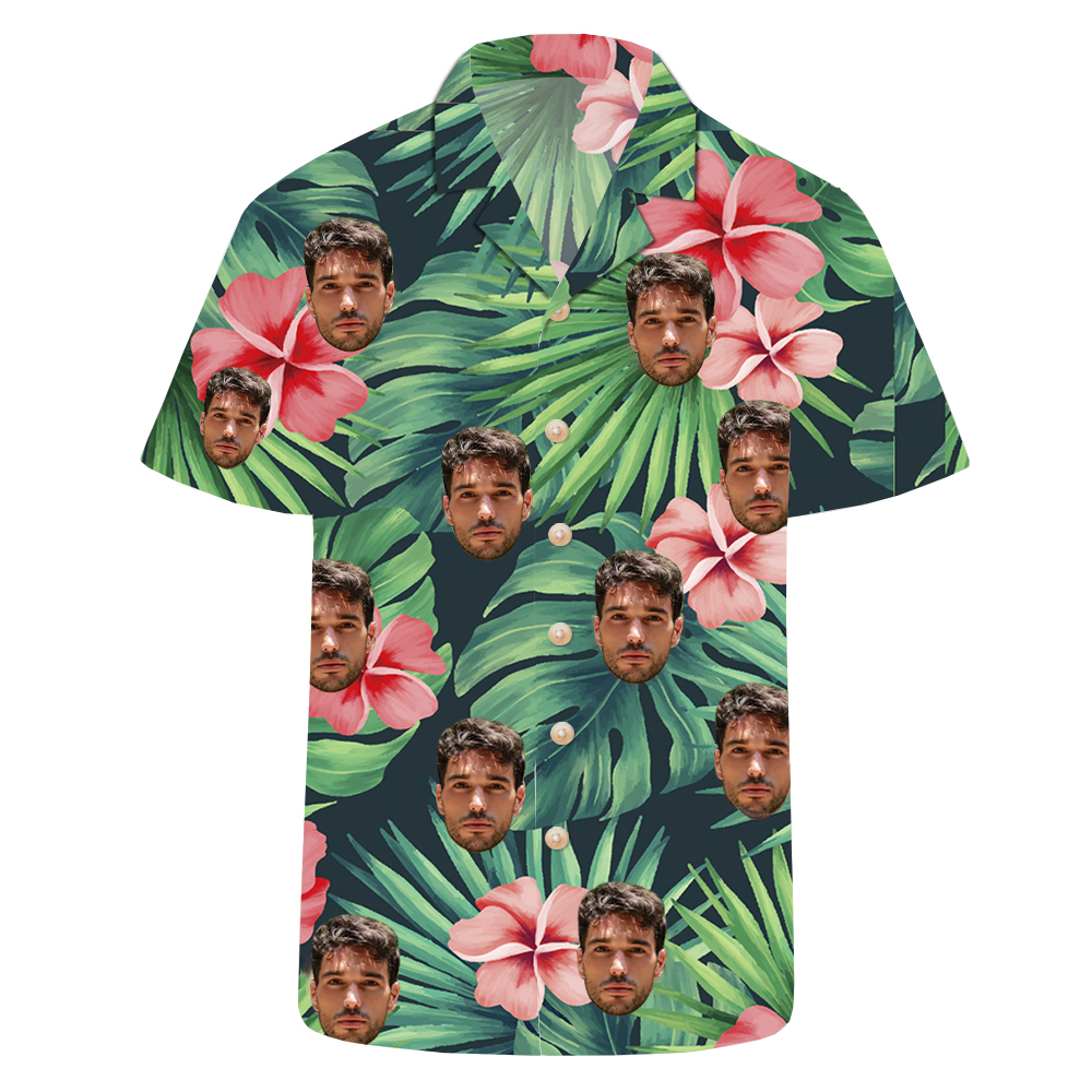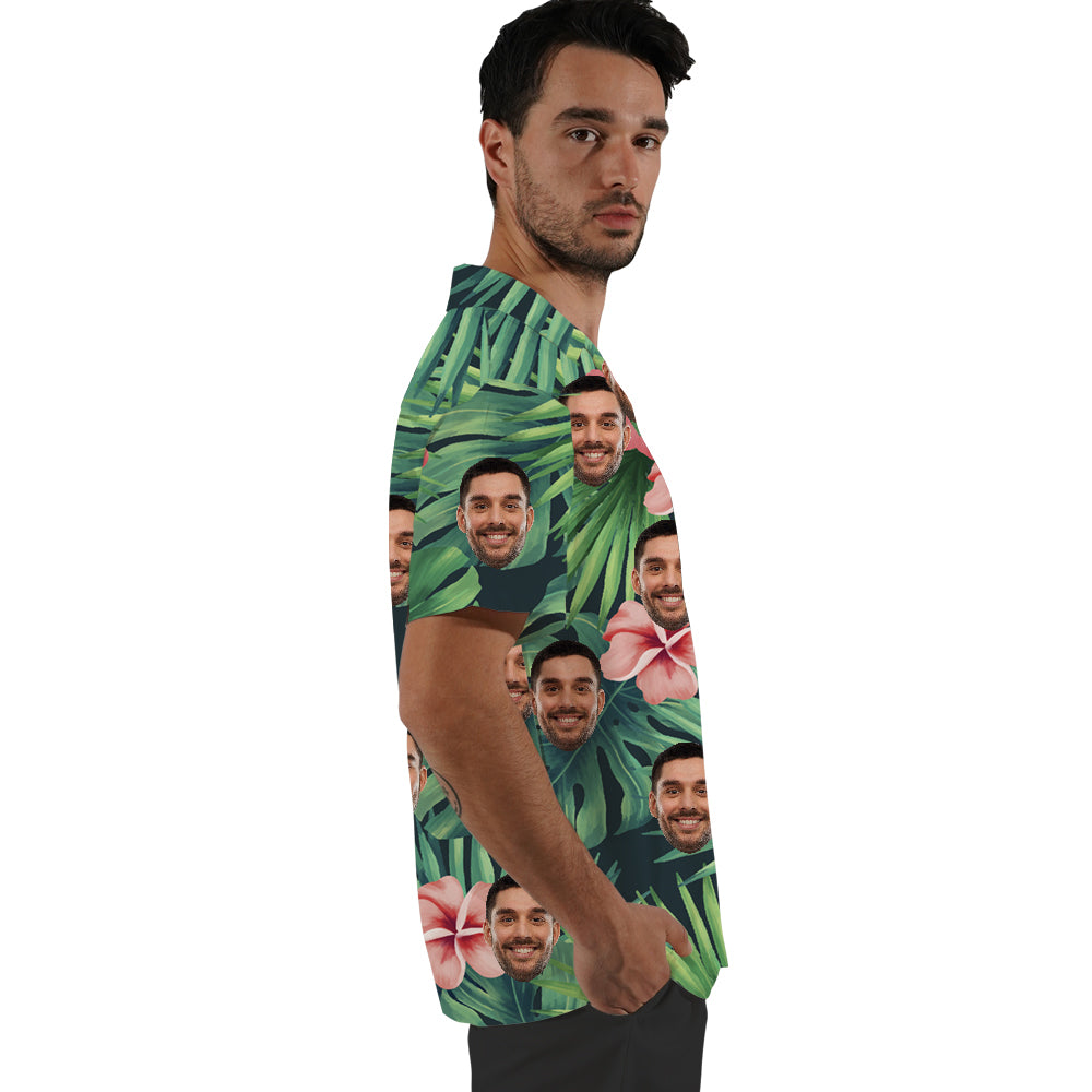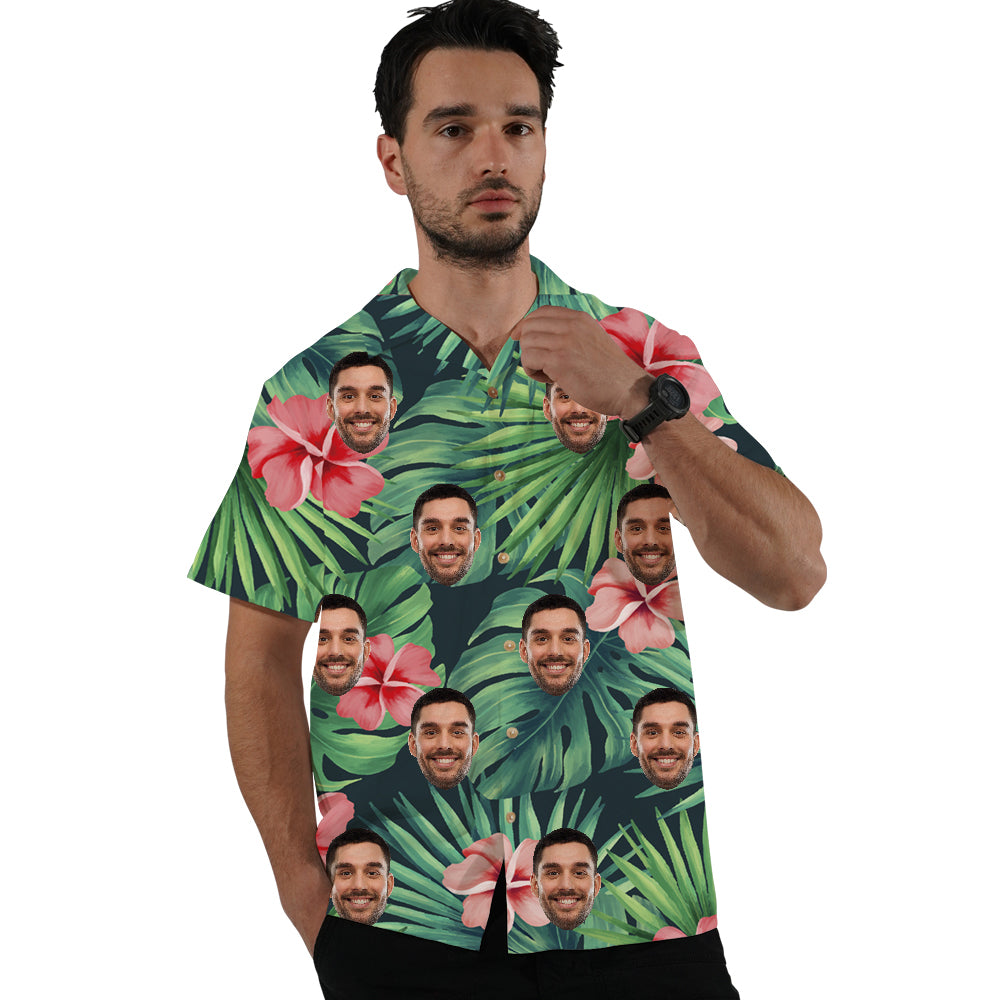 Benutzerdefiniertes Gesichts-Hawaii-Hemd mit Distelgrün-Blättern