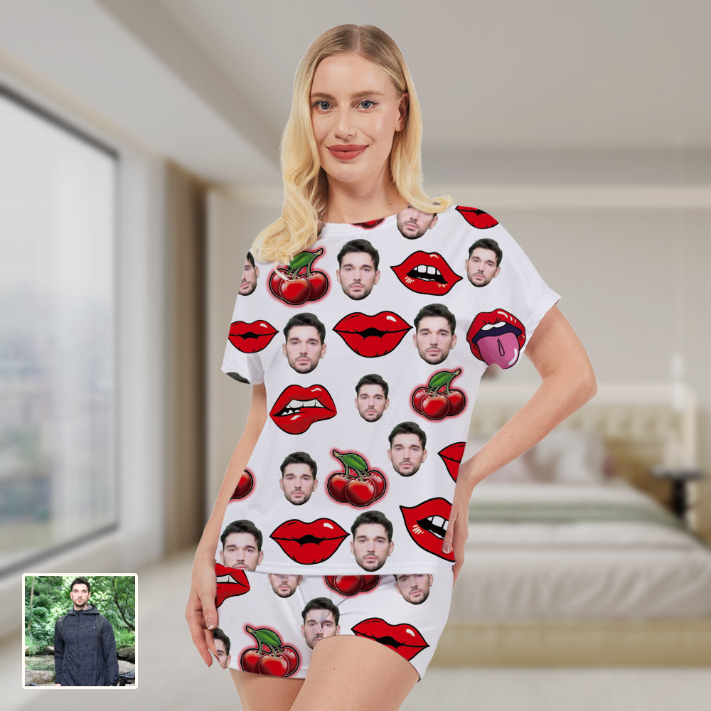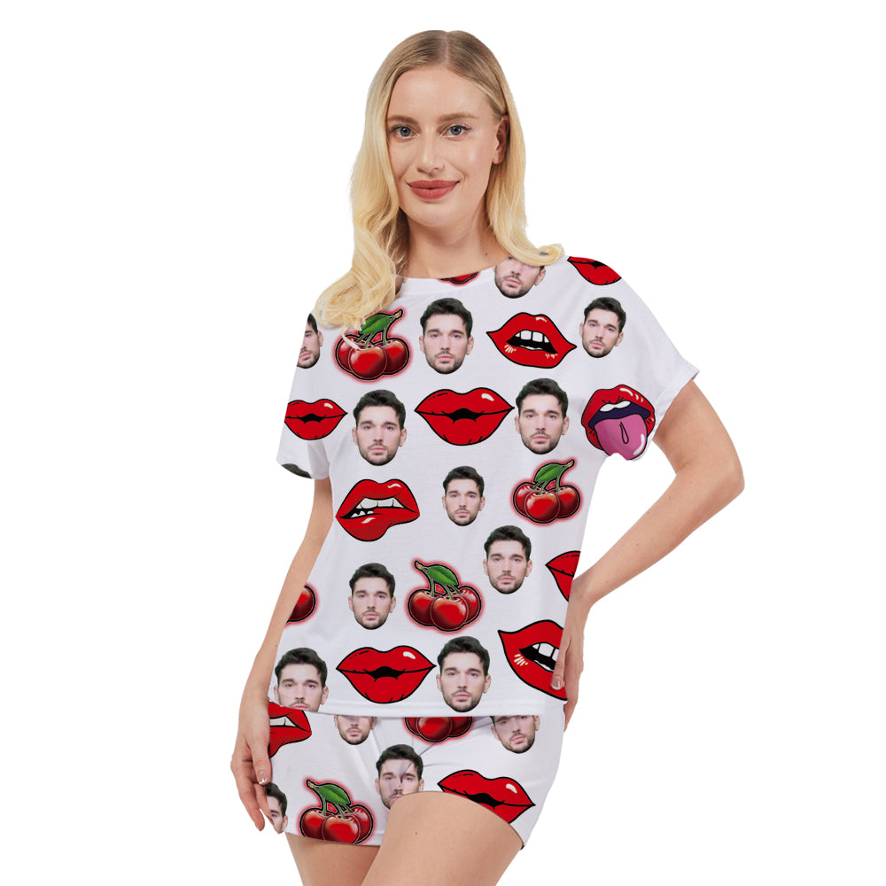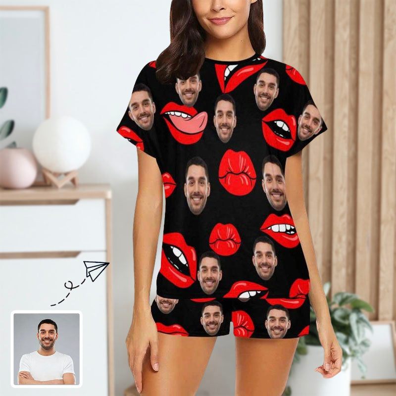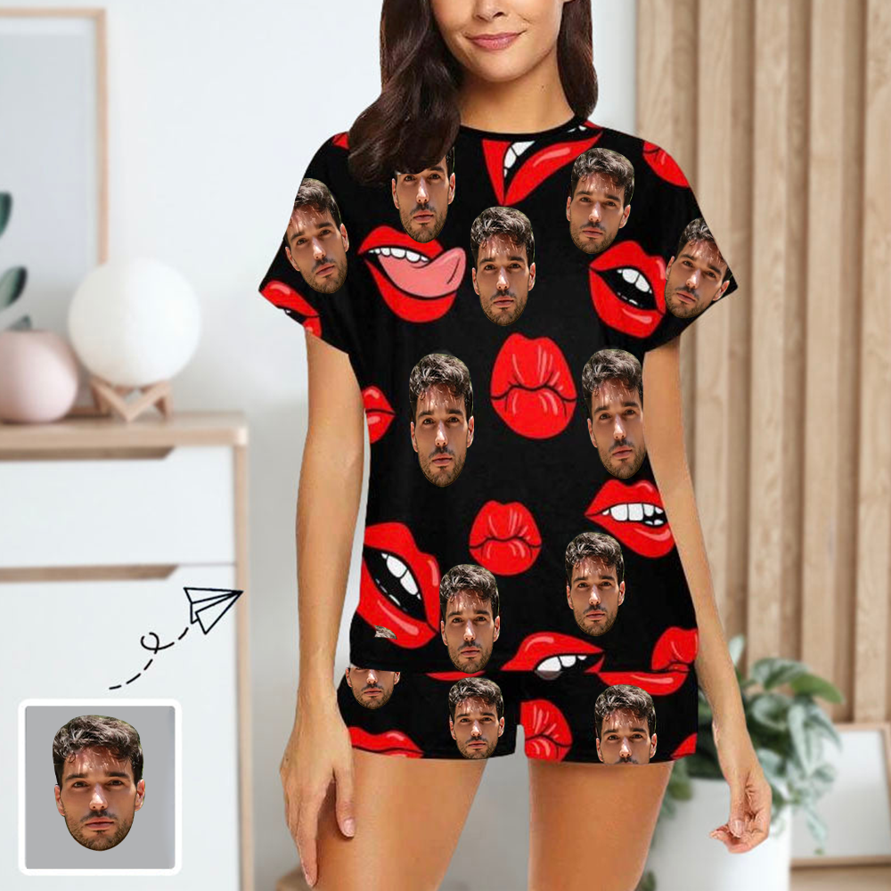 Benutzerdefiniertes Face Red Lips Damen-Pyjama-Set