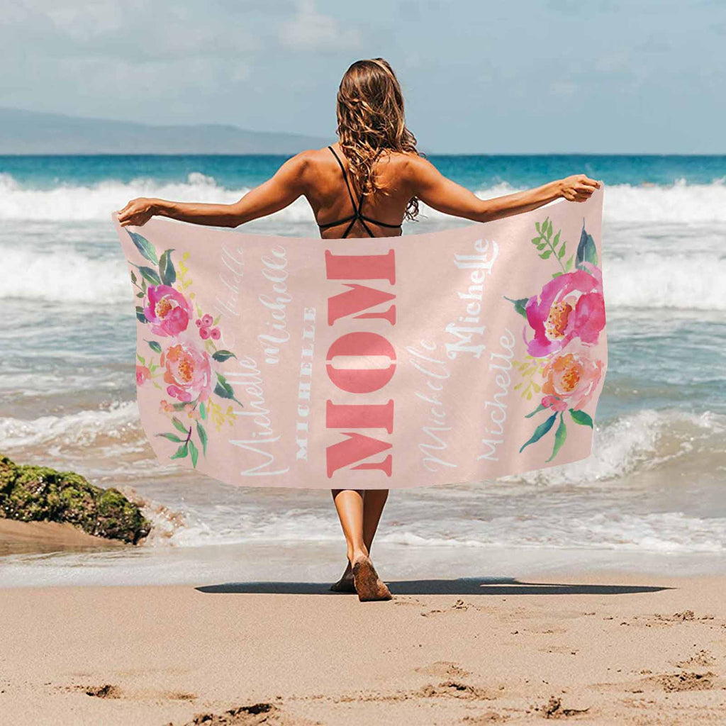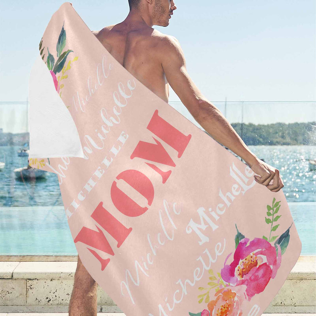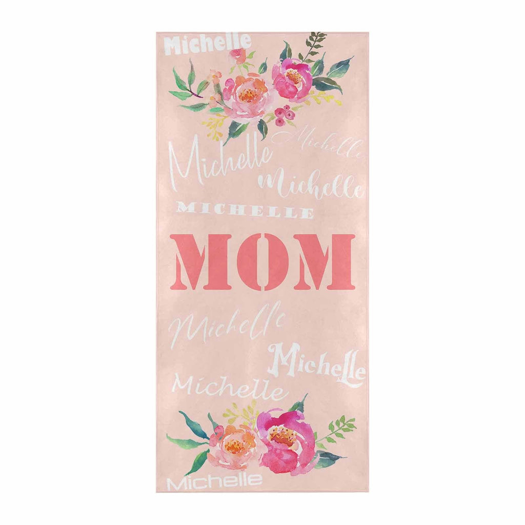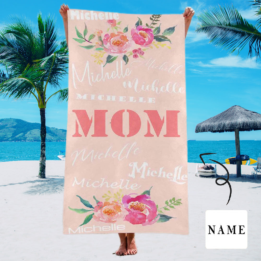 Strandtuch mit individuellem Namen, Mutter und Blume