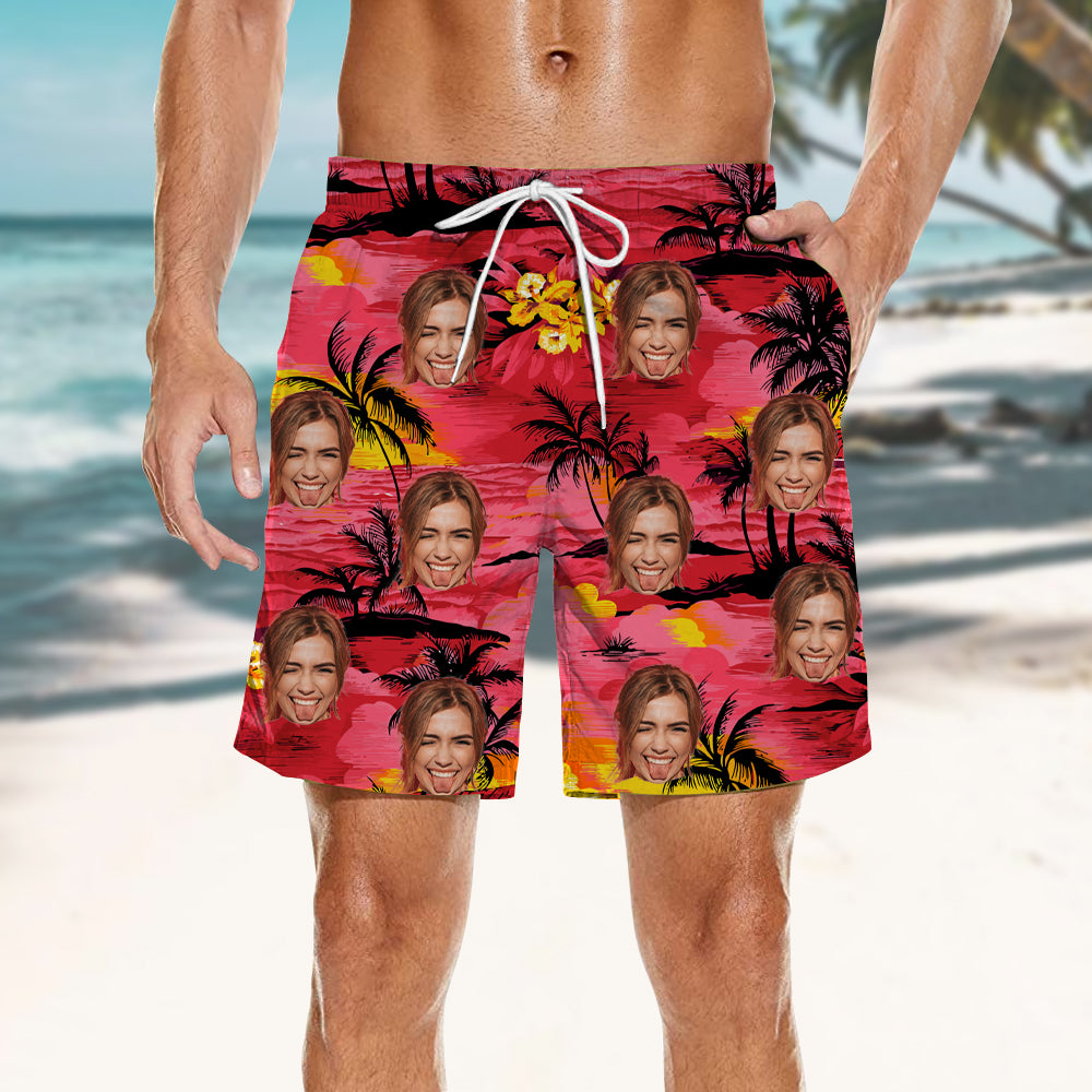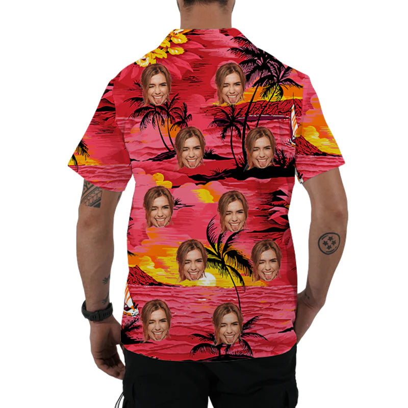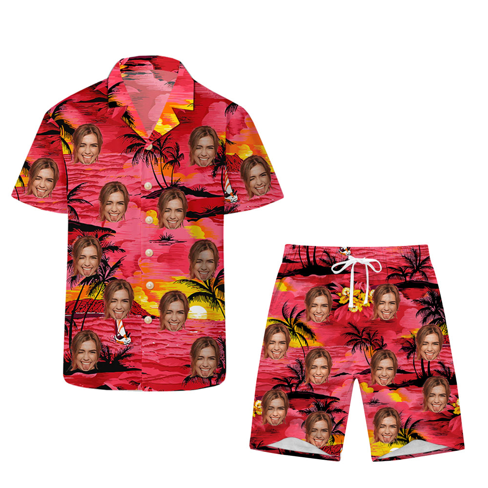 Customized Classic Red Hawaiian Short-Sleeved Shirt & Beach Shorts