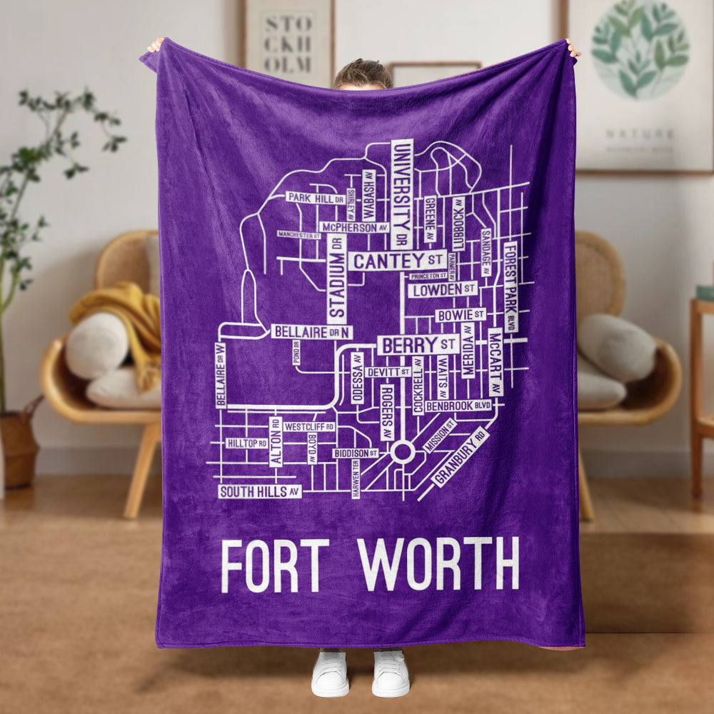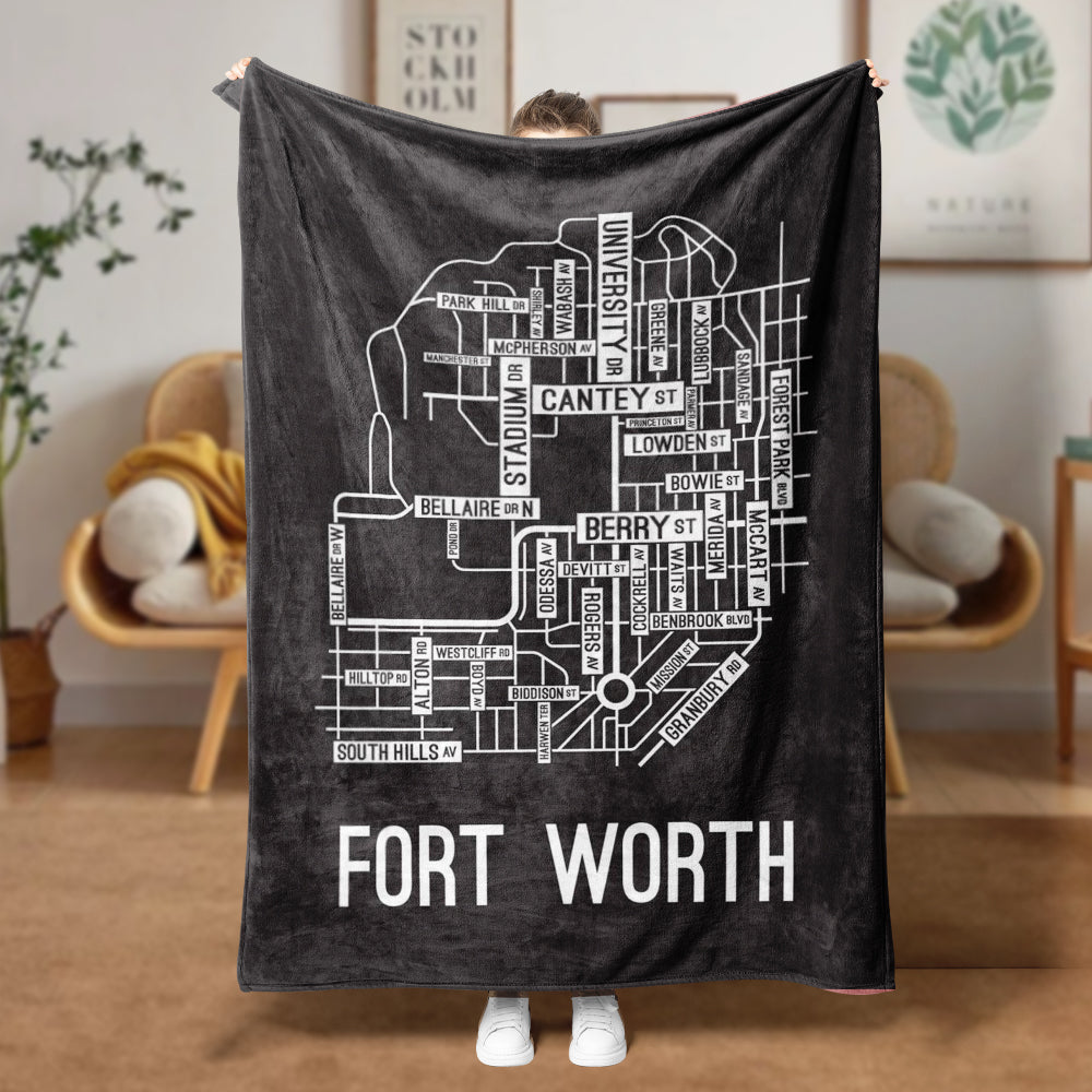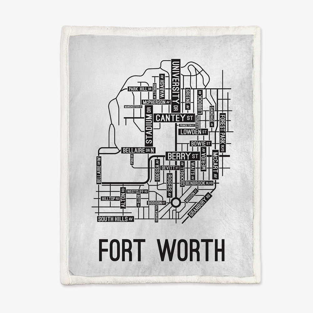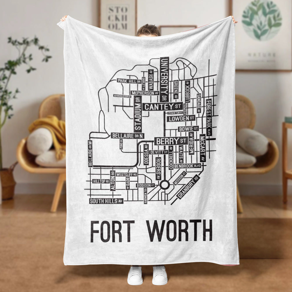 Fort Worth, Texas Street Map Blanket Freshmen/Graduates Memorial Gifts