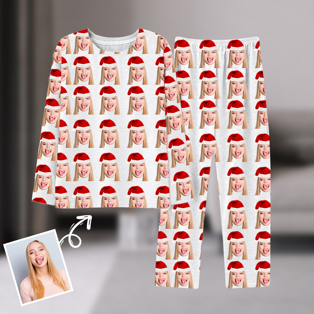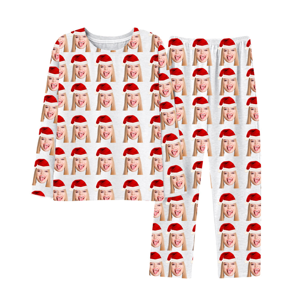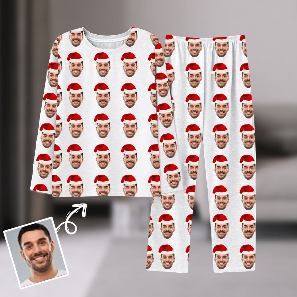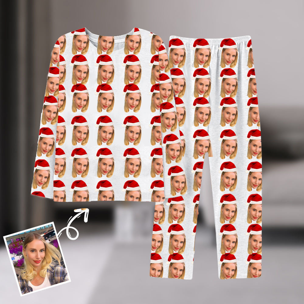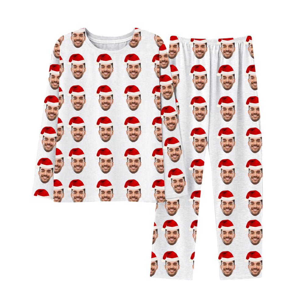 Lustiger benutzerdefinierter Avatar-Pyjama, männlich, weiblich, Langarm-Pyjama, Weihnachtsmütze