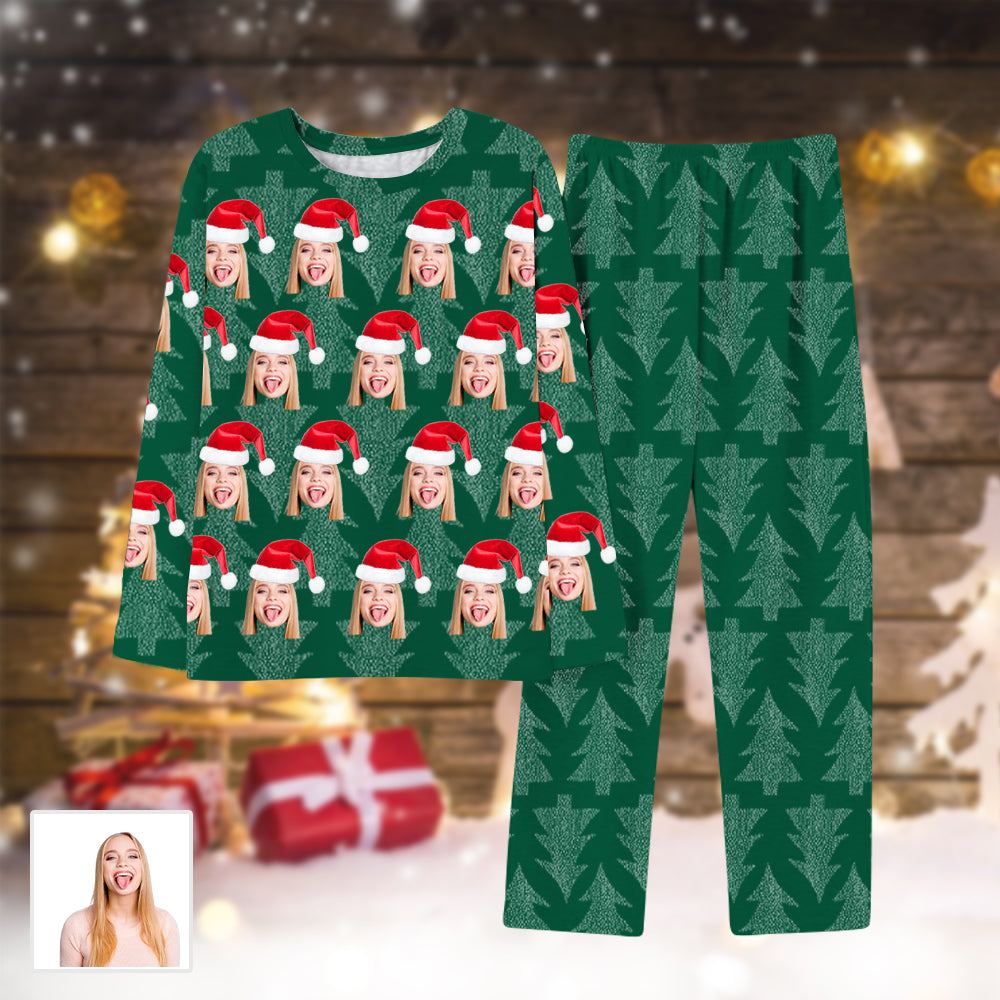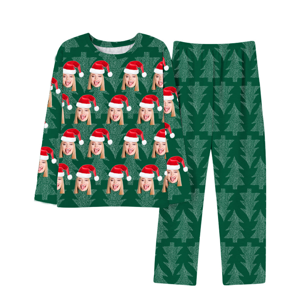 Green Christmas Tree All Over Printed Custom Face Long Sleeves and Pants Pajamas