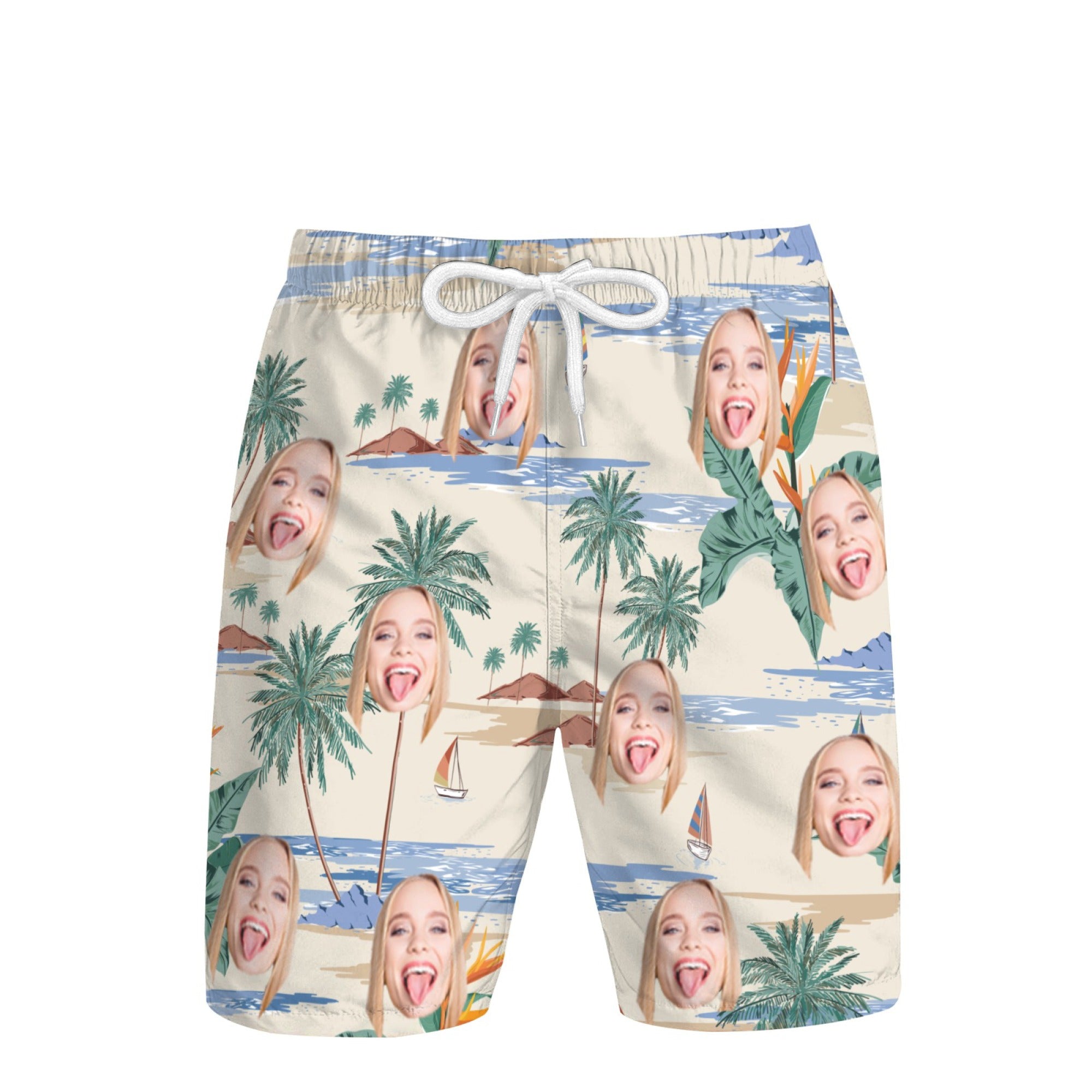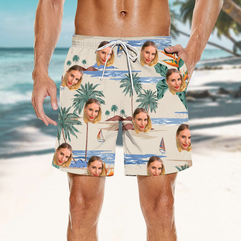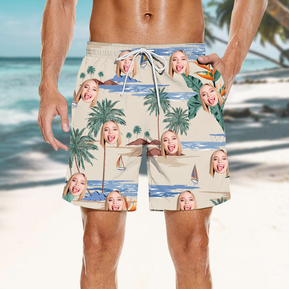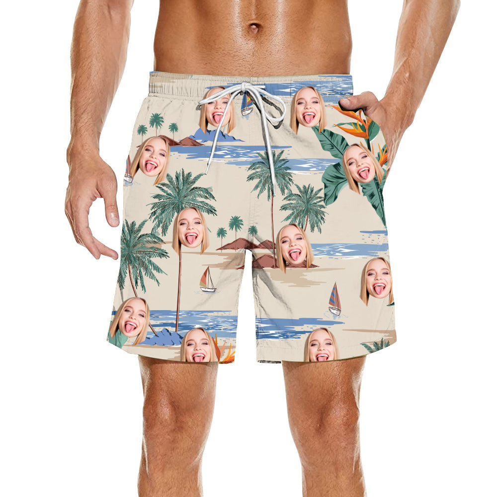 Island Scenery Print Upload Photo Customized Men's Beach Shorts Outerwear/Home Shorts
