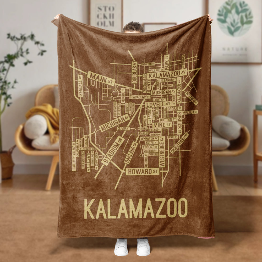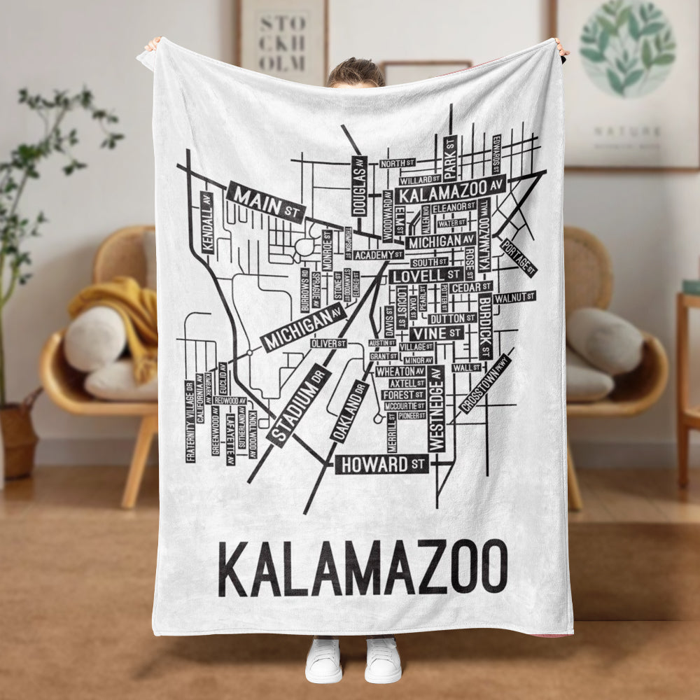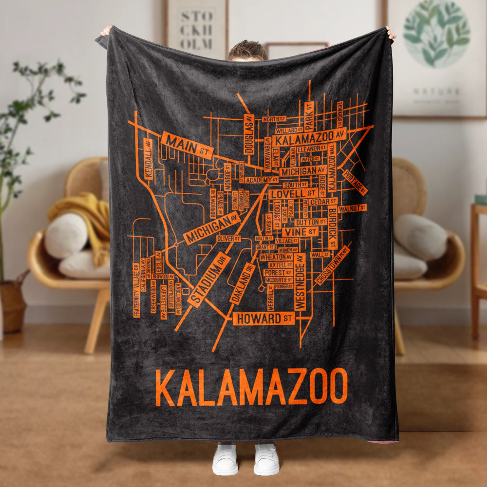 Kalamazoo, Michigan Street Map Blanket Freshmen/Graduates Memorial Gifts