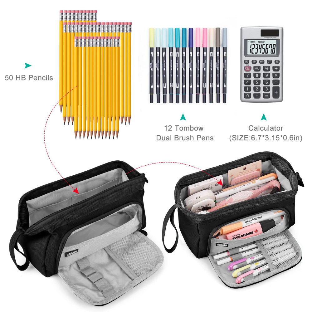 【Großer Stauraum】Federmäppchen sind groß genug, um alle Schreibwaren aufzubewahren. Dieses große Federmäppchen bietet gut organisierten Stauraum für Stifte, Bleistifte, Spitzer, Radiergummis, Scheren, Taschenrechner und anderes Zubehör.