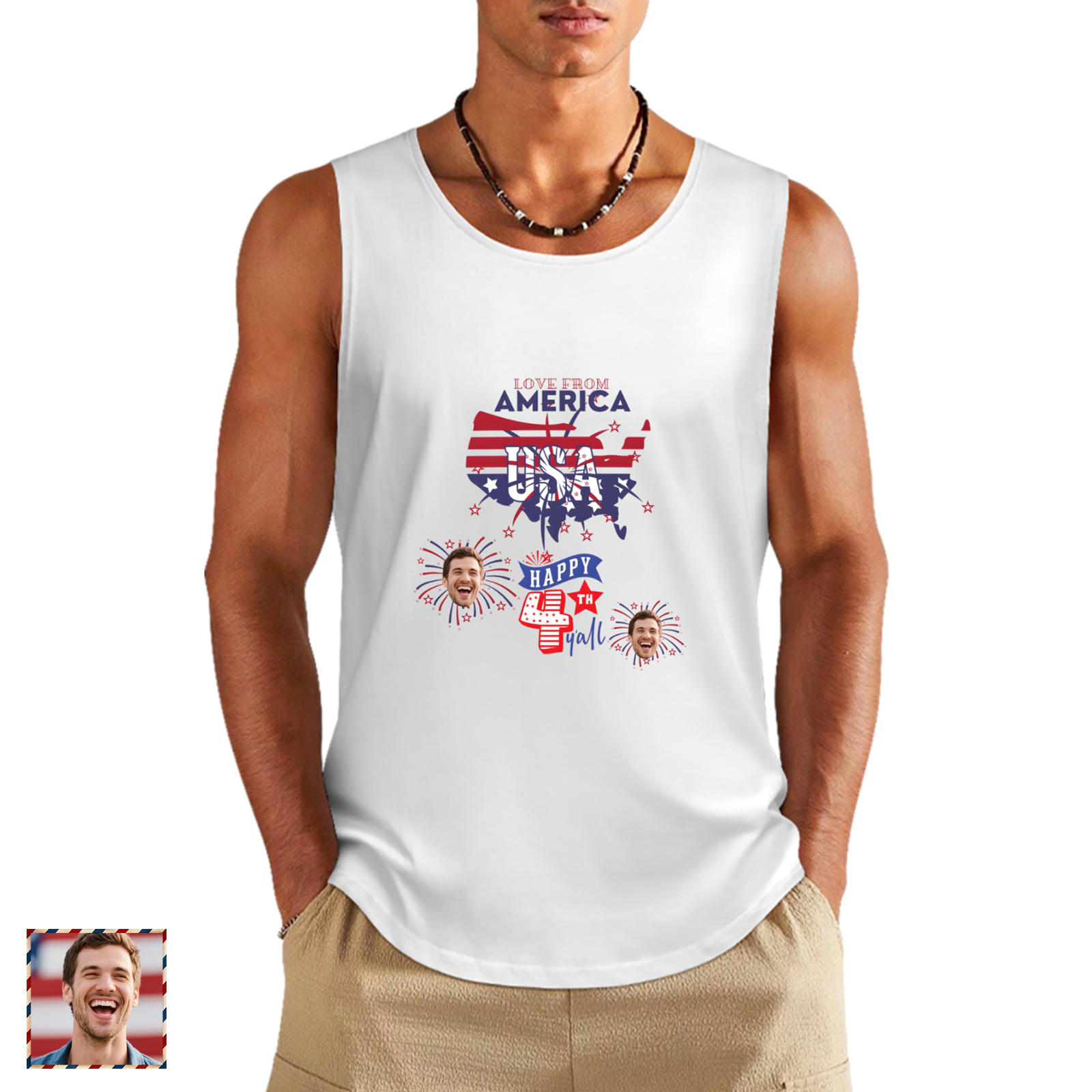 (Local Warehouse) Custom Face & 1776 Pride Tank Top - Your Personalized July 4th Party Look