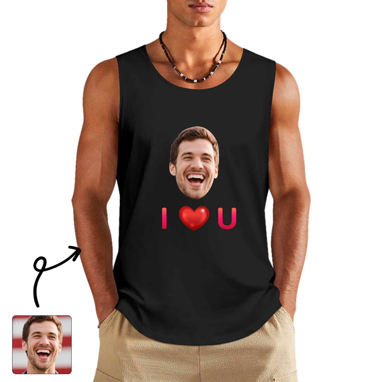 (Local Warehouse) Customized "I Love You" Face Tank Top - Perfect For Birthday Parties & Vacations