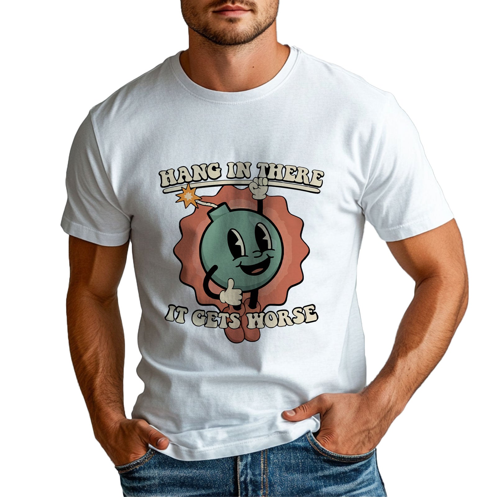 (Local Warehouse) Men's Front Printed T-Shirt Bombshell 100% Cotton Funny Graphic T-Shirt Summer Casual T-Shirt