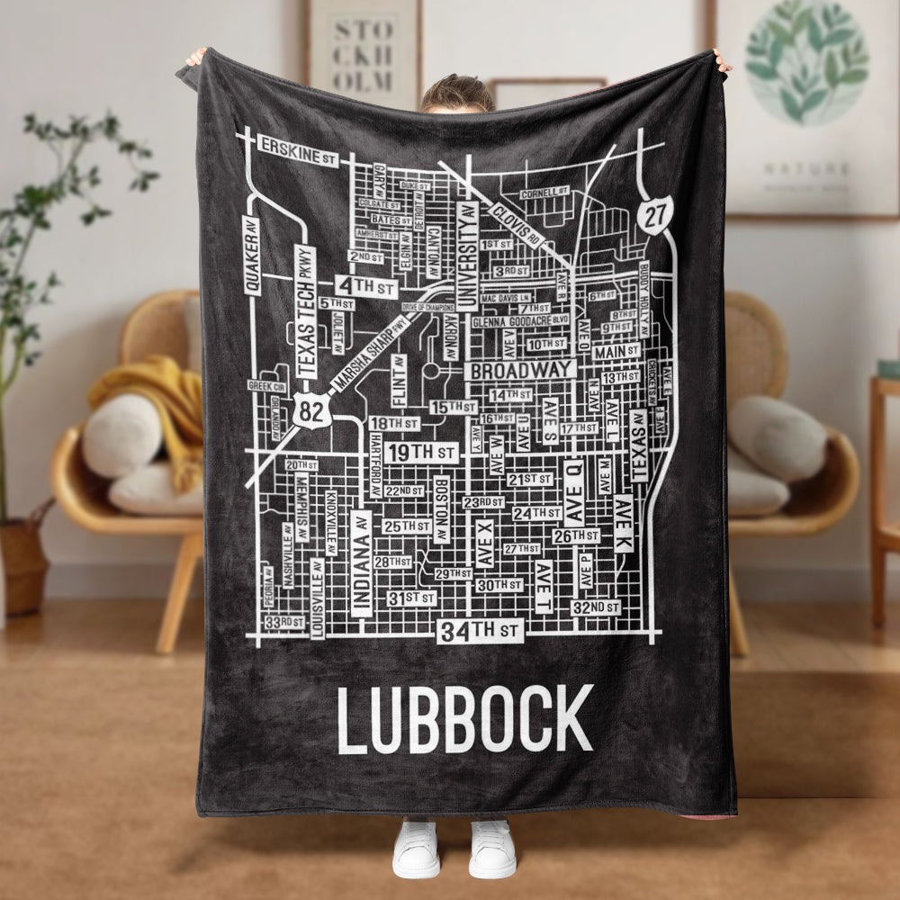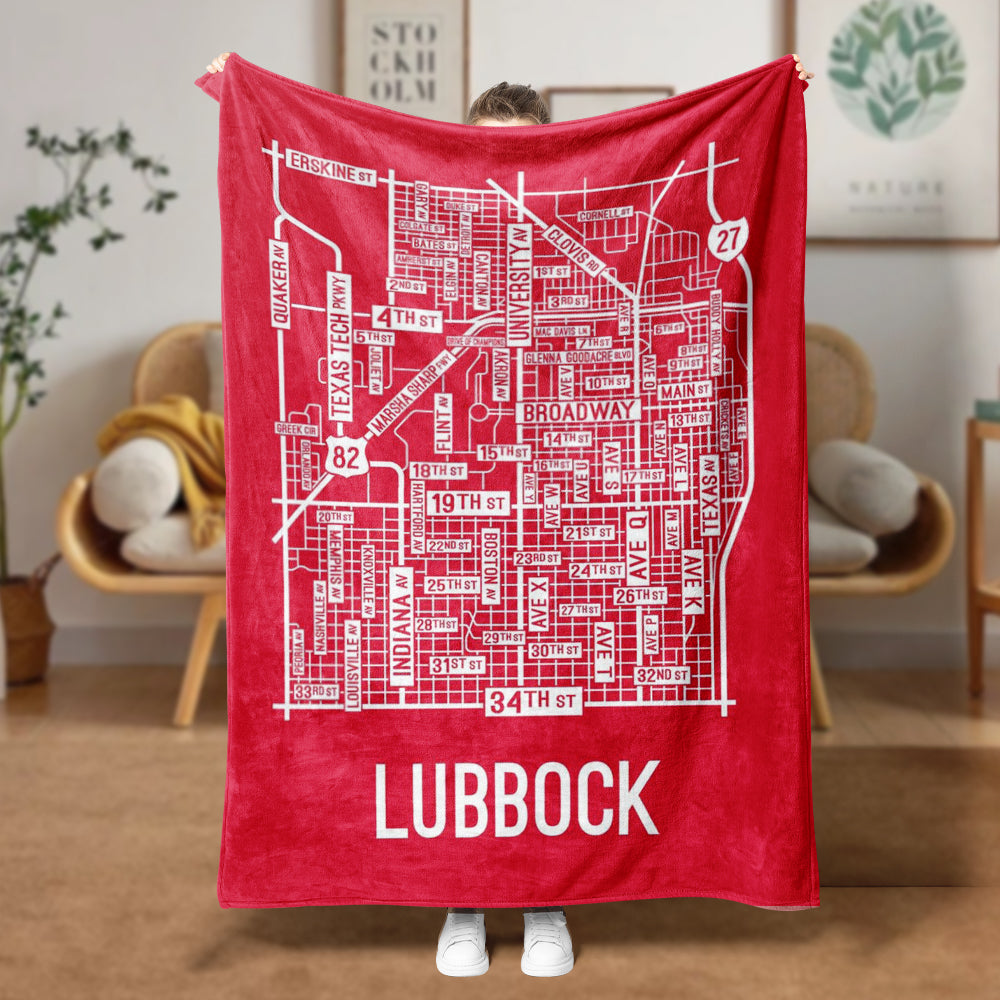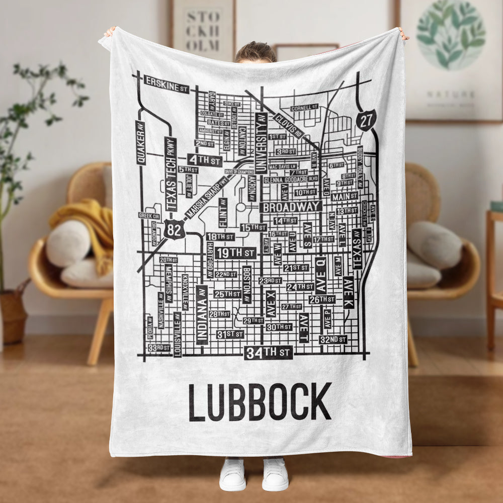 Lubbock, Texas Street Map Blanket Freshmen/Graduates Memorial Gifts