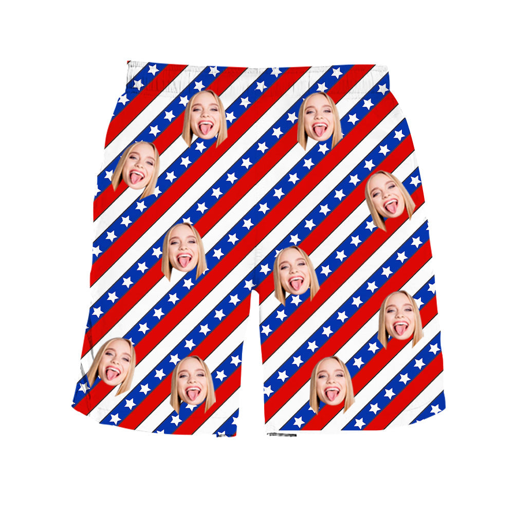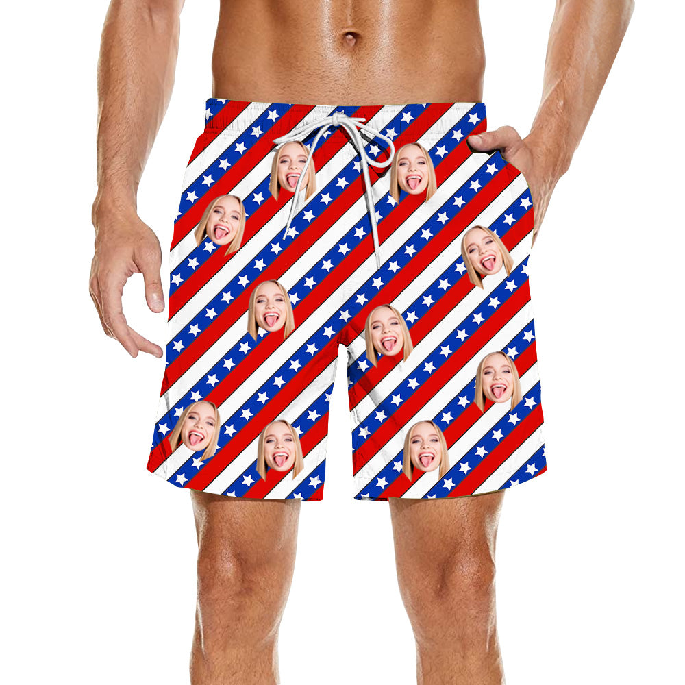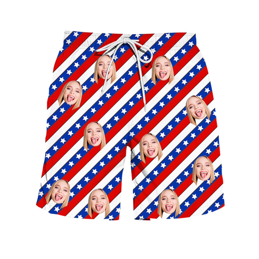 Men's Custom Face Swim Shorts Personalized Unique 4th Of July American Flag Design