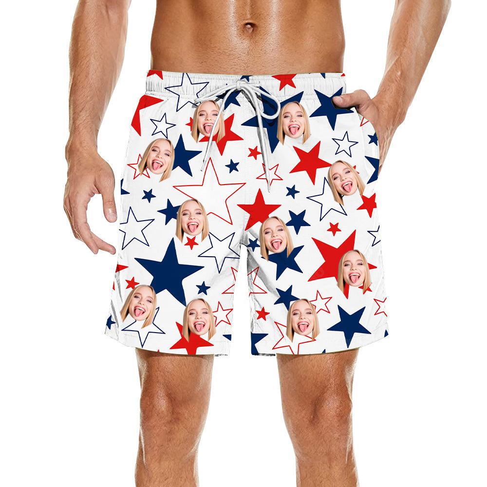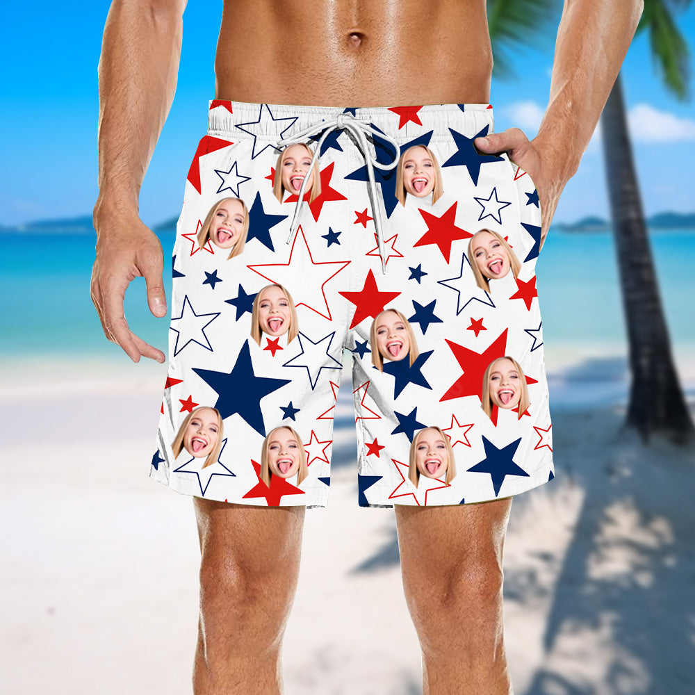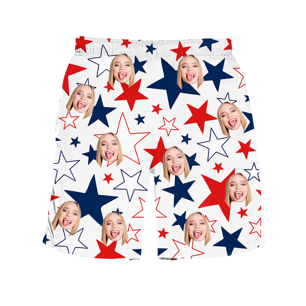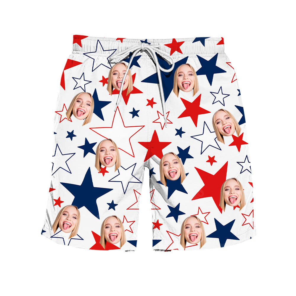 Men's Custom Face USA Flag Shorts Personalized Unique 4th July Swimwear Gift