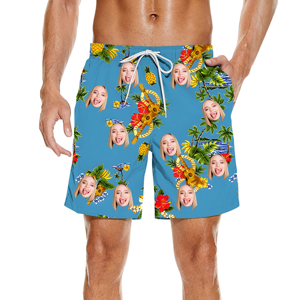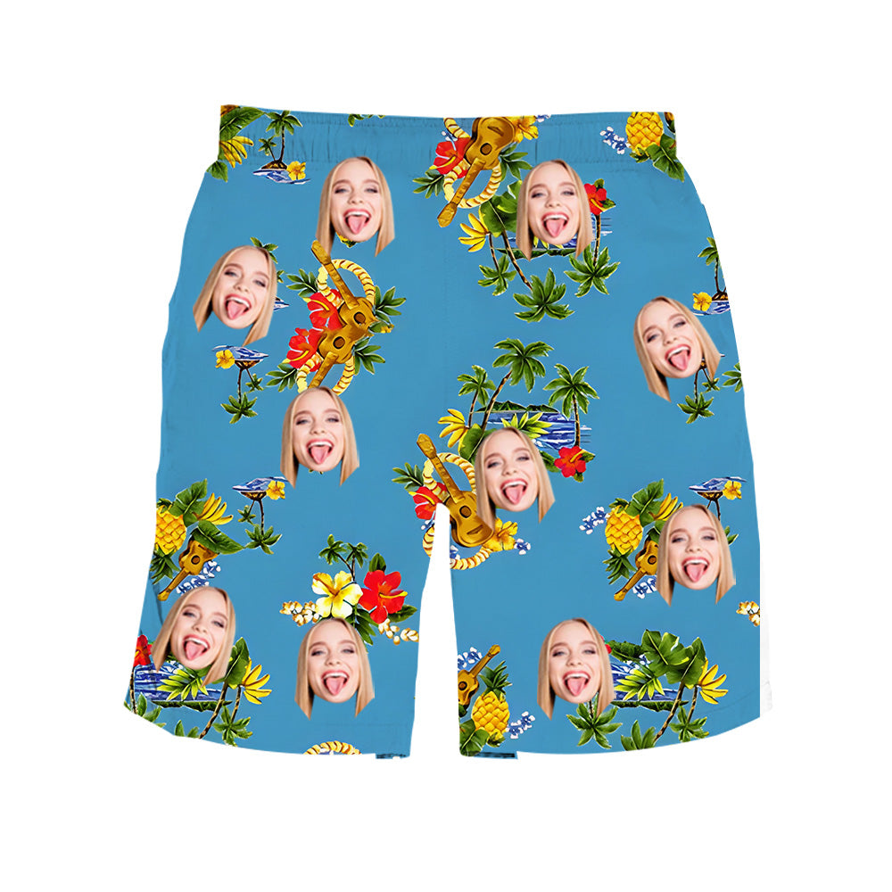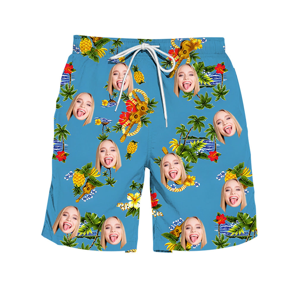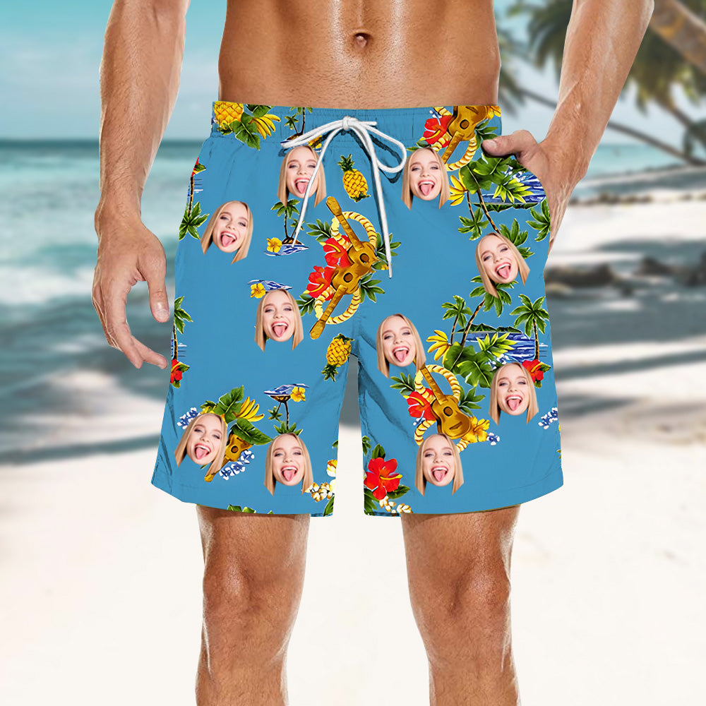 Men's Customized Face Photo Hawaiian Beach Shorts Summer Vacation Shorts Pool Beach Party Fashionable Outfits