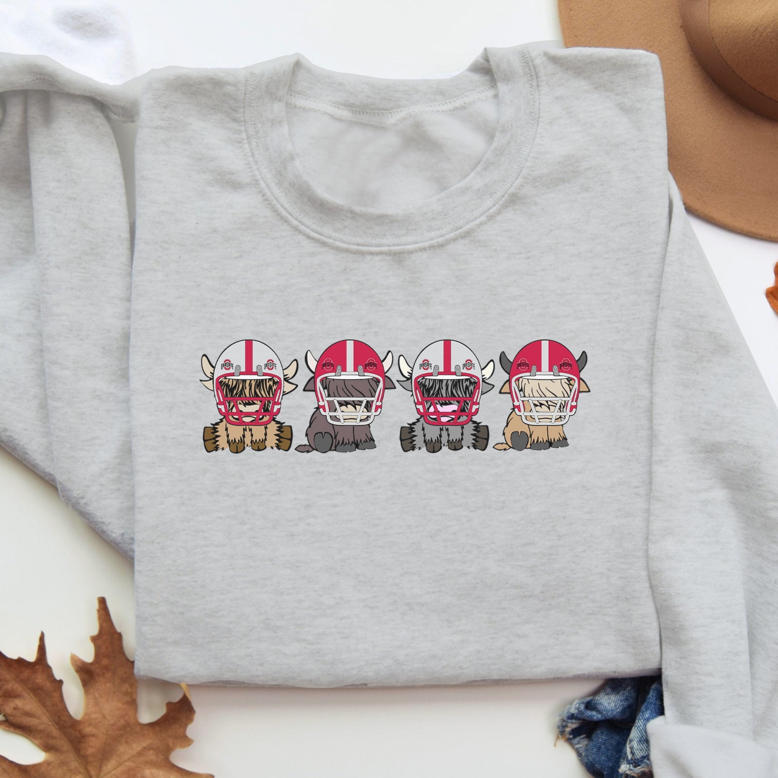 Ohio State Buckeyes Football Highland Cow Football Team Football Lovers Gift Unisex Crewneck Hoodie Sweatshirt