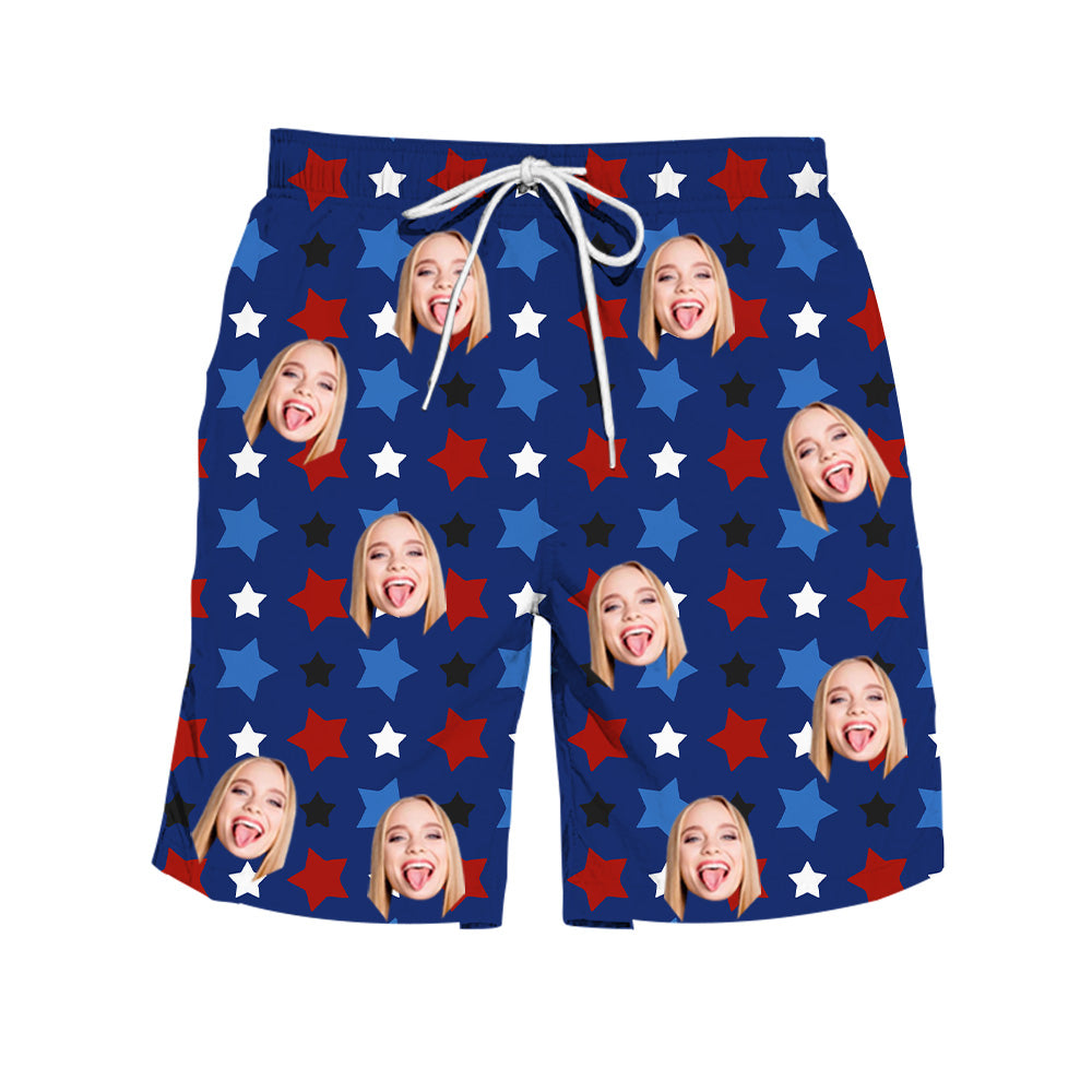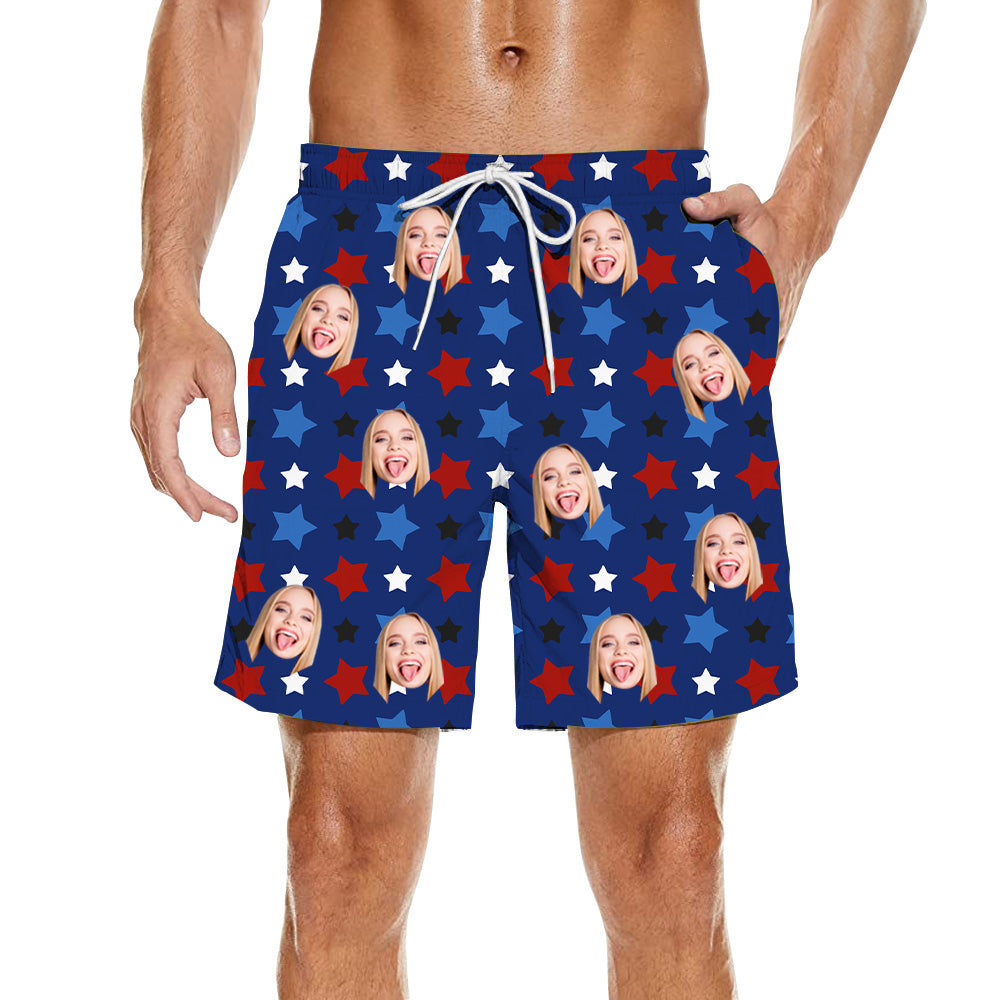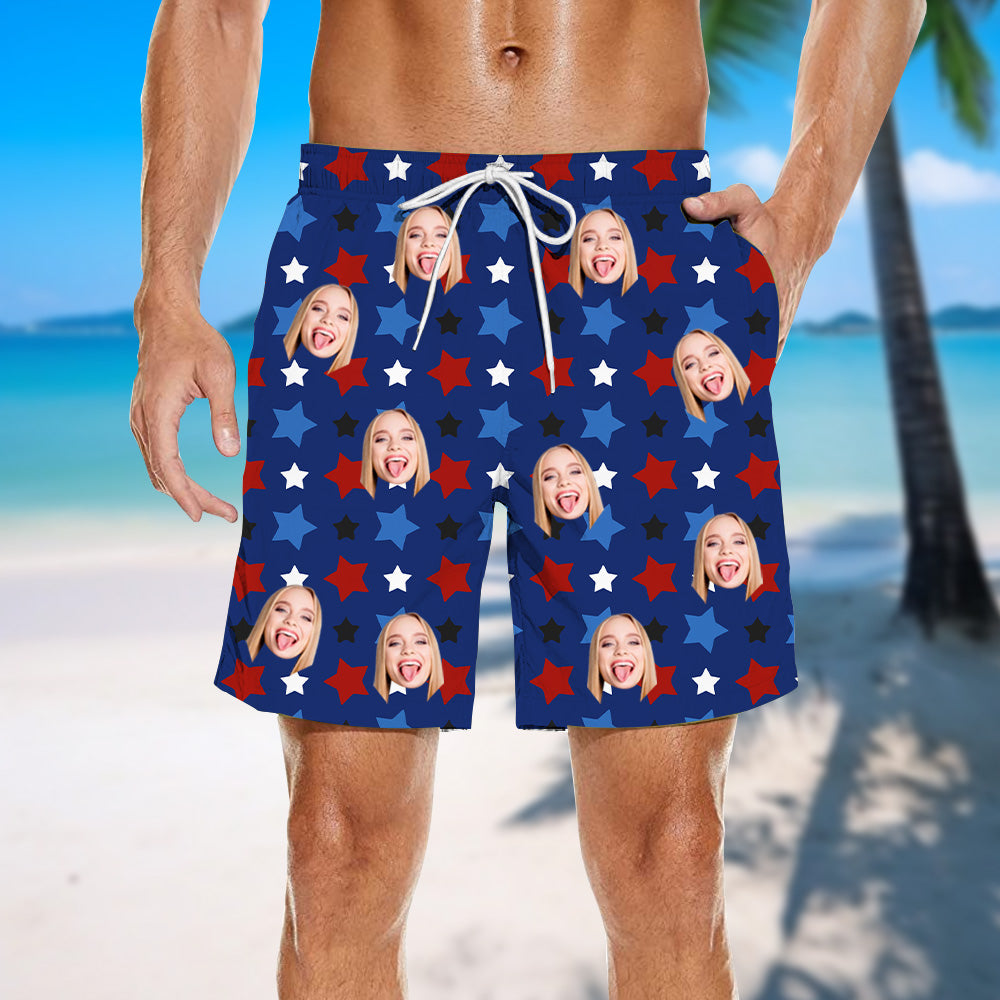 Personalized Custom Face Beach Shorts Unique Patriotic Independence Day Swimwear For Him