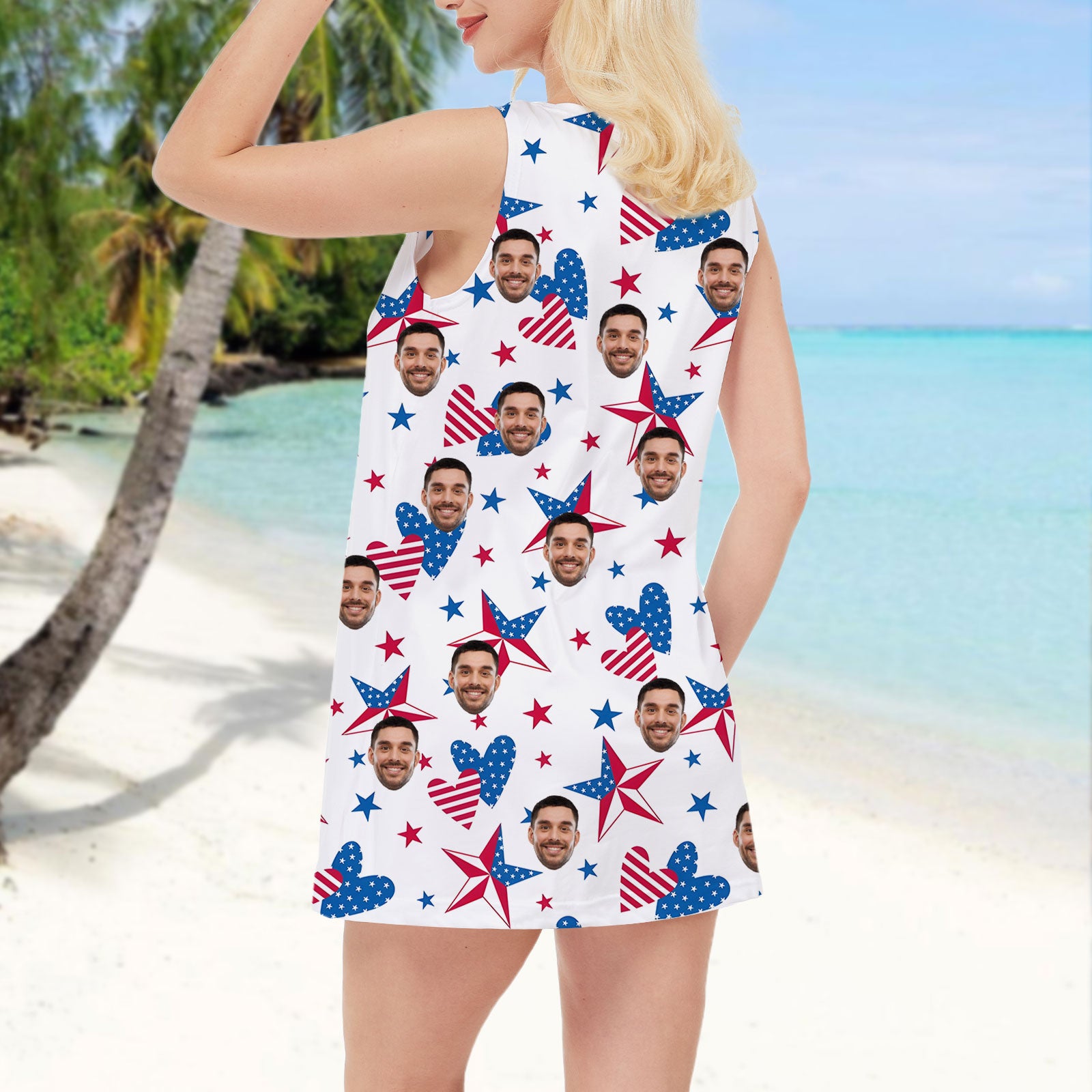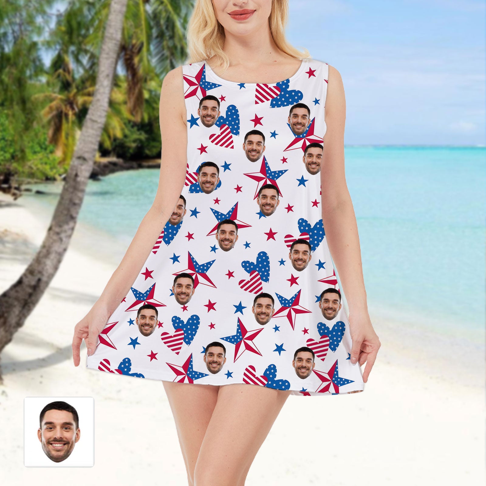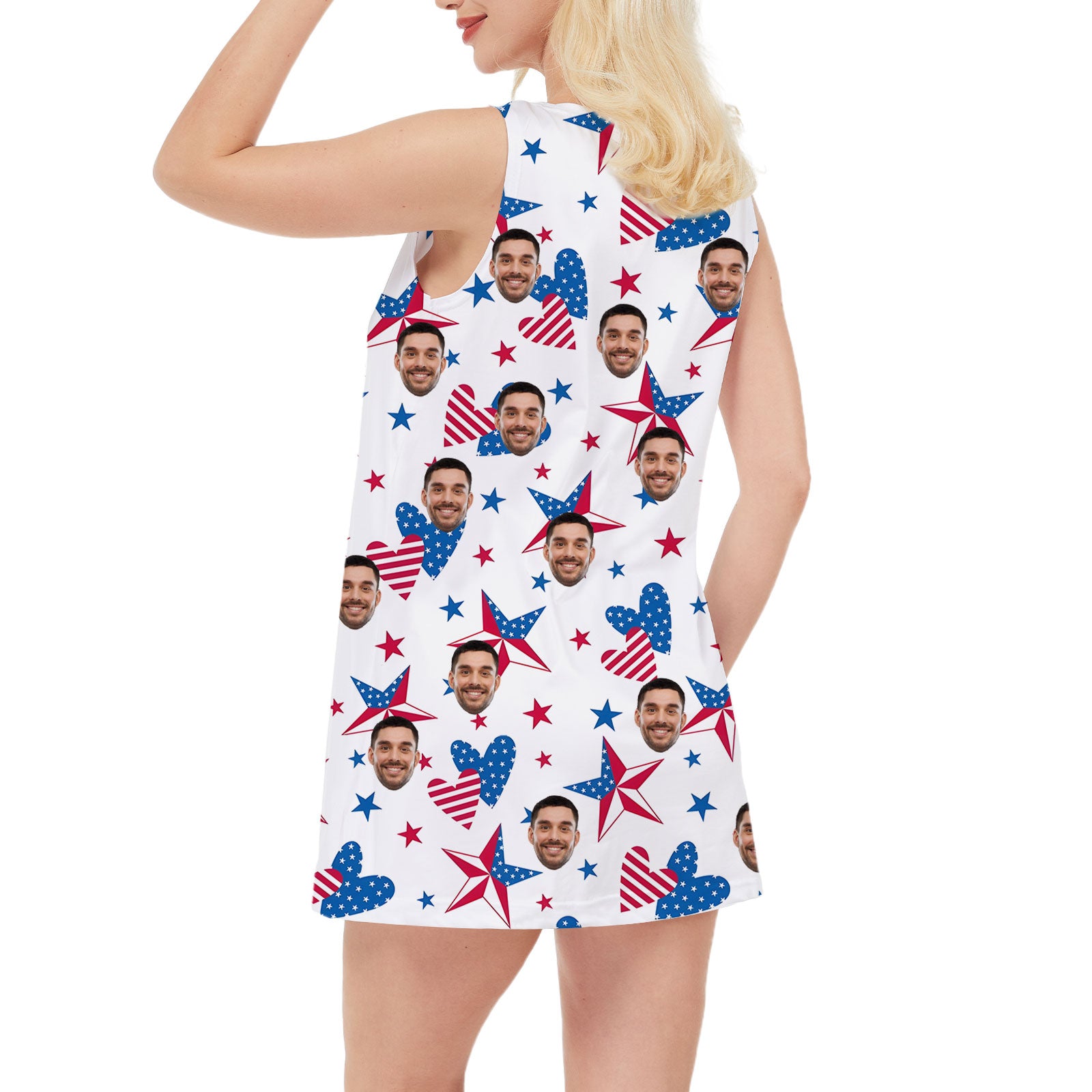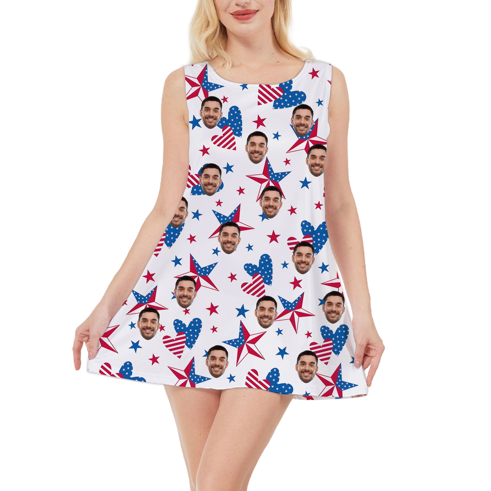 Personalized Custom Face USA Flag Dress Unique 4th Of July Women's Dress