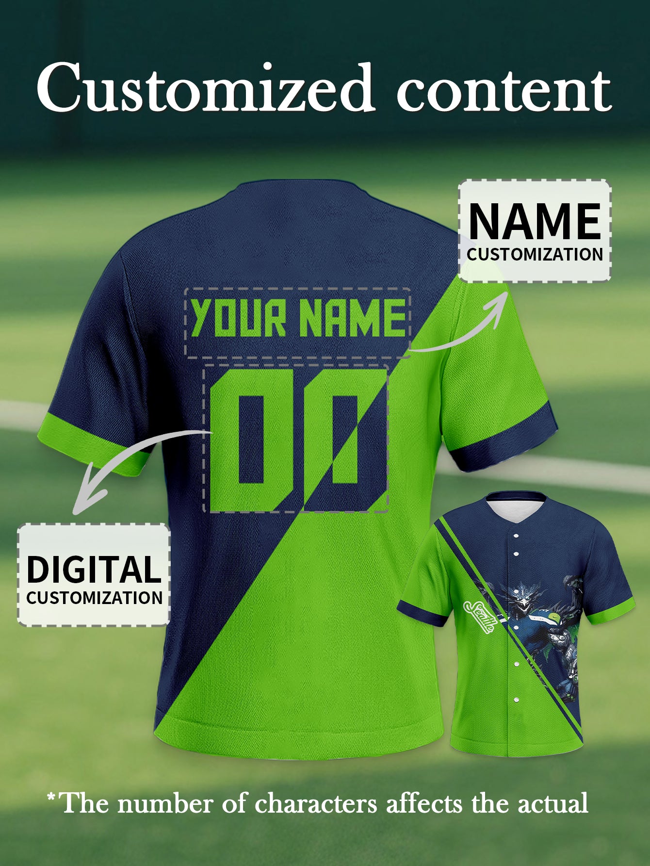 Seattle Seahawks Fan Baseball Shirt - Custom Name & Number