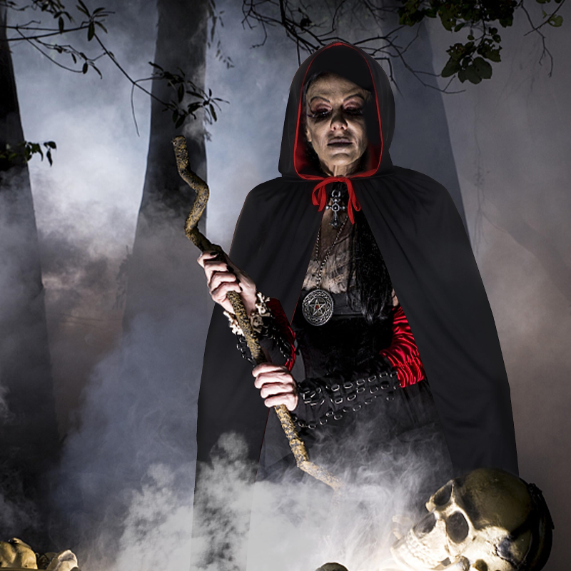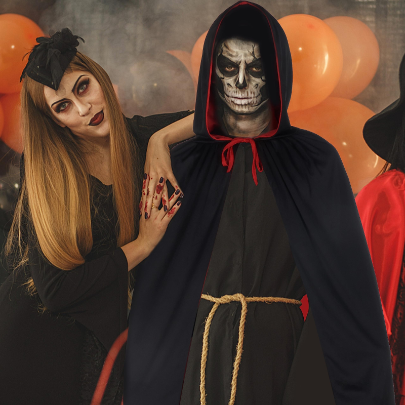 - REVERSIBLE CAPE: vampire cloak can be worn in both sides - one side is black and another red, for which it can be used for multiple costumes. Ribbon to tie is sewed on well and the length is perfect.