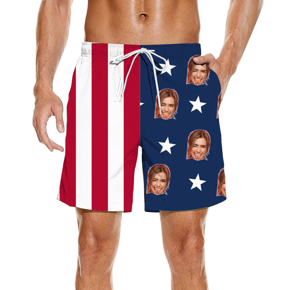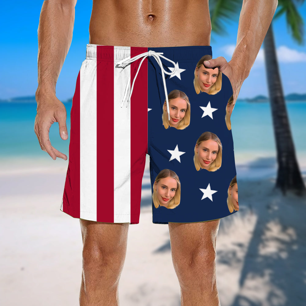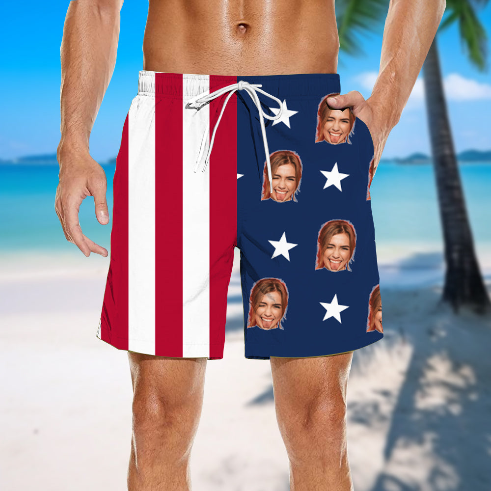 Spliced Print Men's Customized Beach Shorts Casual Wear USA Independence Day
