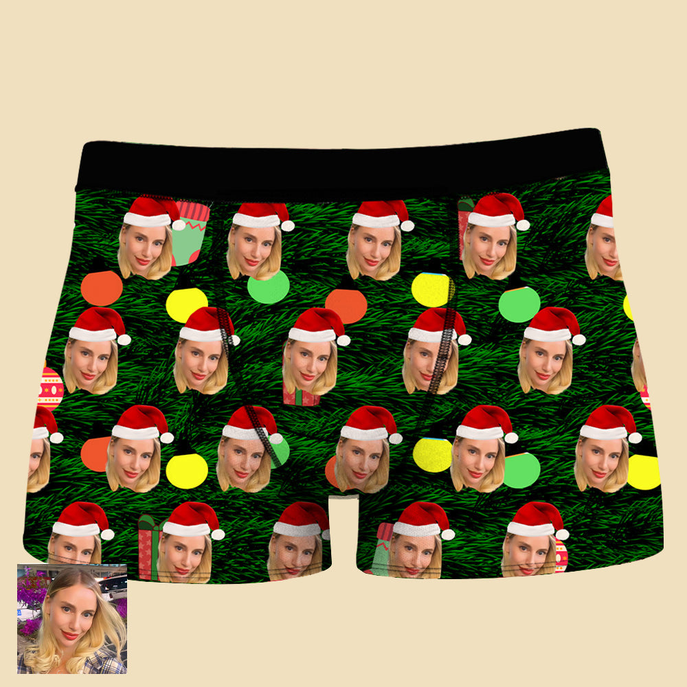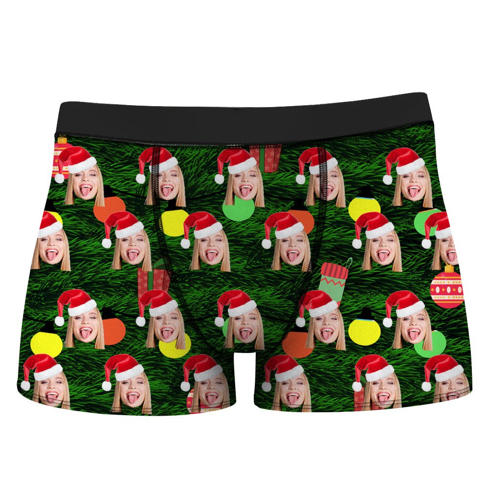 (Tax Included) Christmas Color Flash Light Print Customized Face With Santa Hat Men's Boxer Briefs