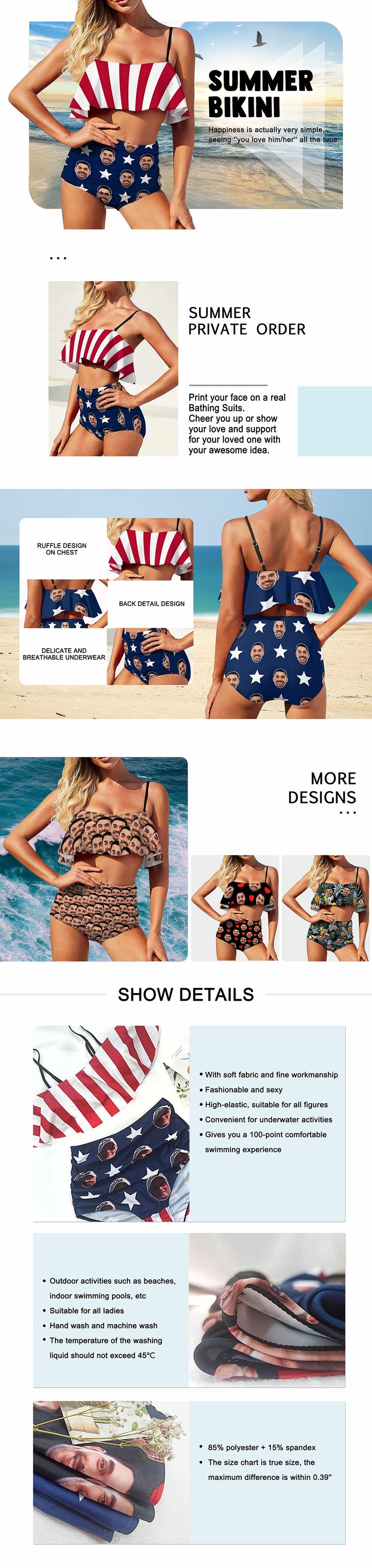 Custom Face Rüschen-Badeanzug mit amerikanischer Flagge