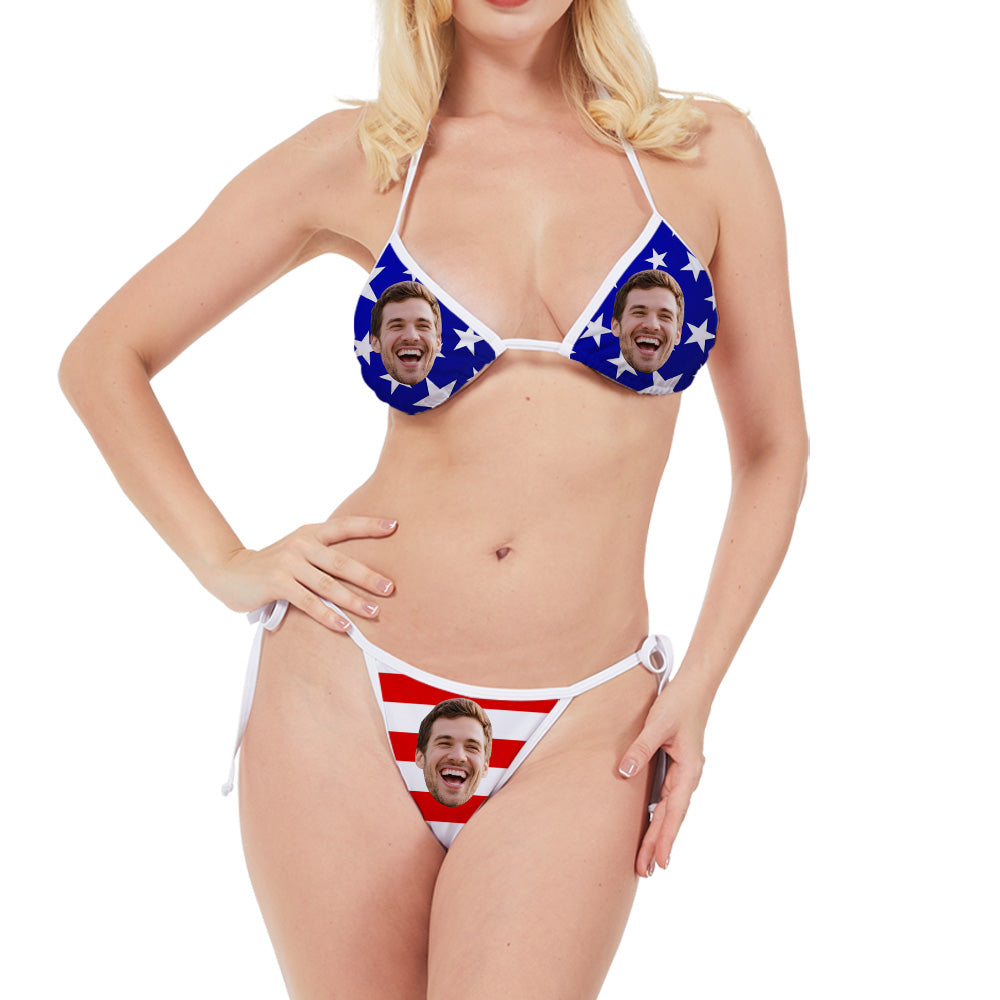(Tax Included) Custom Face Liberty Stripe Bikini With Side Ties For Yacht Parades