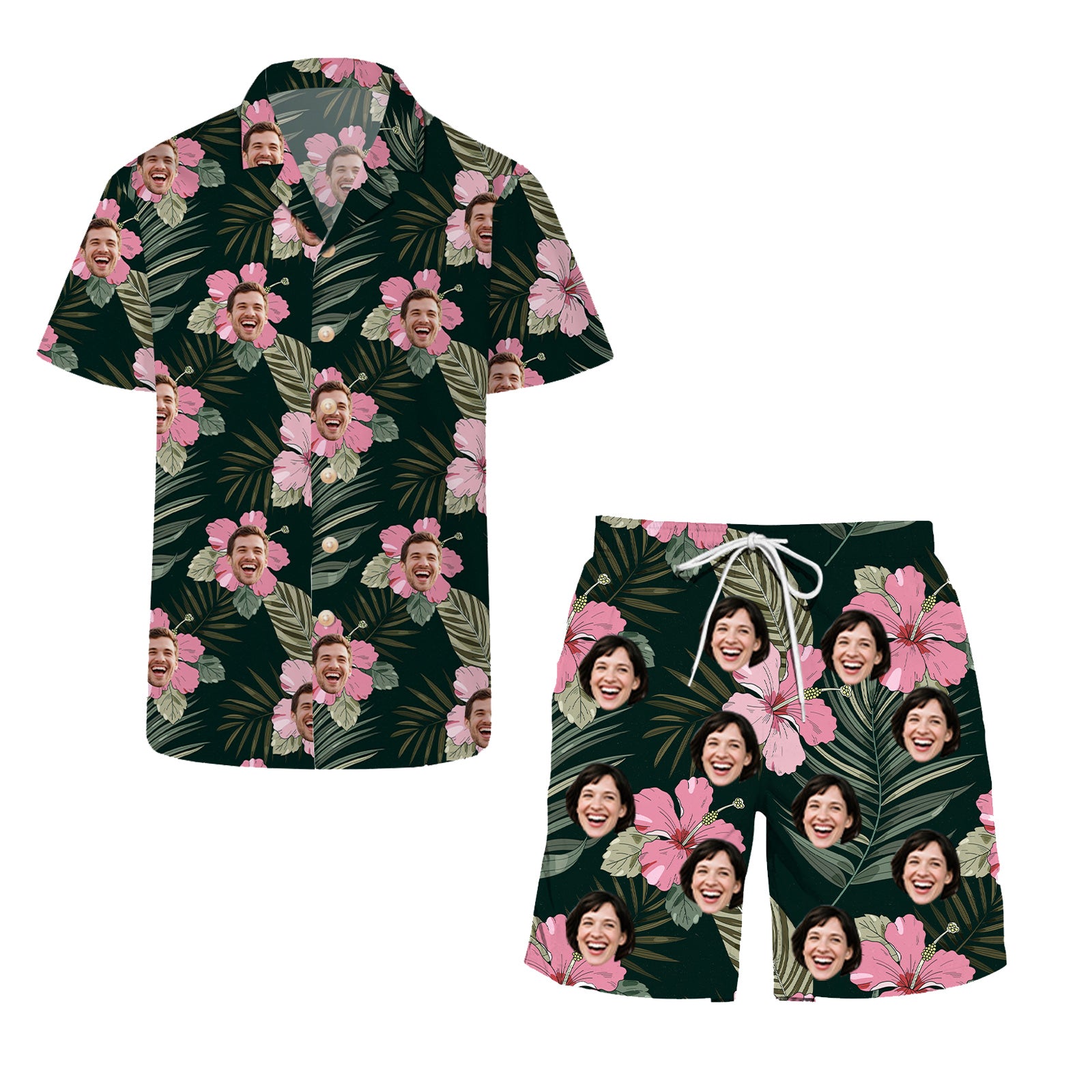 (Tax Included) Custom Face Palm Frond & Orchid Print Shirt & Beach Shorts For Beach Clubs