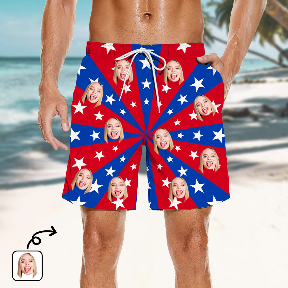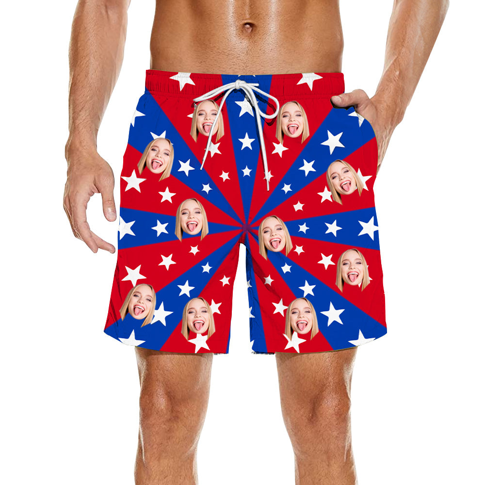 (Tax Included) Custom Face Patriotic Star-Spangled Beach Shorts For July 4th Celebrations