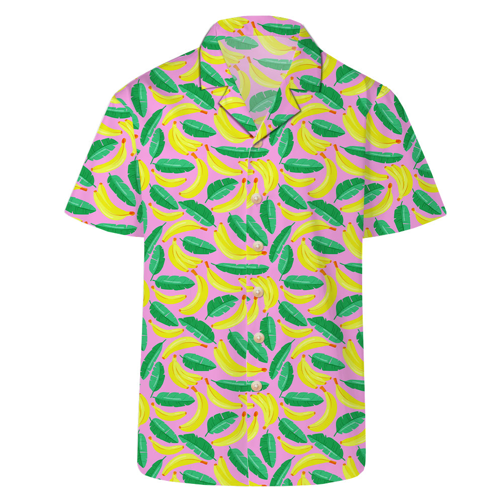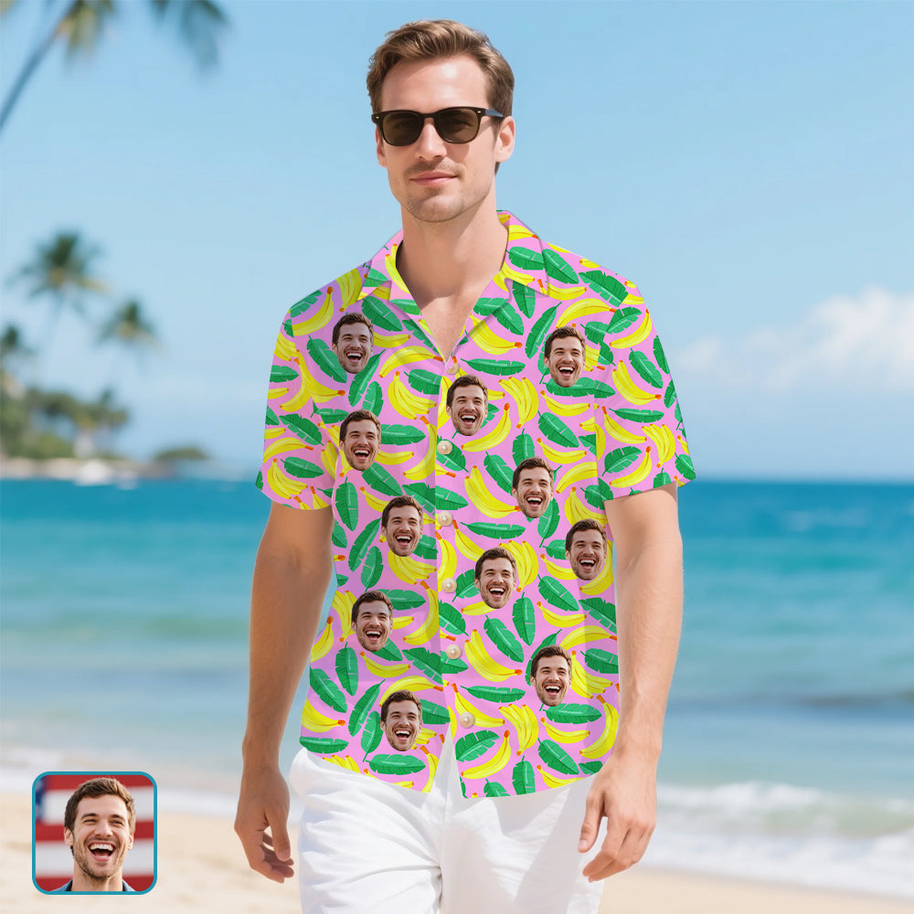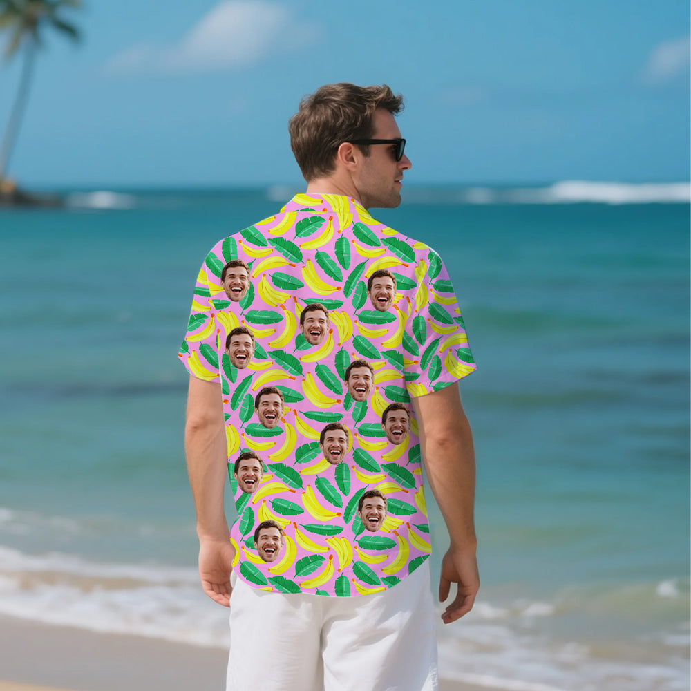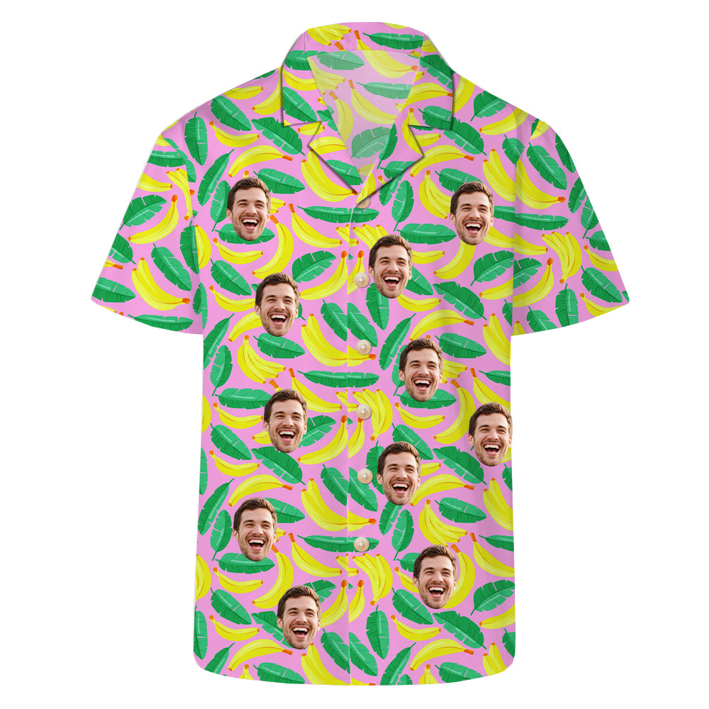(Tax Included) Custom Face Pink Shirt Featuring Palm Leaves & Bananas For Beach Party Fun