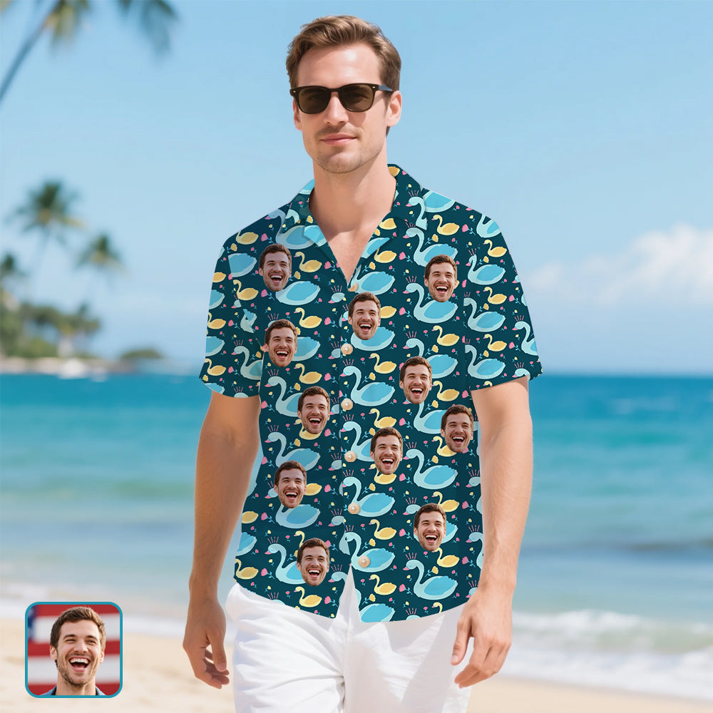 (Tax Included) Custom Face Shirt Swan Print For Festive Summer Parties