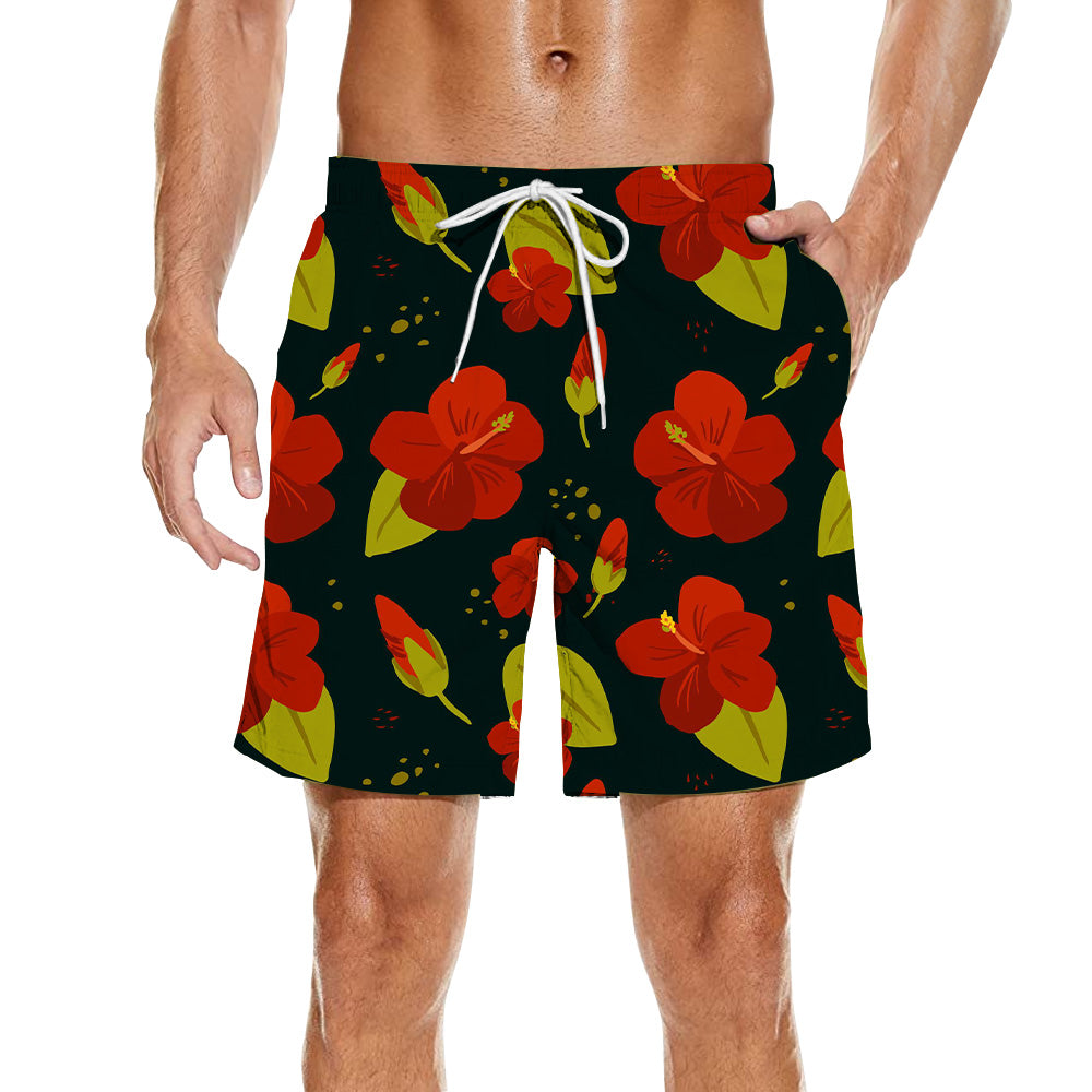 (Tax Included) Custom Face Tropical Flowers Pattern Beach Shorts For Rainforest Resorts